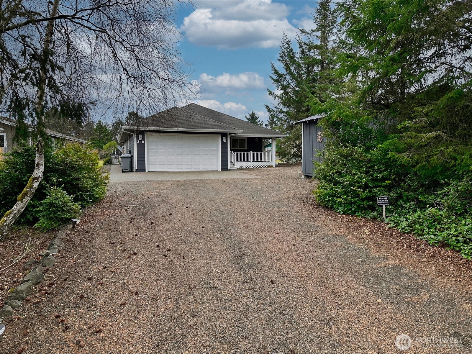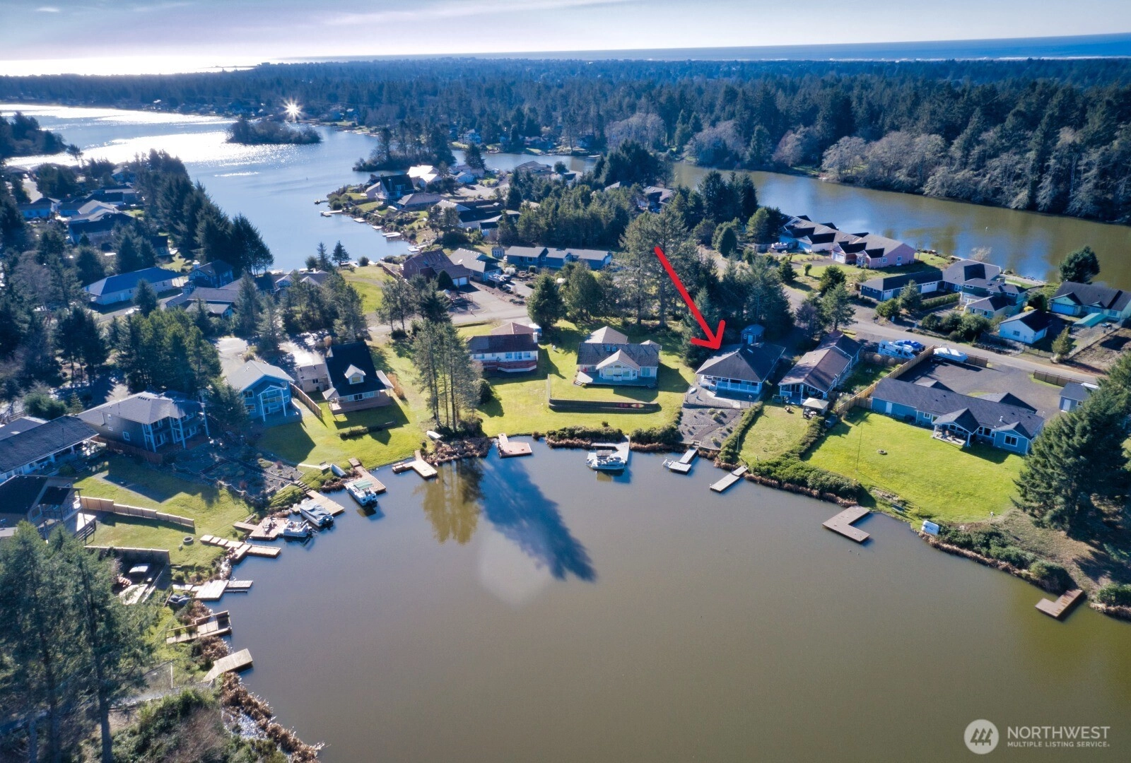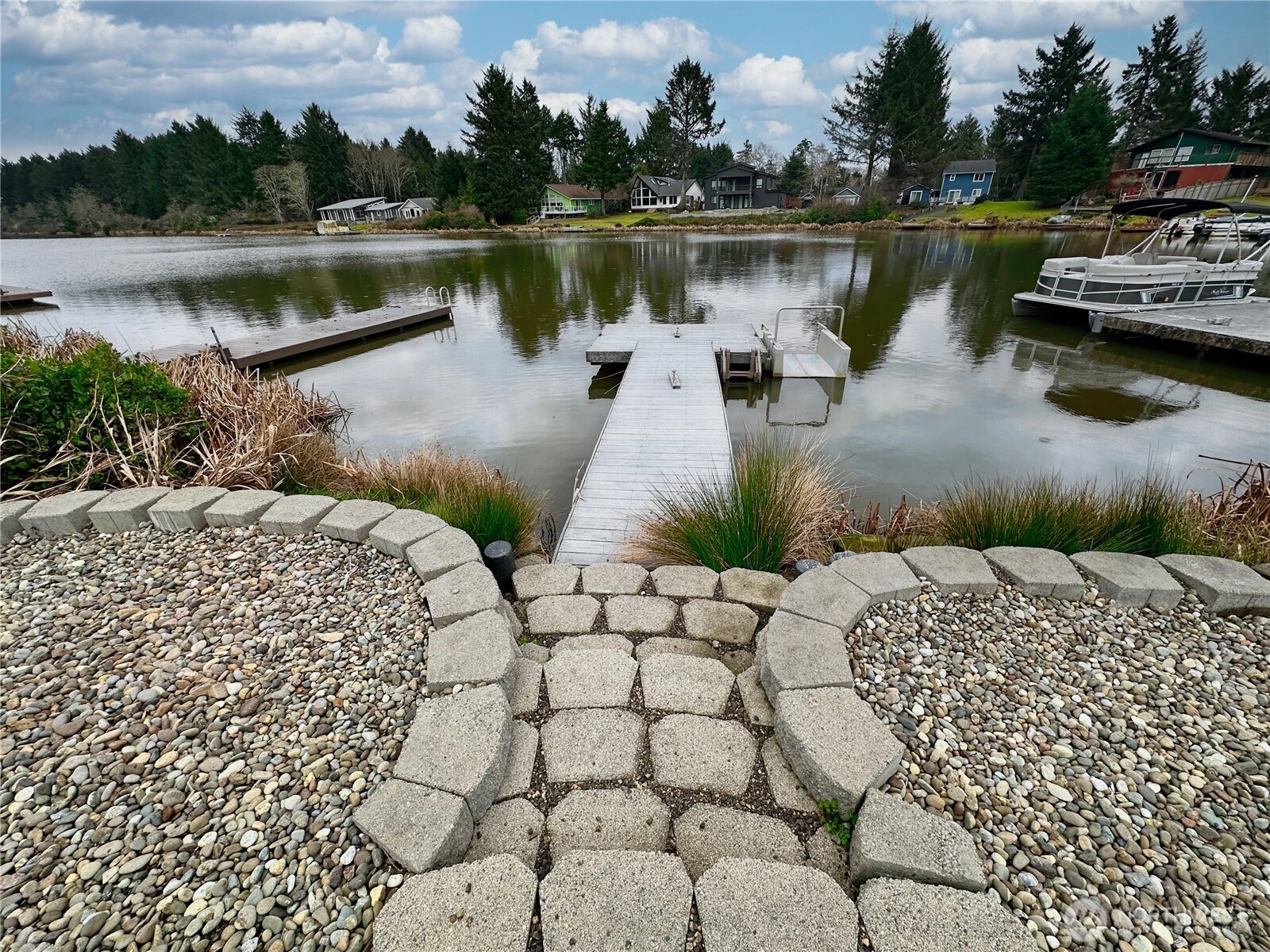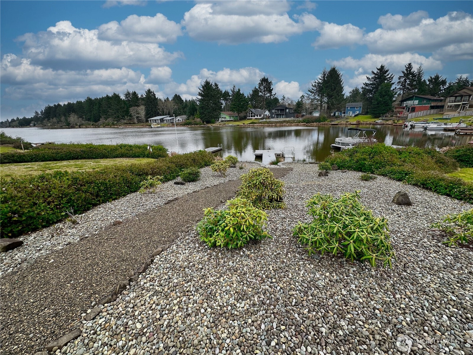 WOW! Well-Maintained Gorgeous Lake Front Home! This amazing light and bright 1,482 sq ft home is beach living at its best! Featuring astounding Lake Views ~ 144 sq ft covered front porch with beautiful wood ceiling ~ Beautiful Bamboo flooring throughout ~ 2 Bedroom, 1 3/4 Bath ~ Primary suite with 3/4 Bath, walk-in-closet slider leading to back covered deck with Lake Views! ~ Extra-large 2nd bedroom with built in closet organizer. So much storage! Kitchen with Lake Views! New Granite Countertops, SS appliances, Walk-In Pantry ~ Living room with propane fireplace for those chilly beach days and slider that leads out to the Large 304 sq ft covered back deck with gorgeous wood ceiling overlooking the Lake! Perfect for entertaining! ~ Attached 2-car garage with lots of storage ~ Full house water filtration system ~ Beautifully landscaped back yard that leads down to your own personal dock on the lake ~ Yak Port (Kayak launch) Kayak included ~ partially fenced ~ Large 10x20 Shed for all those beach and Lake toys ~ Located close to Chinook Park, Community Club and Oyhut Bay with all its amenities! Great Location! Quiet Established Neighborhood! Don't Wait! Come own a piece of Ocean Shores Today!