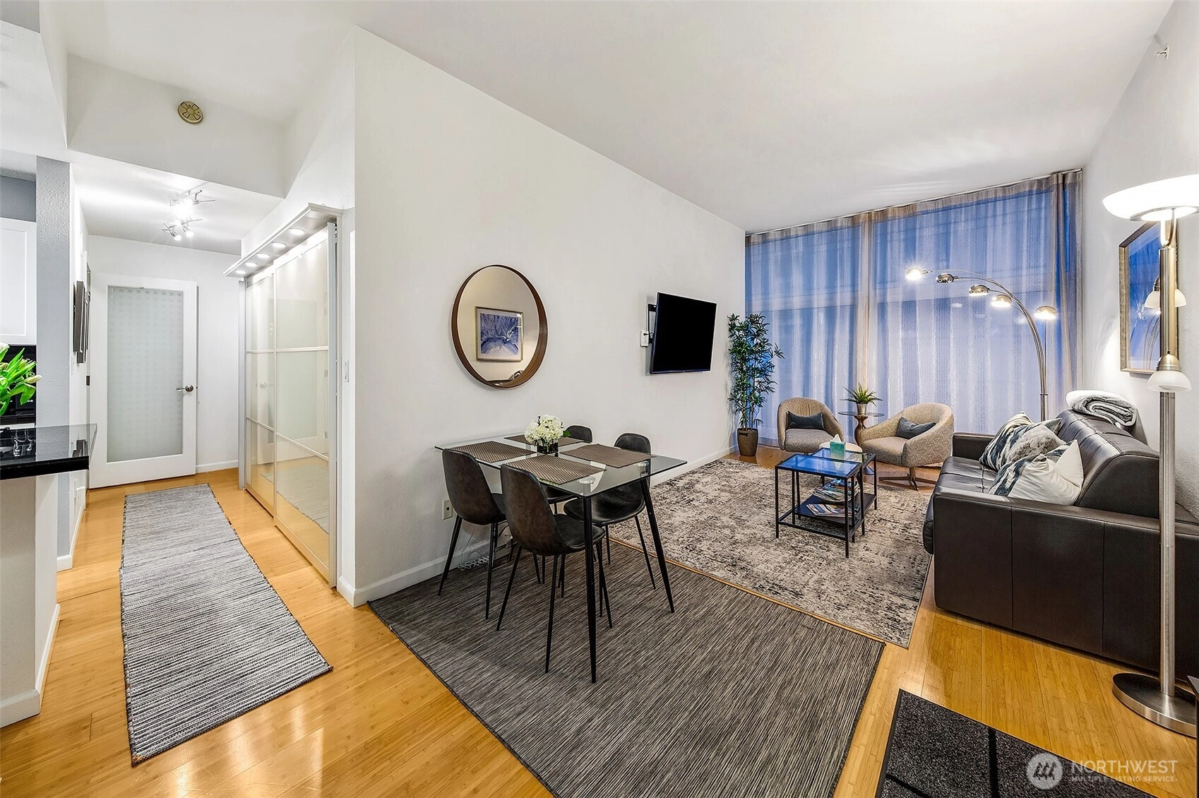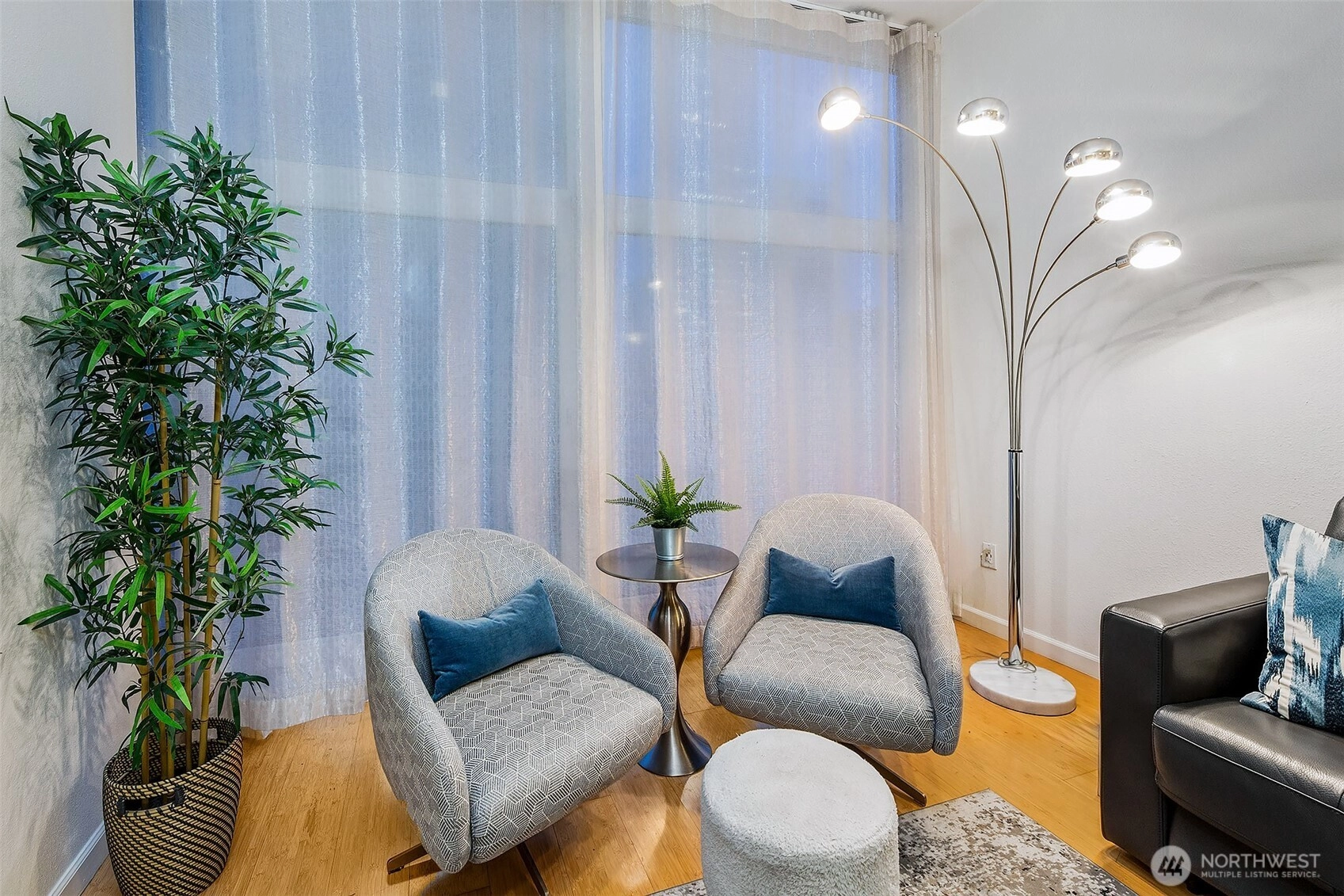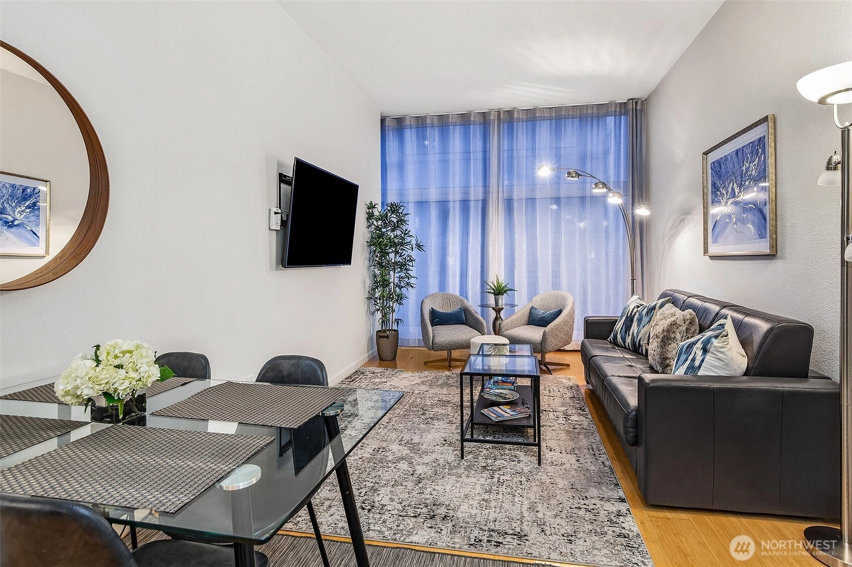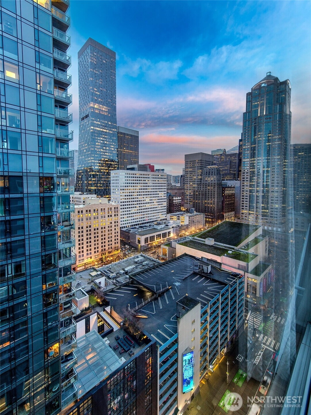 Penthouse Perfect Vacation Getaway with Spectacular City Views at Newmark Tower. Welcome to your dream home/vacation retreat in the heart of downtown Seattle. 25th floor jewel box, Best location, 100 walk & transit score, just a block from Pike Place Market, SAM, Symphony & Light Rail. Spacious open floor plan ~ near 800 sqft, 11 ft floor to ceiling windows, modern remodel, new appliances, paint & lighting. Marble en-suite, full-sized laundry, abundant storage and huge closet, massive bedroom with glorious city views from floor to ceiling windows, hardwood throughout. Ideal as a primary, second home, weekend escape, or for hosting visitors for 2026 World Cup! 24/7 concierge, Indoor pool, hot tub, sauna, owners lounge, gym, biz ctr. 1 parking, 1 storage. No Rental Cap, AirBnB friendly -5* host rated.