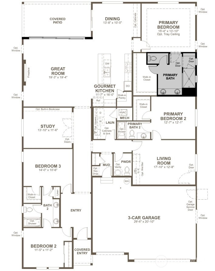 Choose your Finishes! The convenience of single-story living meets stunning design in this Darius floorplan. Expansive floor plan offers four bedrooms, including two primary suites. The main suite boasts a walk-in closet and a deluxe private bath, while the secondary suite features an attached living area with kitchenette and full bath. Open layout showcasing great room, breakfast nook and impressive gourmet kitchen with pantry and center island. Don't miss the study, 3-car garage, covered back deck - all on a spacious lot! If you're working with a licensed real estate broker, they must register on your first visit in accordance with site registration policy #4667.