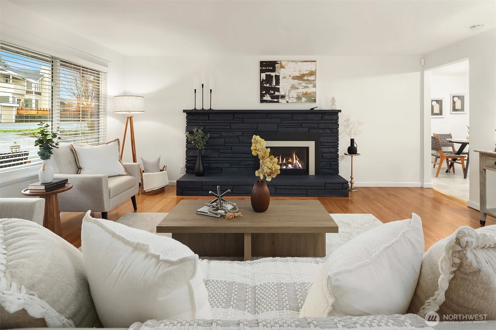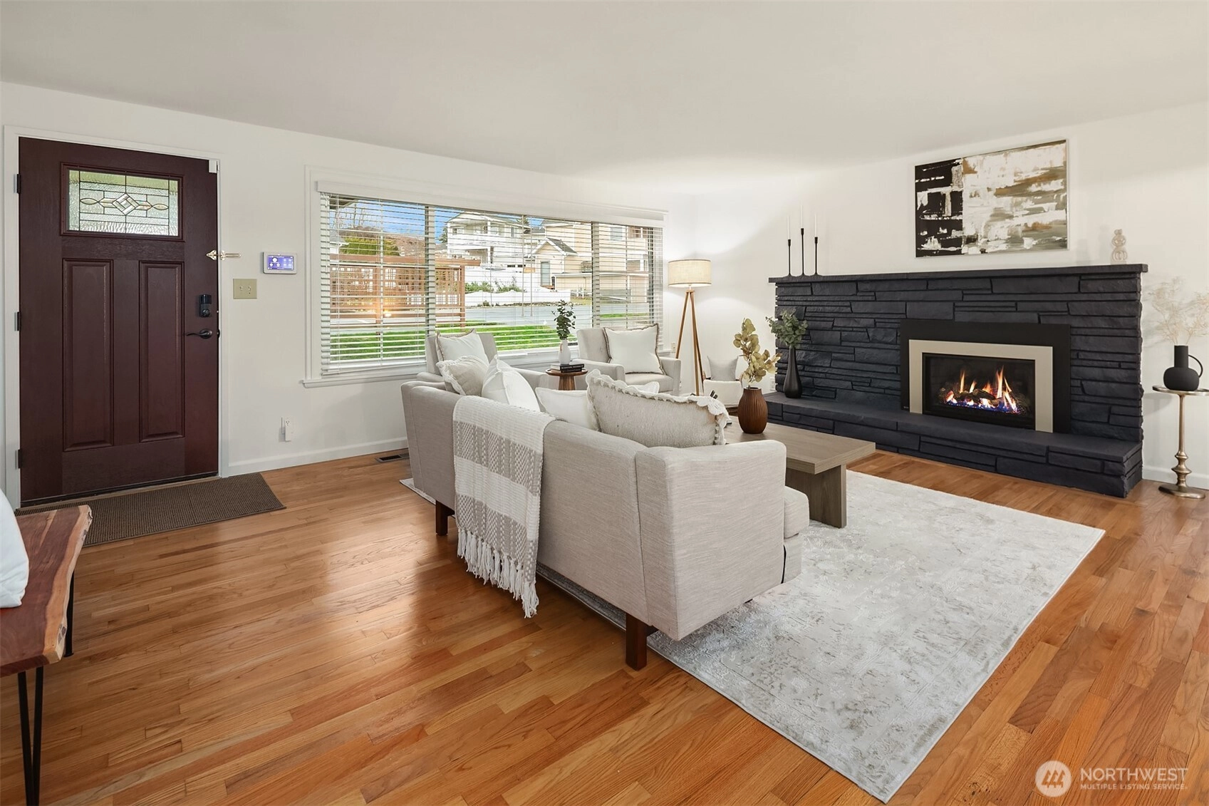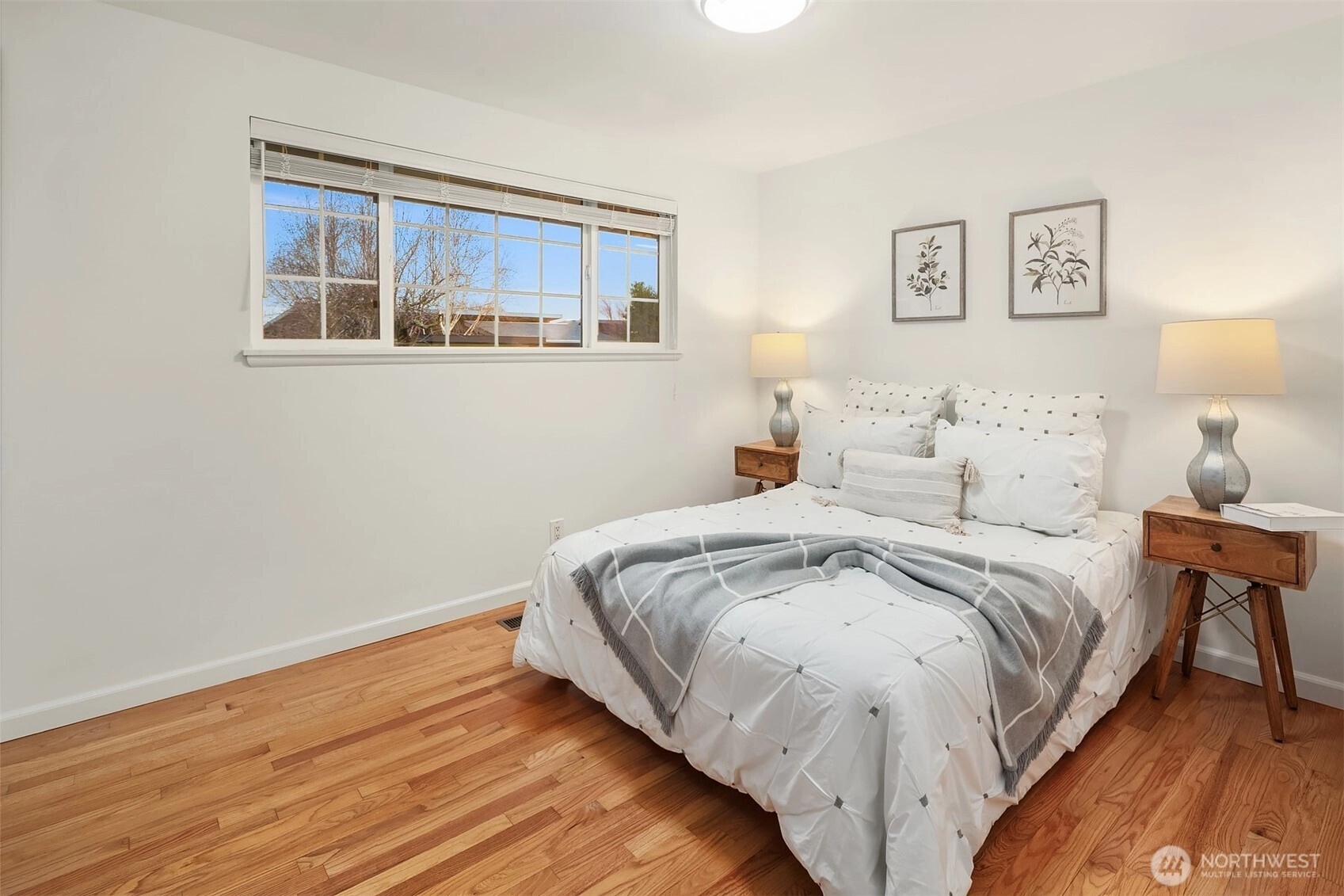 Walkable Edmonds Bowl 3-bed turnkey rambler, just blocks to the waterfront, ECA & Civic Playfield, enjoy the best of downtown Edmonds living. Hardwood flooring throughout. Light-filled living room anchored by gas fireplace w/ mid-century brick mantel. Kitchen features wood cabinetry, all stainless-steel appliances & gas range. Dining room offers built-in buffet & ample pantry storage. Seamless flow to the spacious, fully fenced backyard w/ raised garden bed & expansive covered deck w/ built-in benches extending everyday living & entertaining outside. Cozy family room w/ wood-burning fireplace. Primary bed w/ double closets. Updated bath has dual sinks & white shaker-style vanity. Laundry room features shelving & cabinetry for add’l storage. Meticulously maintained. Updates include new gutters, 200-amp electrical panel, & gas furnace. Walk to shops, restaurants, farmers market, ferry & festivals.