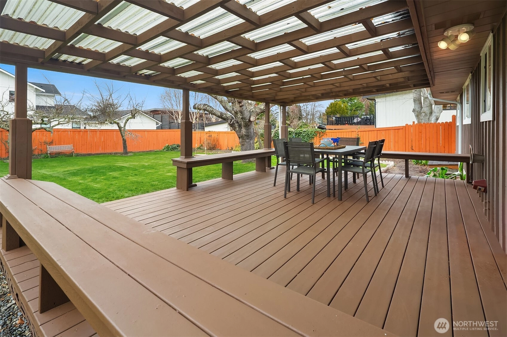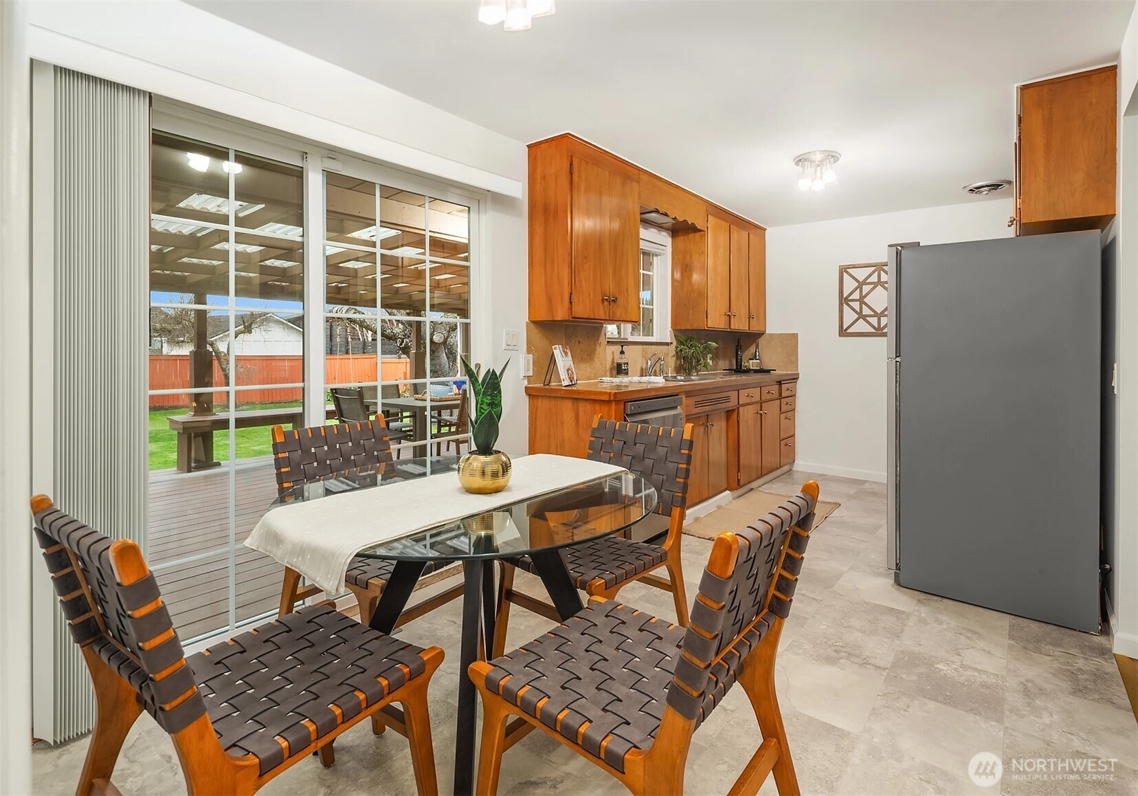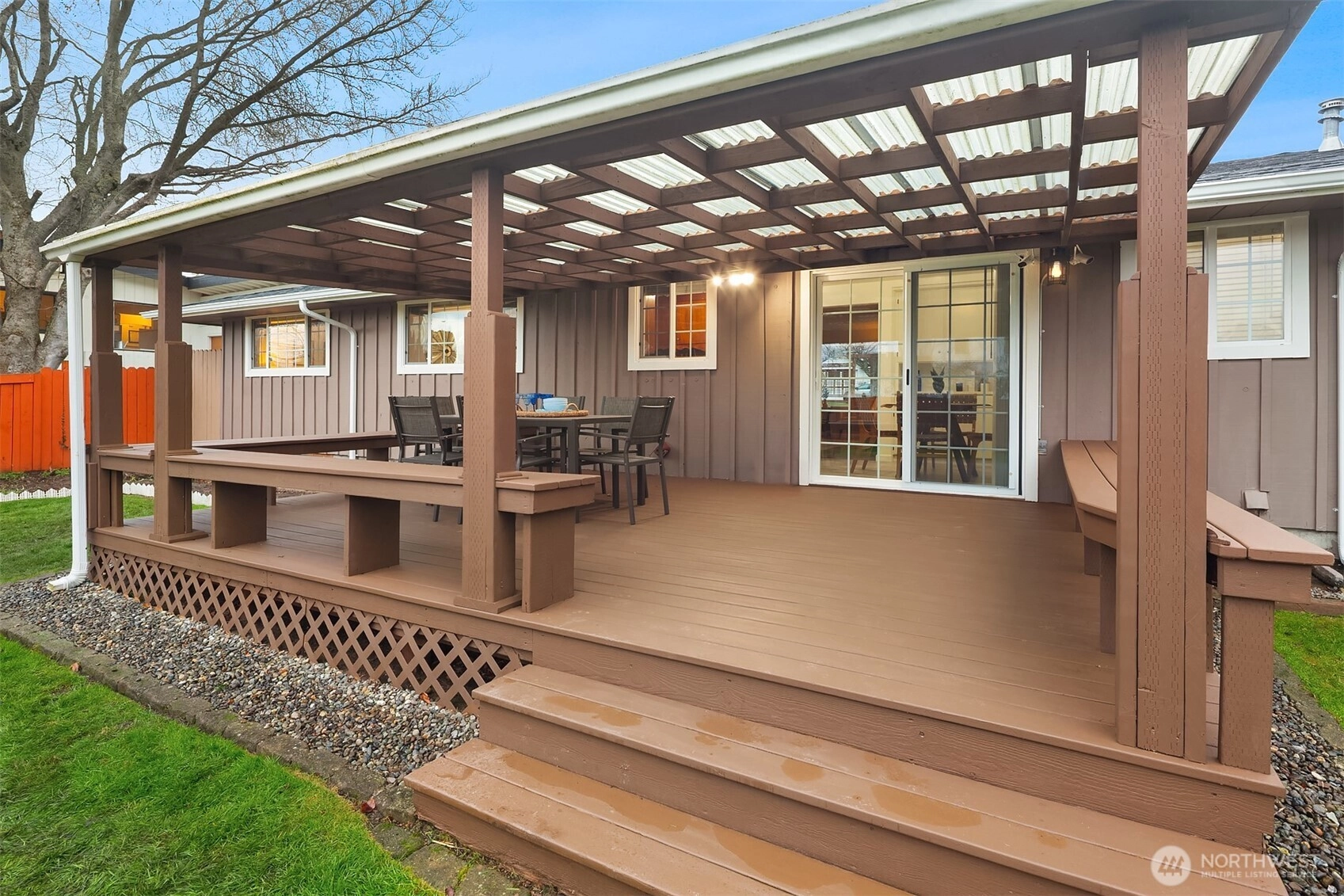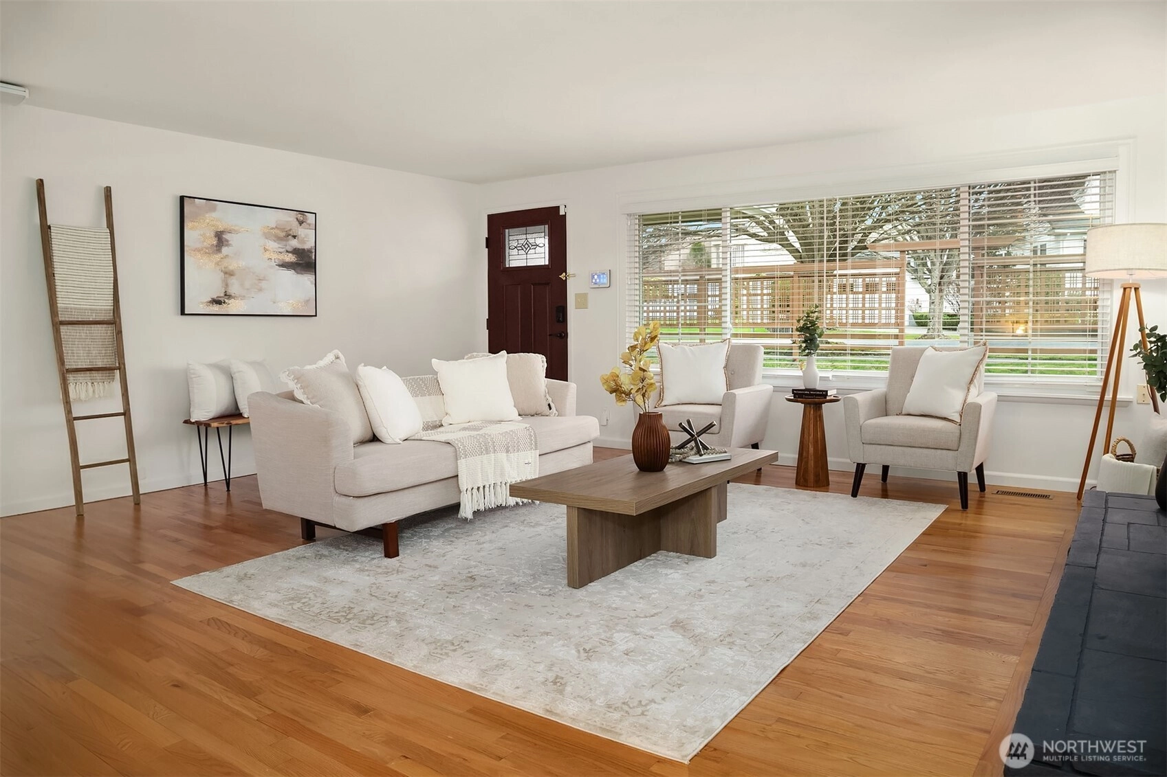 Walkable Edmonds Bowl 3-bed turnkey rambler, just blocks to the waterfront, ECA & Civic Playfield, enjoy the best of downtown Edmonds living. Hardwood flooring throughout. Light-filled living room anchored by gas fireplace w/ mid-century brick mantel. Kitchen features wood cabinetry, all stainless-steel appliances & gas range. Dining room offers built-in buffet & ample pantry storage. Seamless flow to the spacious, fully fenced backyard w/ raised garden bed & expansive covered deck w/ built-in benches extending everyday living & entertaining outside. Cozy family room w/ wood-burning fireplace. Primary bed w/ double closets. Updated bath has dual sinks & white shaker-style vanity. Laundry room features shelving & cabinetry for add’l storage. Meticulously maintained. Updates include new gutters, 200-amp electrical panel, & gas furnace. Walk to shops, restaurants, farmers market, ferry & festivals.