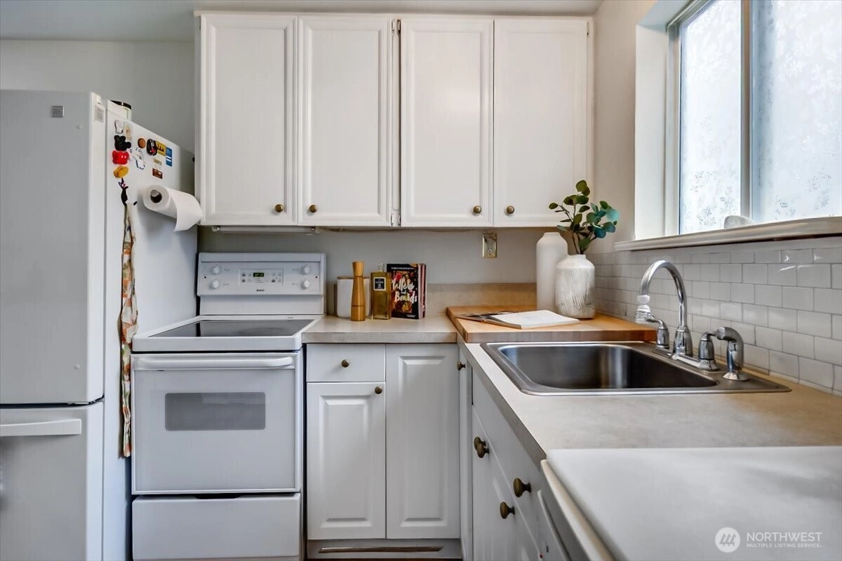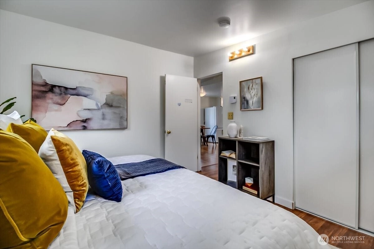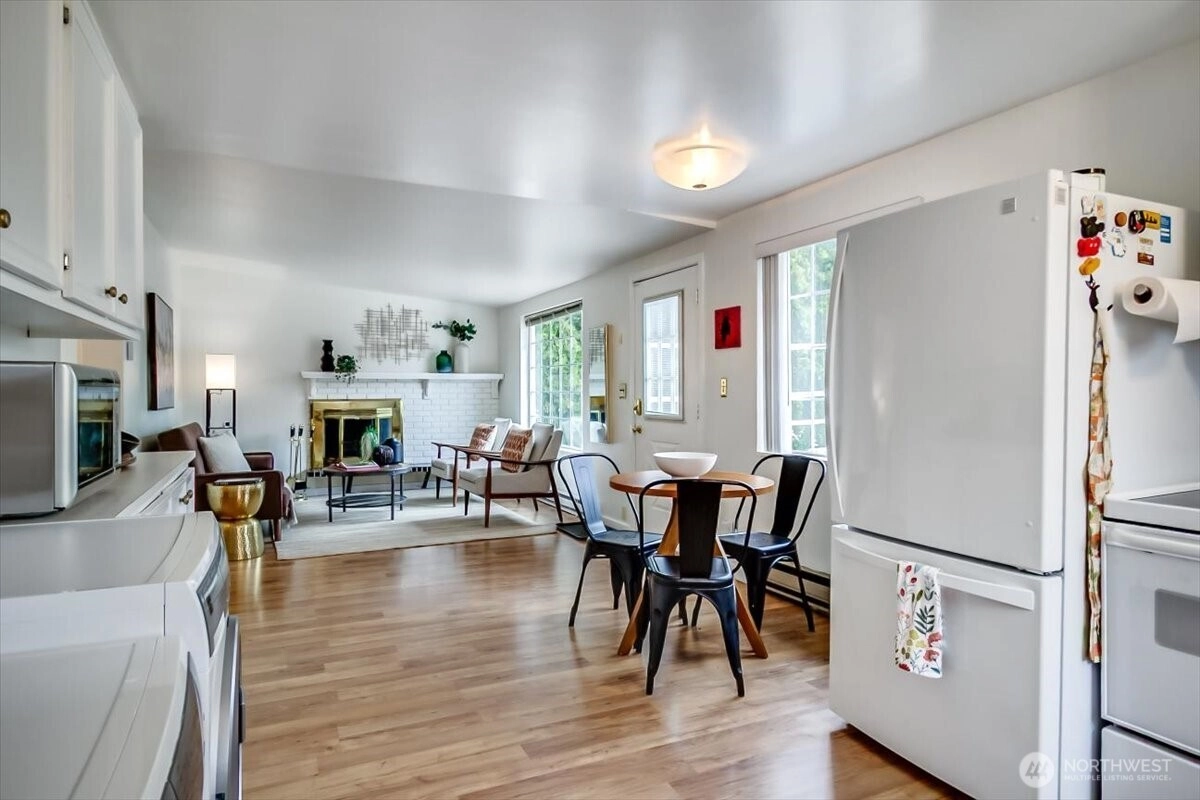 Nestled on a quiet, tree-lined street in Haller Lake, this inviting 2-bedroom, 1-bath home blends classic charm with smart updates. The cozy living room features a wood-burning fireplace and durable laminate flooring, creating a warm and welcoming feel. The kitchen offers modern appliances and thoughtful functionality, while double-pane windows and a newer electrical panel (2023) provide comfort and peace of mind. Step outside to a recently fenced backyard with space to garden or entertain. Enjoy your morning coffee on the east-facing front porch, perfectly positioned to capture beautiful morning sunshine. Conveniently located near light rail, parks, shopping, and local dining, this home offers easy access to all that North Seattle has to offer. Ideal for first-time buyers or anyone seeking a move-in-ready home in a well-connected neighborhood.