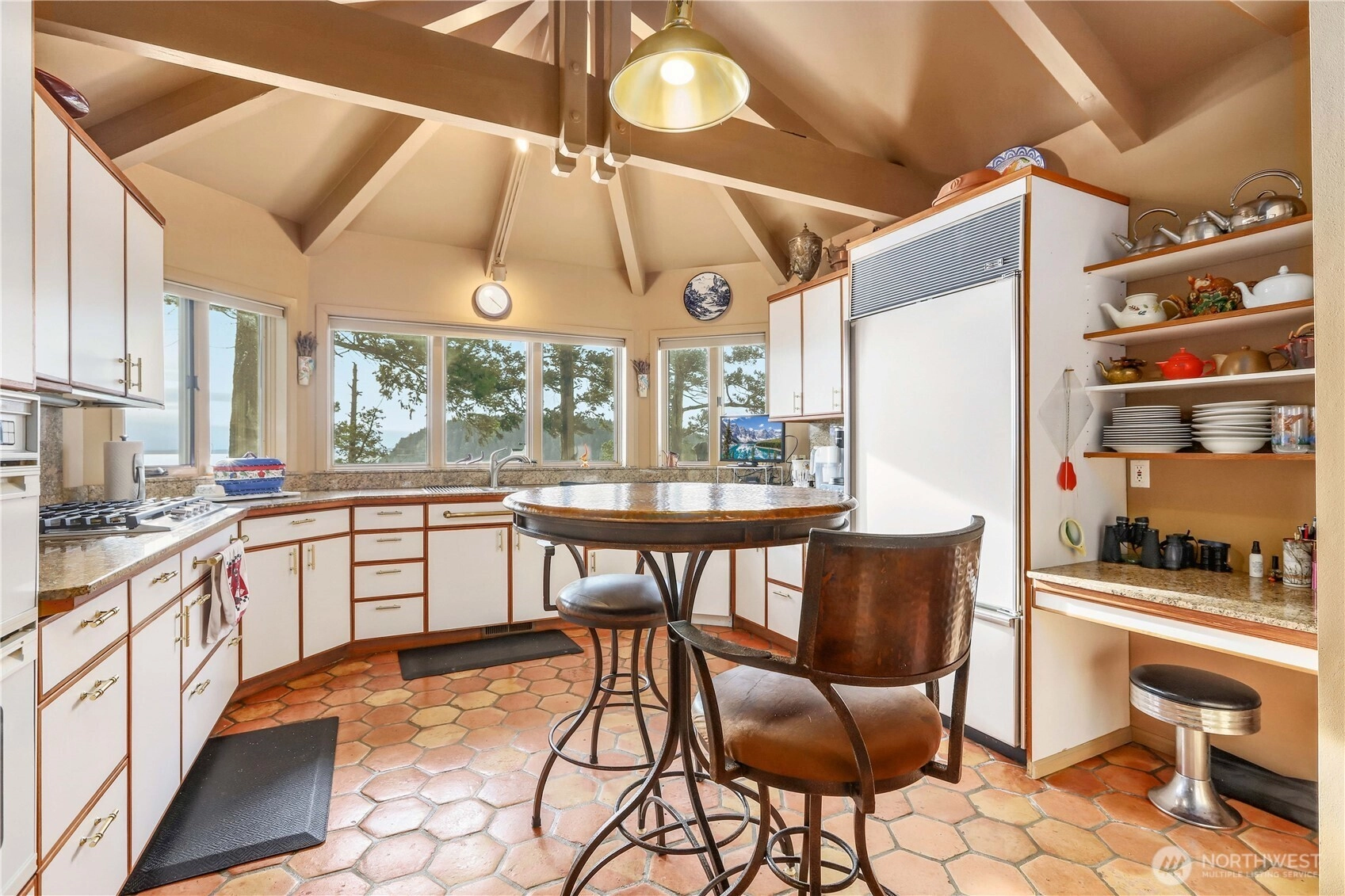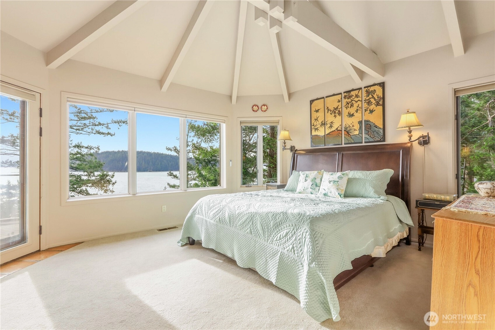 Experience commanding, unobstructed views from an exceptional NW custom home set on a rare double lot surrounded by towering Douglas firs and natural rock landscaping. Vaulted ceilings with striking exposed beams and walls of windows flood the open floor plan with light while framing ever-changing scenery of boat traffic along the Swinomish Channel, soaring eagles, blue herons, trumpeter swans, snow geese, and panoramic vistas of Whidbey, Goat and Ika Islands, the North Cascades and Mt. Rainier. Main level living features a spacious great room with wood-burning fireplace, den and office, formal dining with slider to a EverGrain composite deck for low-maintenance outdoor living with glass railing, and a well-appointed kitchen with granite countertops, double ovens and abundant storage. The foyer welcomes with warm Spanish tile, setting the tone for the home’s timeless design. The primary suite is a retreat with deck access, stunning views, walk-in closet, and a beautifully updated bath designed for accessibility with heated floors, soaking tub and walk-in shower. Upstairs offers a private guest suite with en-suite bath and balcony. Bonus hobby room, extensive storage, motorized blinds, Trane central heating, generator wiring, and a garage with workspace, half bath and utility sink add everyday function. Located in Shelter Bay with pools, golf, tennis, marina, beaches and clubhouse amenities, this home blends comfort, craftsmanship and a truly unforgettable setting.