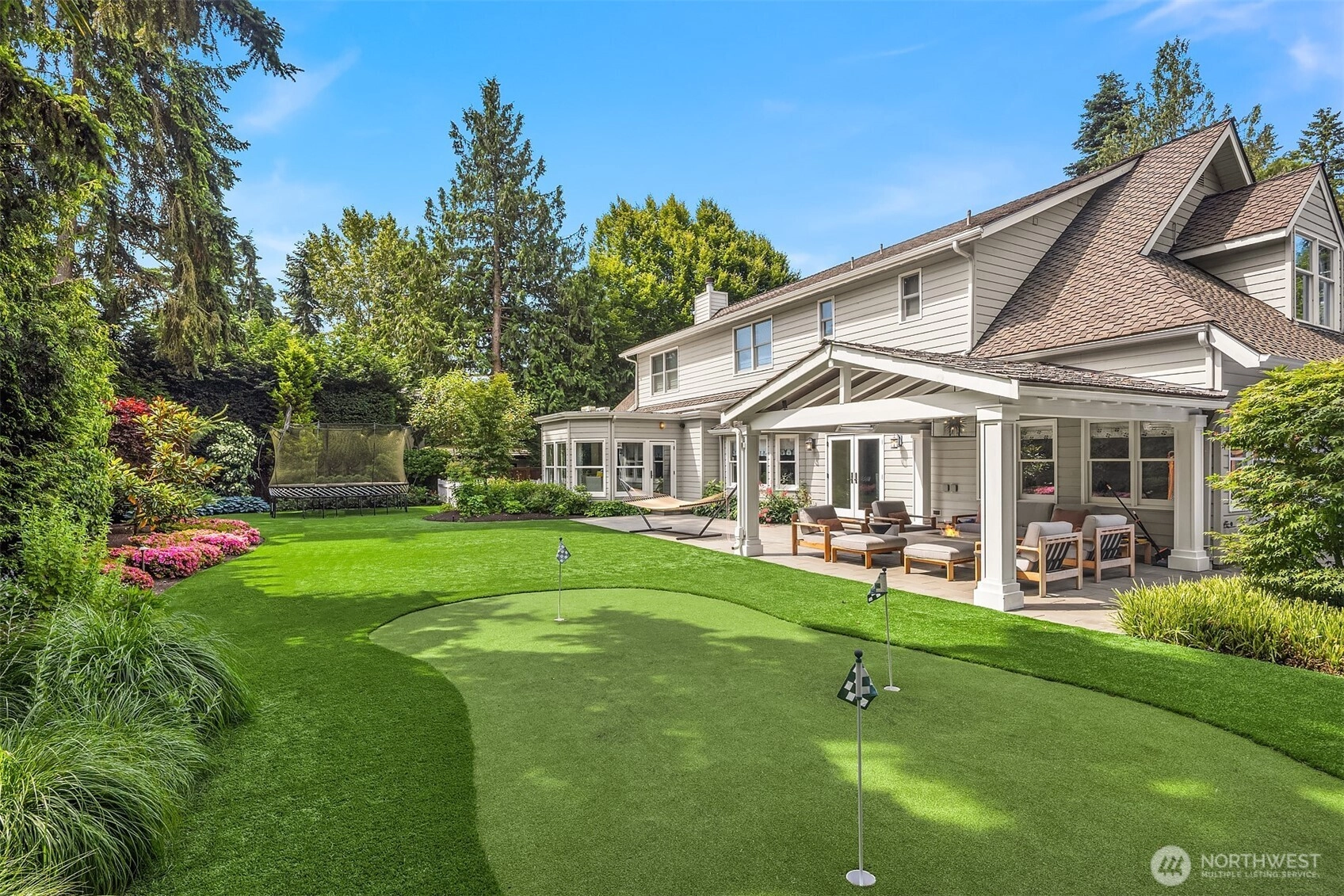 An impeccable, storybook home on Medina's most cherished street awaits you. This idyllic home is "Father of The Bride" perfect, complete with a white picket fence, specimen gardens, sport court, putting green and covered patio! A gracious, wide entry welcomes you into beautifully refreshed interiors that honor the home’s traditional style while embracing modern luxury. The main level boasts living and dining rooms made for gathering and hosting, a stunning chef’s kitchen with breakfast nook, and a spacious great room. Just off the great room is a wonderful flex room currently used as an at home gym but perfect for a main floor bedroom too. The perfect space for our PNW lifestyle is the large covered outdoor patio makes it perfect for unwinding with friend or your favorite book. Upstairs, the primary suite offers two deluxe walk-in closets and a beautiful, couture bath adorned with Anne Sacks tile and designer lighting. This luxury at home will leave you refreshed every day. Additional highlights include a media /play room for game days, a versatile backyard for both play and relaxation, and thoughtful design throughout. Perfectly situated within walking distance to Overlake Golf & Country Club and neighborhood favorites like Kitchen + Market, this picture-perfect Medina retreat combines classic charm with everyday luxury—minutes from top-rated schools, Bellevue, and downtown Seattle.