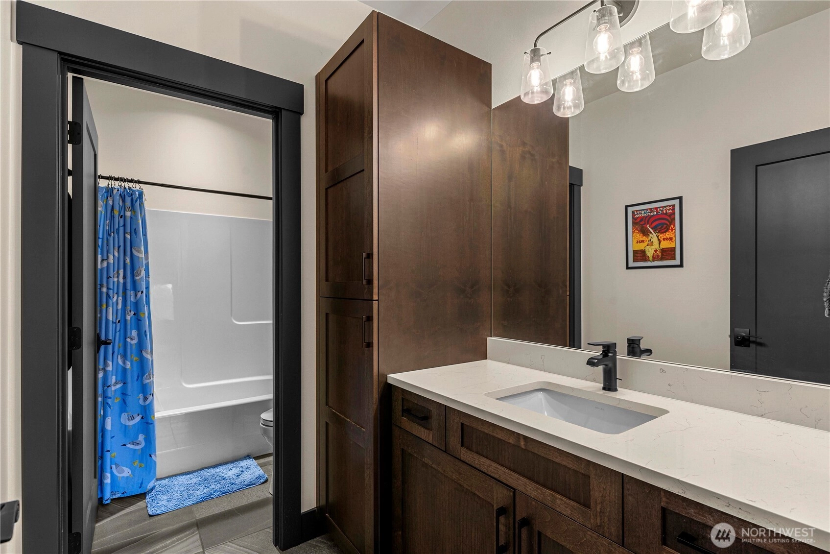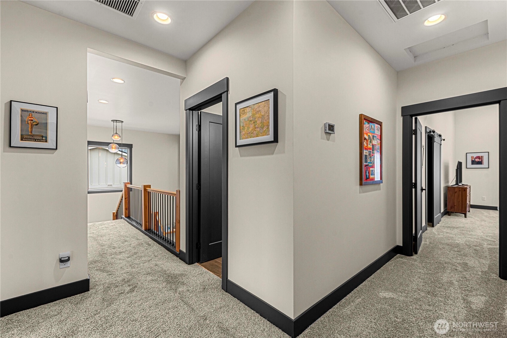 Contemporary modern home by Pinnacle Custom Homebuilders, ideally located in the heart of Leavenworth. Soaring ceilings & abundant natural light define the open concept design, anchored by a striking great room fireplace with a tile surround and shiplap extending to the ceiling. The spacious kitchen is thoughtfully designed for both function and style, featuring an oversized island, custom cabinetry, stainless steel appliances, al large walk-in pantry & a gas KitchenAid range. The kitchen flows seamlessly to the formal dining area, creating ideal space for entertaining & everyday living. Upstairs, plush wall-to-wall carpet, custom railings & a generous media room provide flexible space for a second living area, exercise room or creative use. The primary suite offers heated bathroom floors, an oversized walk-in shower and a walk-in closet. Two additional bedrooms are also located upstairs, along with a large laundry room complete with a folding table & hanging rod. The main level includes a versatile room perfect for a den, home office or bedroom, plus a convenient half bath. Step outside to a private back patio ideal for outdoor dining or relaxing. The low-maintenance yard features automatic sprinklers for easy care. A large two car garage offers excellent storage and includes an EV charging station. Close to downtown Leavenworth, schools & recreational trails, this thoughtfully designed home blend modern comfort, custom craftsmanship and an exceptional location.