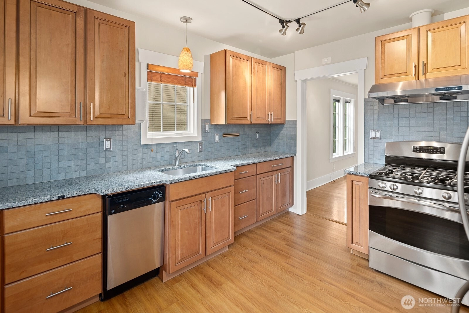 Sited in a great Roosevelt neighborhood ! This charming set up off the street, 1926 Bungalow is within walking distance to many amenities which includes easy access to Interstate 5 . As one enters , you'll be immediately taken by the light filled rooms and the charm that hardwood floors a living room fireplace and leaded glass French doors exudes. The kitchen "updated" with nook has access to a lovely rear yard a spacious deck and carport. There is a stainless appliance package , tile back splash and solid counters tops. The basement with access to the rear yard is unfinished and the electrical panel has been updated. Don't miss the unfinished attic with stairs.