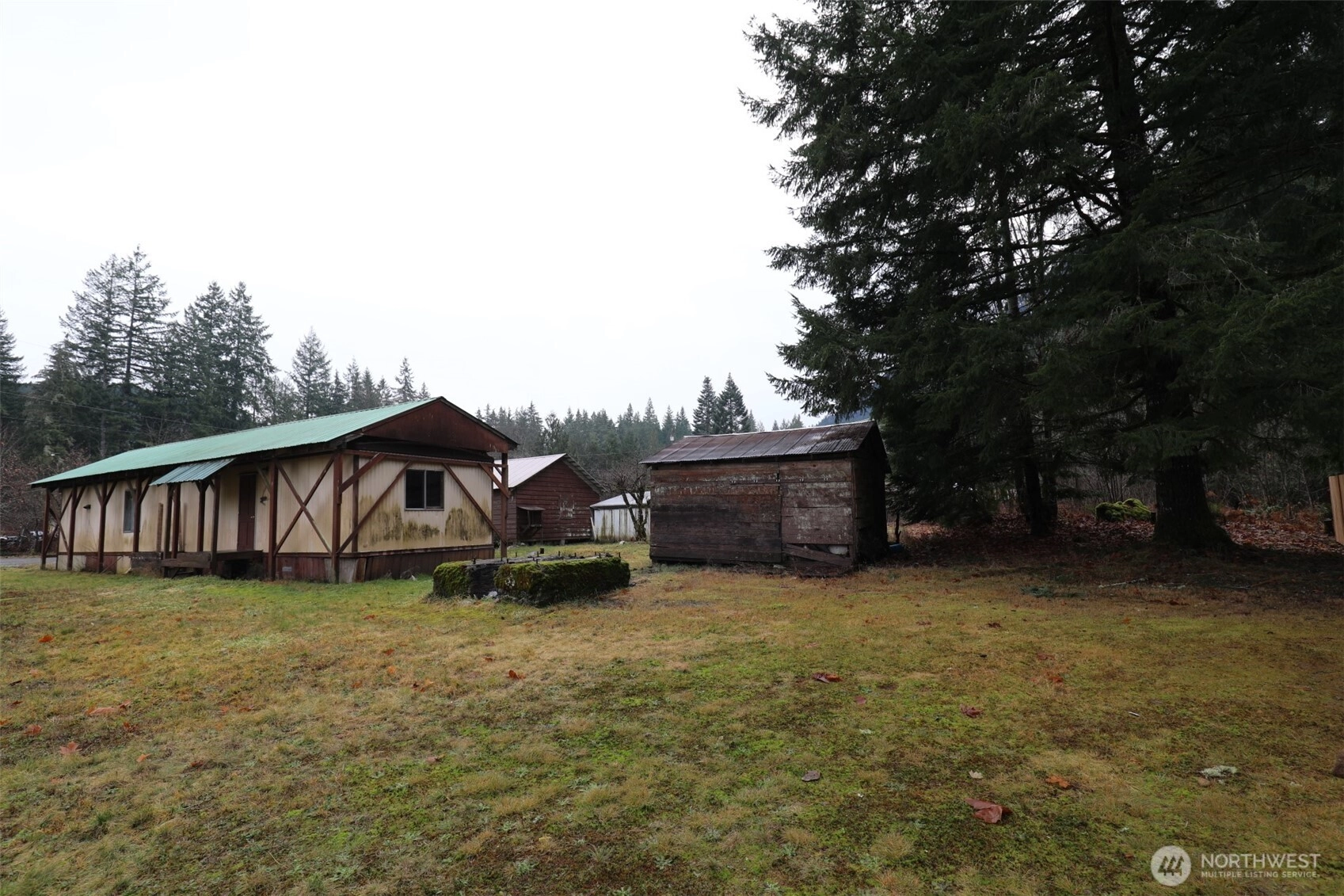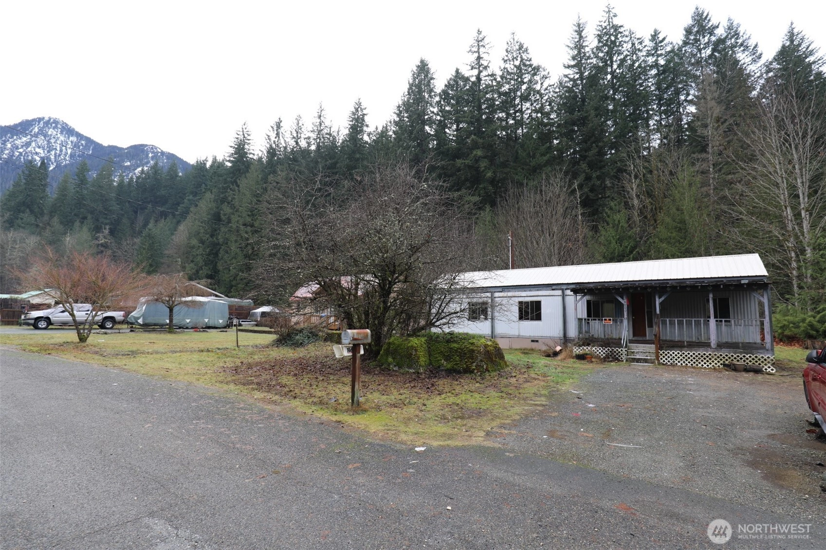 This property is a fantastic investment opportunity! With a two-bedroom, one-bath cottage-style house and two singlewide rental units, it offers multiple income streams while providing a charming living environment. The main home features french doors that enter into a charming, vaulted ceiling entry. The spacious, flat acre of land is ideal for gardening and outdoor living and has a stunning evergreen tree and mountain view backdrop, creating a peaceful setting on the quiet dead-end street. Having a road that runs through the property provides flexibility for parking and access to different areas of the lot, enhancing the property's utility. Overall, this property has significant potential for both immediate rental income and long-term appreciation.