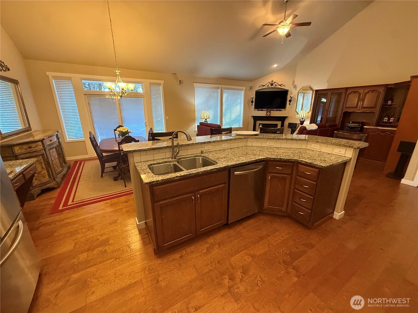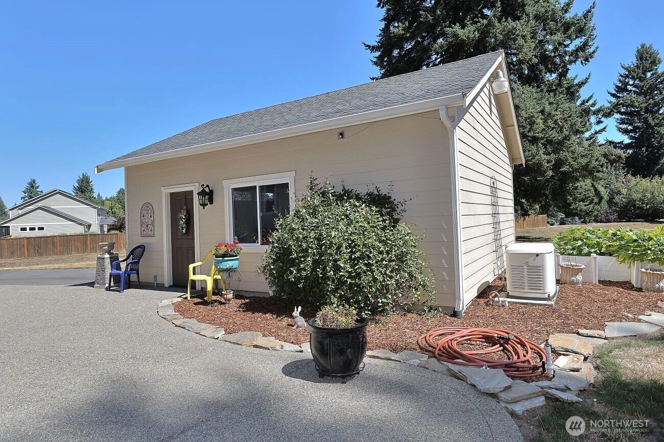 Peaceful Oasis tucked at end of a cul-de-sac, this exquisite 3,354 SF custom home rests on 2.5 park-like acres, offering a rare blend of privacy, elegance, and everyday comfort. Outdoor entertainment supreme with extensive patio coverage, picturesque drive, heated 2-car detached garage duos as a shop, garden shed, gazebo, manicured landscaping, and charming covered entry create a lasting first impression. Enjoy 2.5 acres of lush grounds ideal for relaxing, gardening, or outdoor gatherings, with space to unwind, explore, add and ADU with no HOA restrictions, and entertain. Whether hosting guests or savoring quiet moments, this home supports a lifestyle of comfort and connection. Perfectly positioned for those seeking seclusion without sacrificing convenience, this exceptional residence offers refined comfort, timeless design, and a peaceful retreat ready to welcome you home. Step inside to a whole house generator, soaring 20+ foot ceilings and sun-filled spaces set the stage for gracious living and effortless entertaining. The main level features a welcoming front parlor, expansive great room, and a luxurious primary retreat with a spa-inspired five-piece bath, jetted soaking tub, and walk-in closet. Two additional bedrooms share a Jack & Jill bath, while a versatile den or office easily adapts as a guest suite or creative space. Thoughtfully designed to balance openness and privacy, large windows frame tranquil natural views throughout, filling the home with warmth and light.