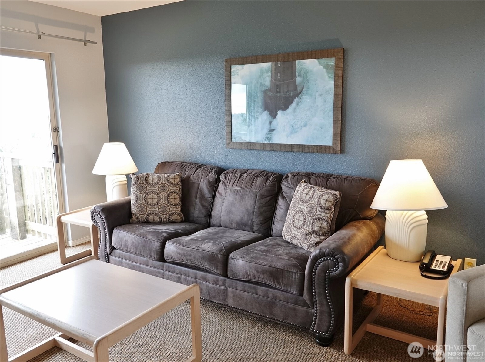 OCEAN VIEW HOTEL CONDO on the 3rd Floor (#319) of The Polynesian Hotel in downtown Ocean Shores. This furnished 672 SQ FT 1Bed/1 Bath boasts a comfortable living room with presto log fireplace, hide-a-bed couch & a slider to the deck overlooking the dunes & ocean. Full kitchen & dining area! Spacious bedroom w/ 2 queens beds and beautiful views. This condo is operated as as a hotel so NO HOA DUES. All Hotel Income is used to pay for the operation costs such as wages, front desk, maintenance, utilities, insurance etc. Owner is able to stay up to 30 nights per year at $20.90/night for a nominal cleaning fee. Small Income to the Owner. This is a pet unit which is an additional $25/per night per pet. The Polynesian offers a heated indoor pool and hot tub, gathering area, game room, lobby, elevator, a backyard lawn area and park area.] An affordable OCEAN FRONT getaway!!