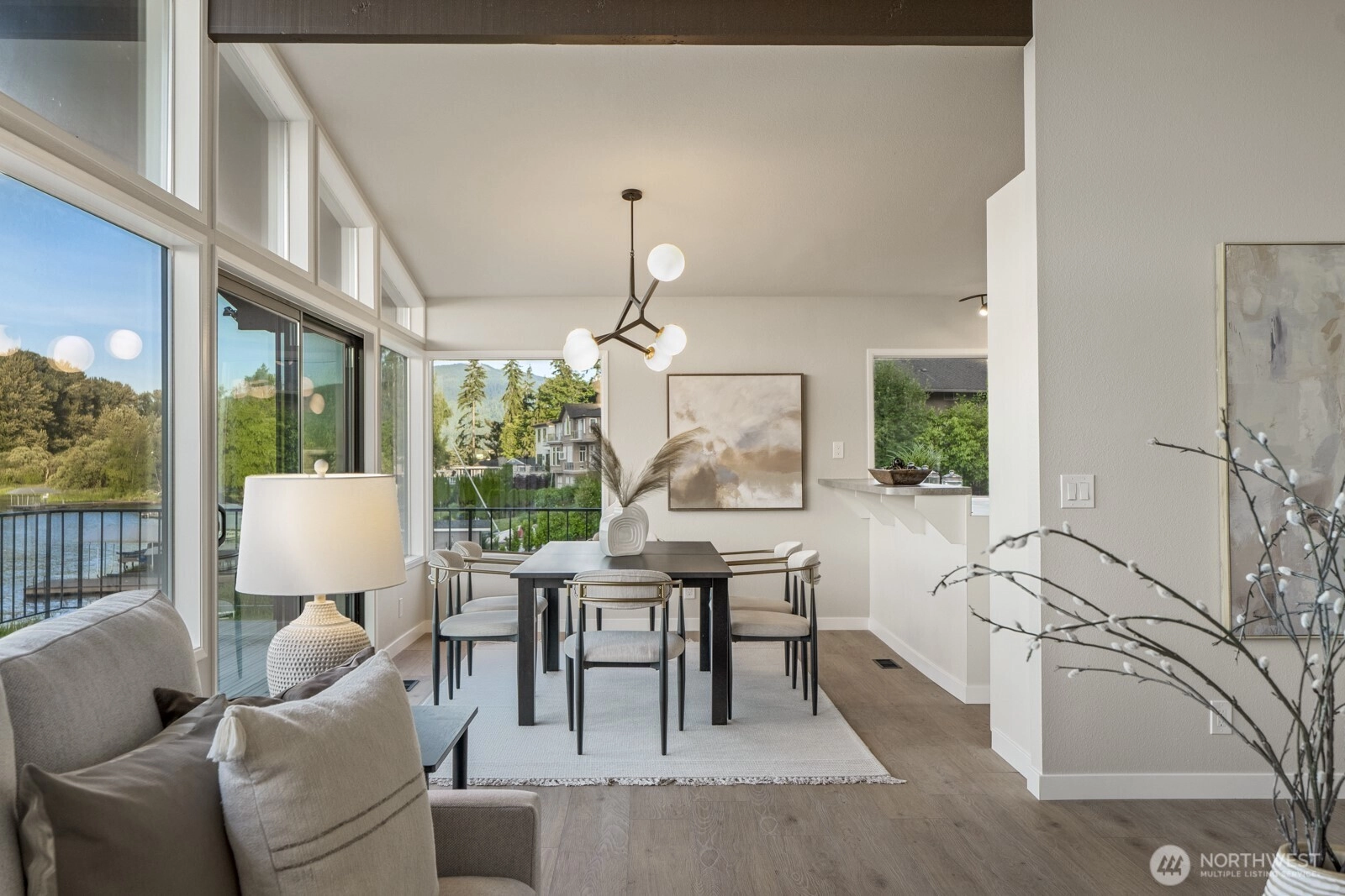Built in 1974 and just renovated with a true mid-century modern aesthetic, this lakefront home with 90 feet of waterfront on a ½ acre offers walls of windows with sweeping water views. Open floor plan with vaulted ceilings, main-level primary suite, and spacious living areas designed to highlight natural light and the lake. Expansive porch and huge level yard lead to a private dock with boat lift, suitable for boats, jet skis, paddleboards, etc. Convenient layout with laundry on main level and plenty of parking. A rare opportunity to own a home that combines timeless design with the ultimate lake lifestyle. Lower level has a separate kitchen, rec room, bedrooms, etc. Property may qualify for sub-division in to 2-3 lots, buyer to verify.