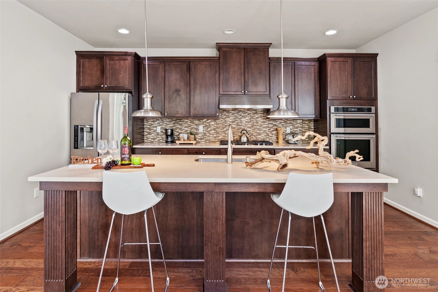 Welcome to this beautifully maintained 3-bedroom, 2.5-bath, 2-story home with a versatile loft and two-car garage in the highly sought-after Timber Creek community by Toll Brothers. Thoughtfully designed for modern living, this home offers an open-concept main level with hardwood floors, a spacious kitchen featuring stainless steel appliances, ample cabinetry, and a large center island, and seamless flow into bright living and dining areas—ideal for everyday living and entertaining. Upstairs, the spacious primary suite includes a sitting area, a 5-piece bath, and a walk-in closet. Two additional bedrooms and a flexible loft provide space for a home office, media room, or play area. The fully fenced yard offers privacy and outdoor enjoyment, making this home truly move-in ready. Enjoy resort-style amenities including a clubhouse, pool, sports court, playground, parks, scenic trails, and 50+ acres of preserved open space. Ideally located in the top-rated Northshore School District, this home delivers comfort, lifestyle, and a prime Bothell location. Don’t miss this opportunity!