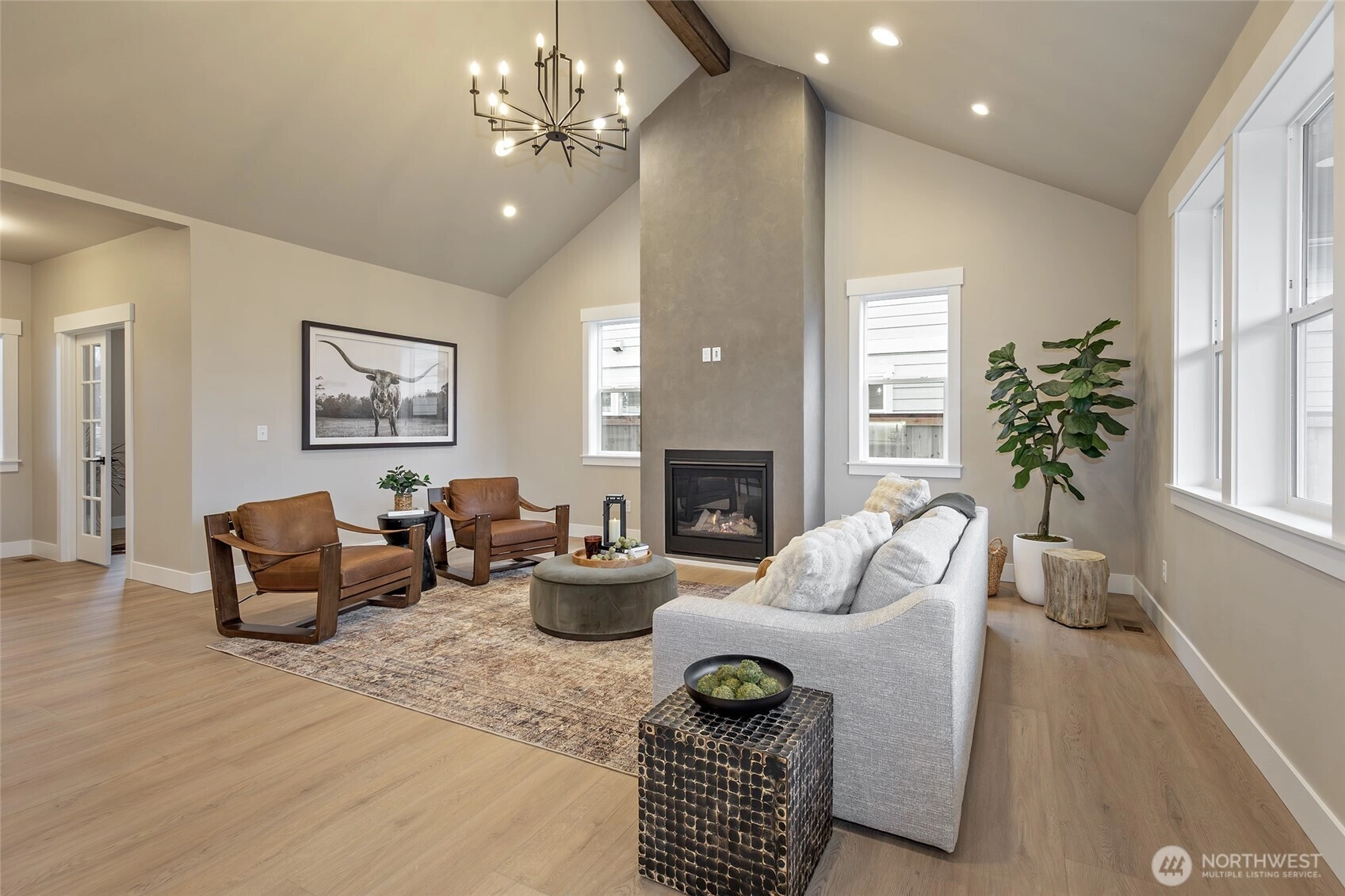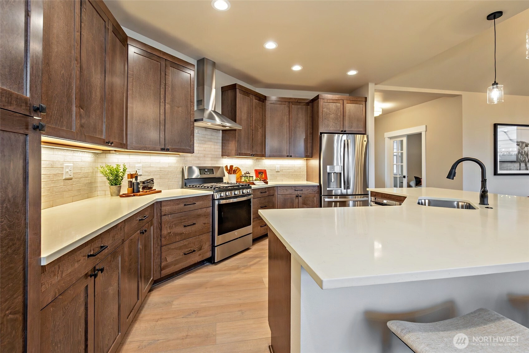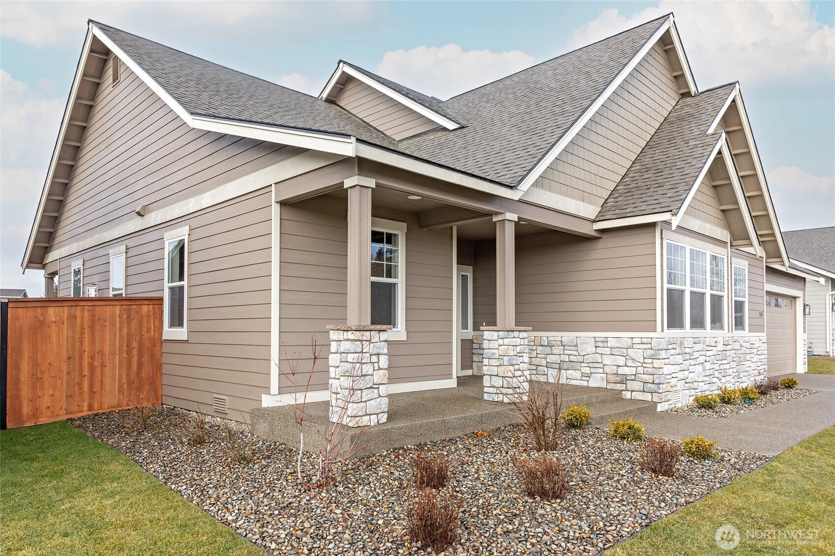 Sanders Mill New Luxury Home...Ideal location close to town. Quality built craftsman detailing, extra large lot, front porch entry, open floor plan, designer interior, custom details throughout, vaulted ceilings, gas fireplace & luxury vinyl floors. Spacious kitchen, quartz counters, high-end appliances, island seating & an abundance of cabinets plus pantry. Primary bedroom, vaulted ceiling, walk-in closet, en-suite walk-in tile shower, heated floor & double sinks. Den off entry, plus large bonus room includes roughed in plumbing ready for future bathroom...makes this your perfect forever home. Solar panels included. Shared driveway. CCR's.***Includes front yard landscape, fenced backyard, sprinkler system & sod front & back***