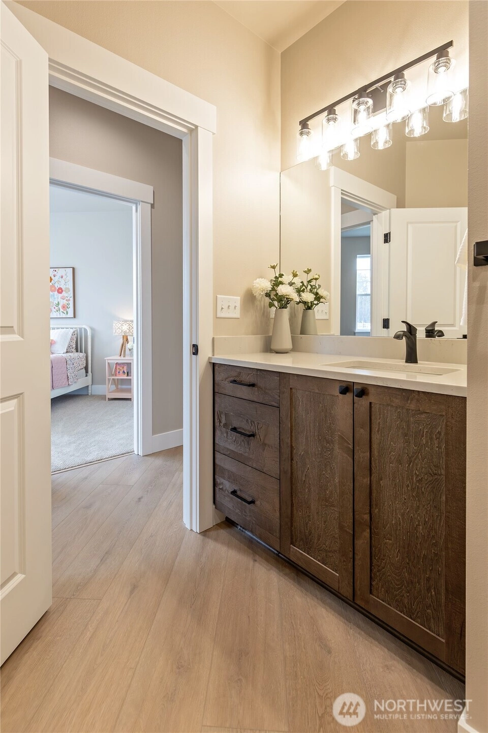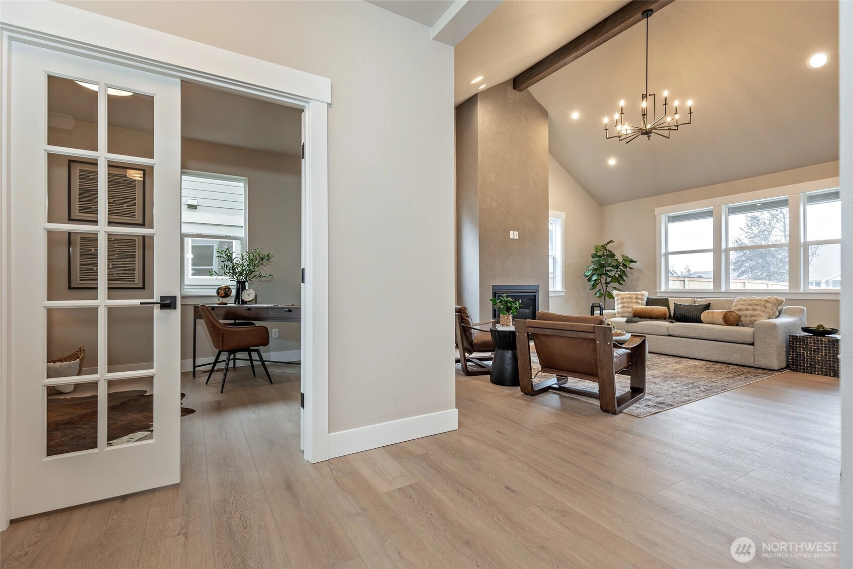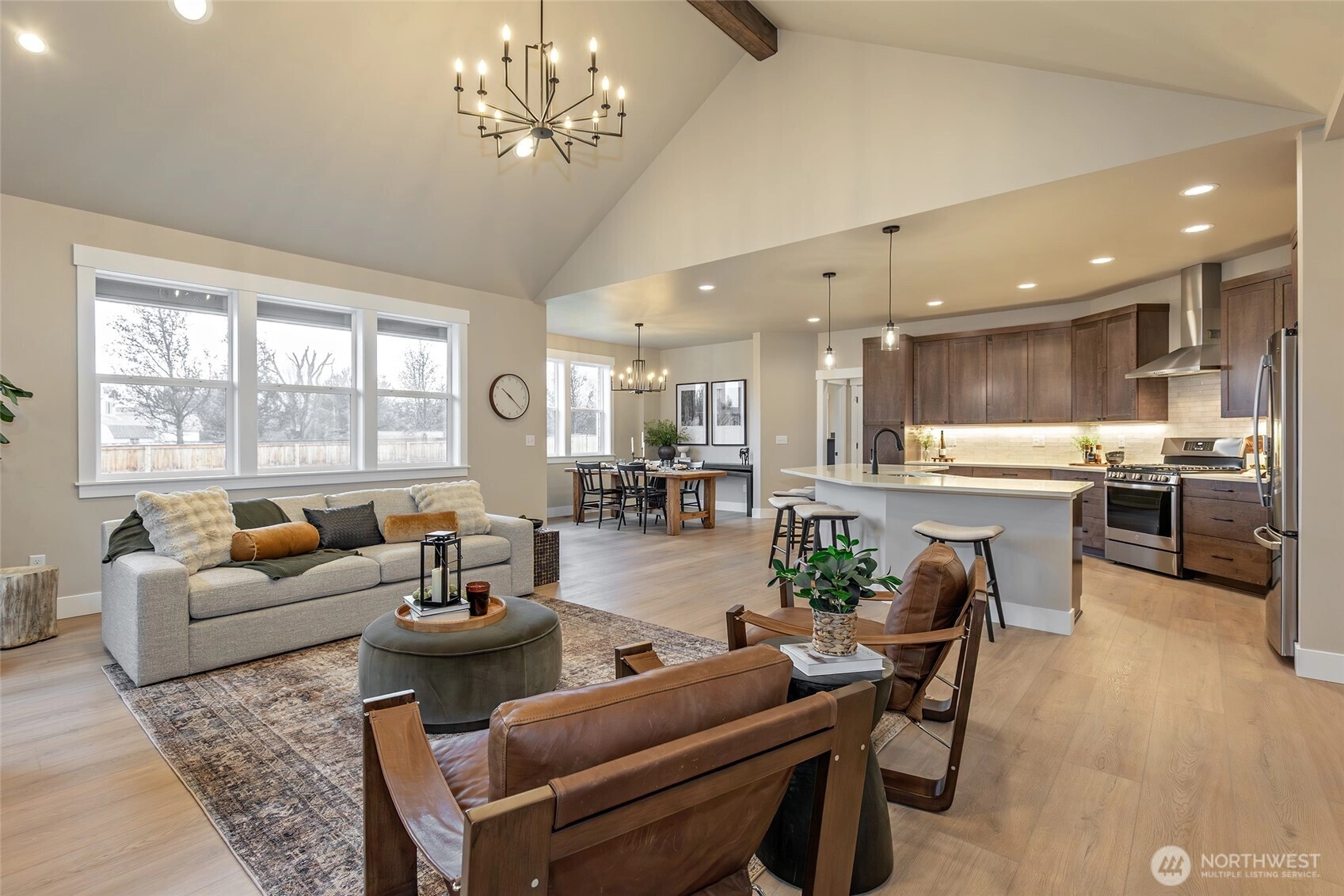 Sanders Mill New Luxury Home...Ideal location close to town. Quality built craftsman detailing, extra large lot, front porch entry, open floor plan, designer interior, custom details throughout, vaulted ceilings, gas fireplace & luxury vinyl floors. Spacious kitchen, quartz counters, high-end appliances, island seating & an abundance of cabinets plus pantry. Primary bedroom, vaulted ceiling, walk-in closet, en-suite walk-in tile shower, heated floor & double sinks. Den off entry, plus large bonus room includes roughed in plumbing ready for future bathroom...makes this your perfect forever home. Solar panels included. Shared driveway. CCR's.***Includes front yard landscape, fenced backyard, sprinkler system & sod front & back***