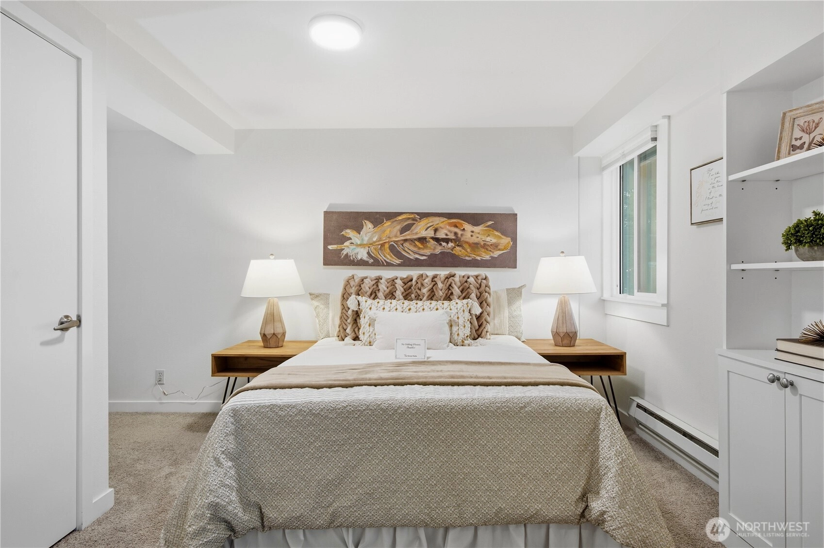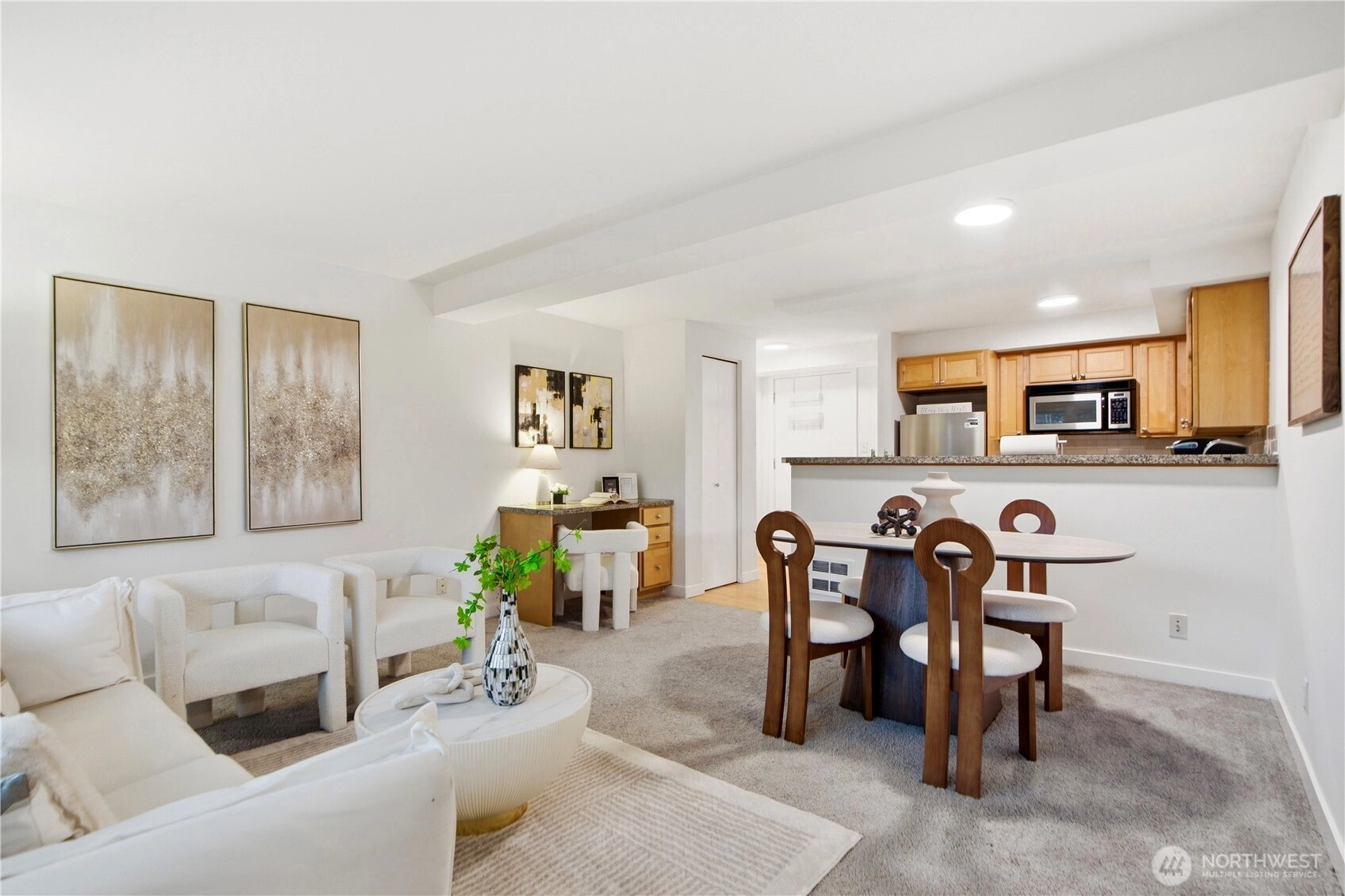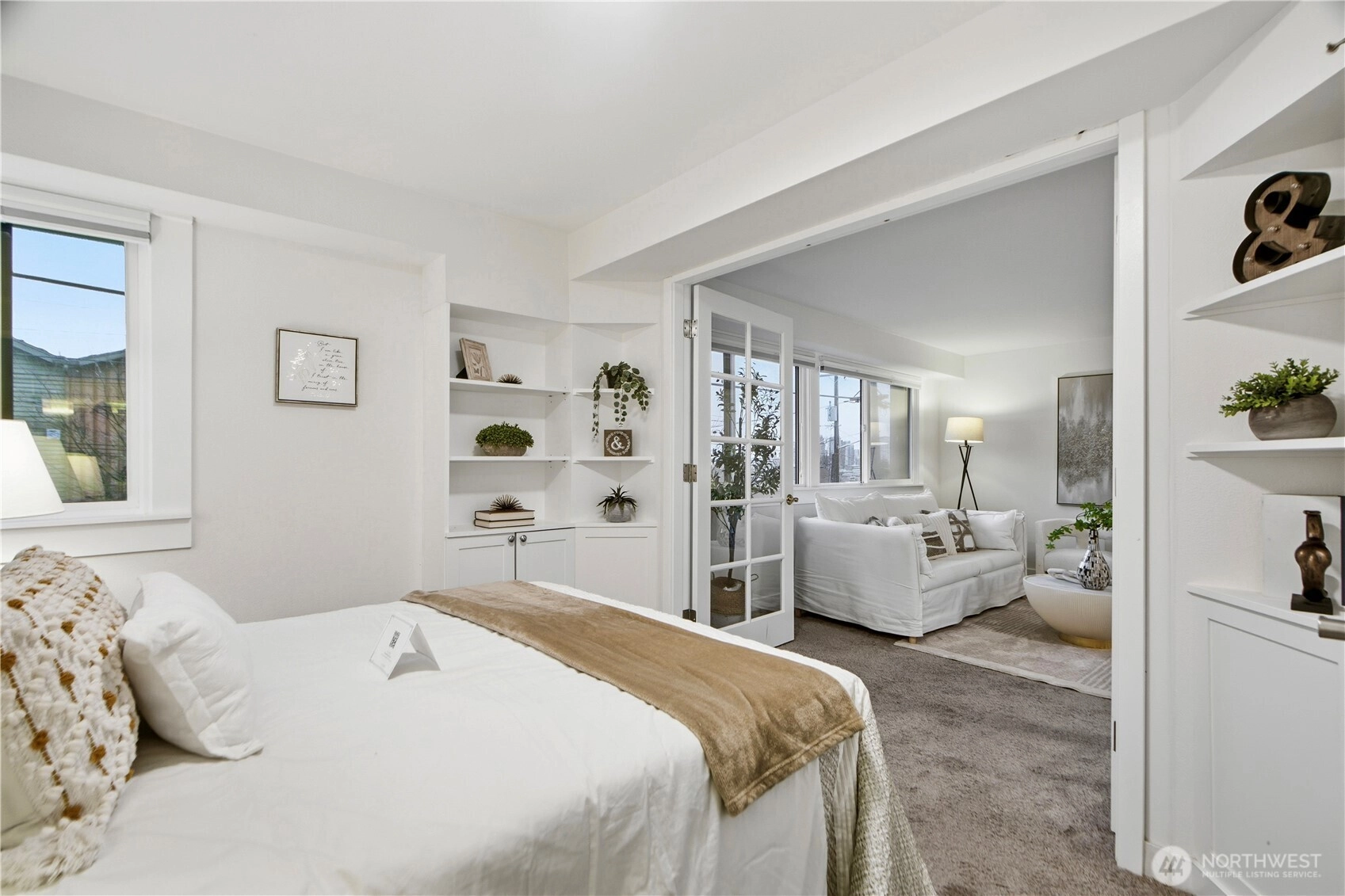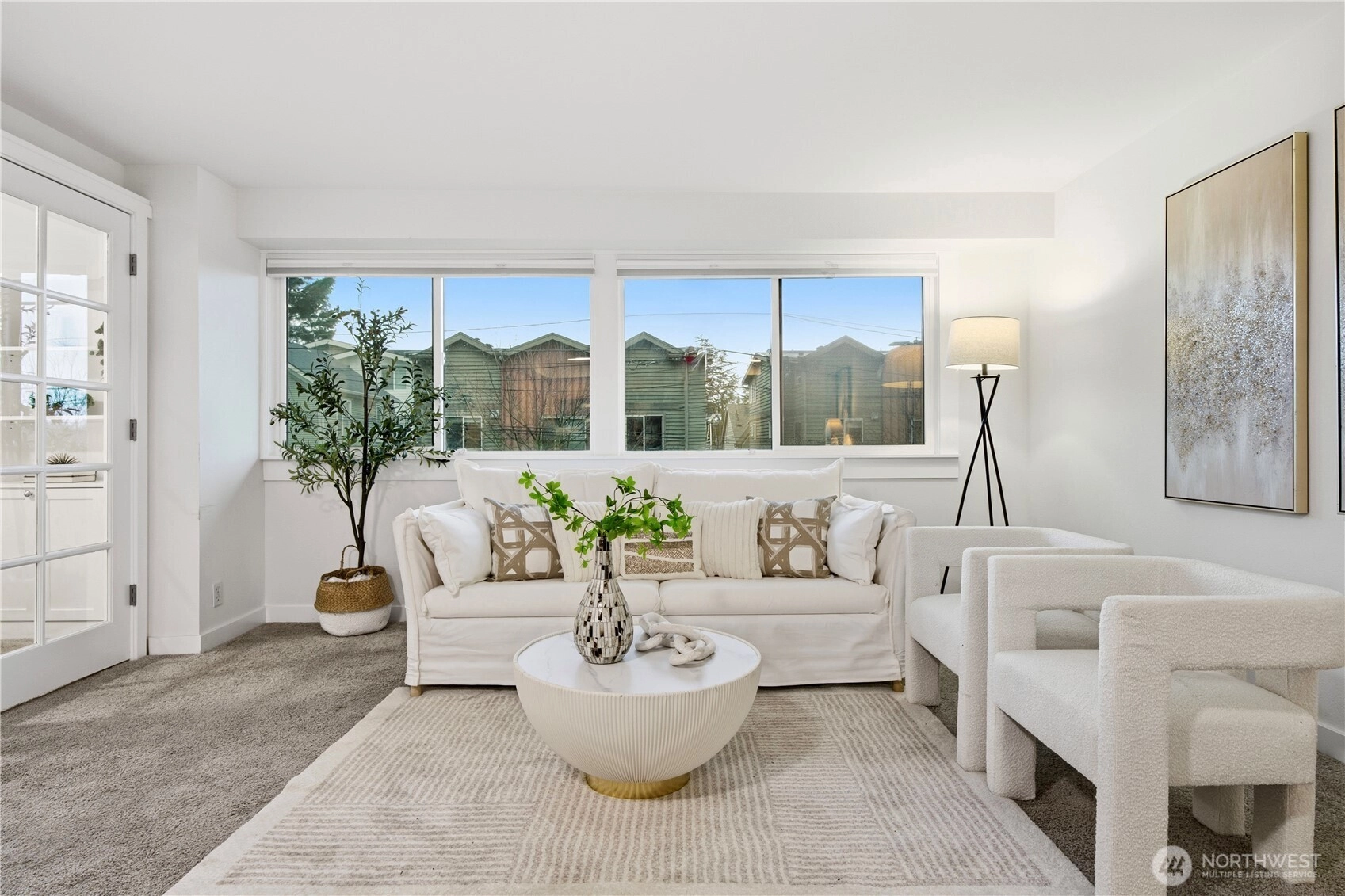 Welcome to your in-city oasis minutes from the Space Needle, Kerry Park, South Lake Union, and Queen Anne Ave. Enjoy downtown Seattle views through a wall of windows and French doors leading to the bedroom with built-ins, ensuite bath, and walk-in closet. Open kitchen features stainless steel appliances, granite counters, and a breakfast bar. Recently updated with new carpet, paint, and LED lighting. Pet-friendly building with no rental cap and dedicated storage. Close to Climate Pledge Arena, McCaw Hall, dining, shopping, and entertainment. A must see!