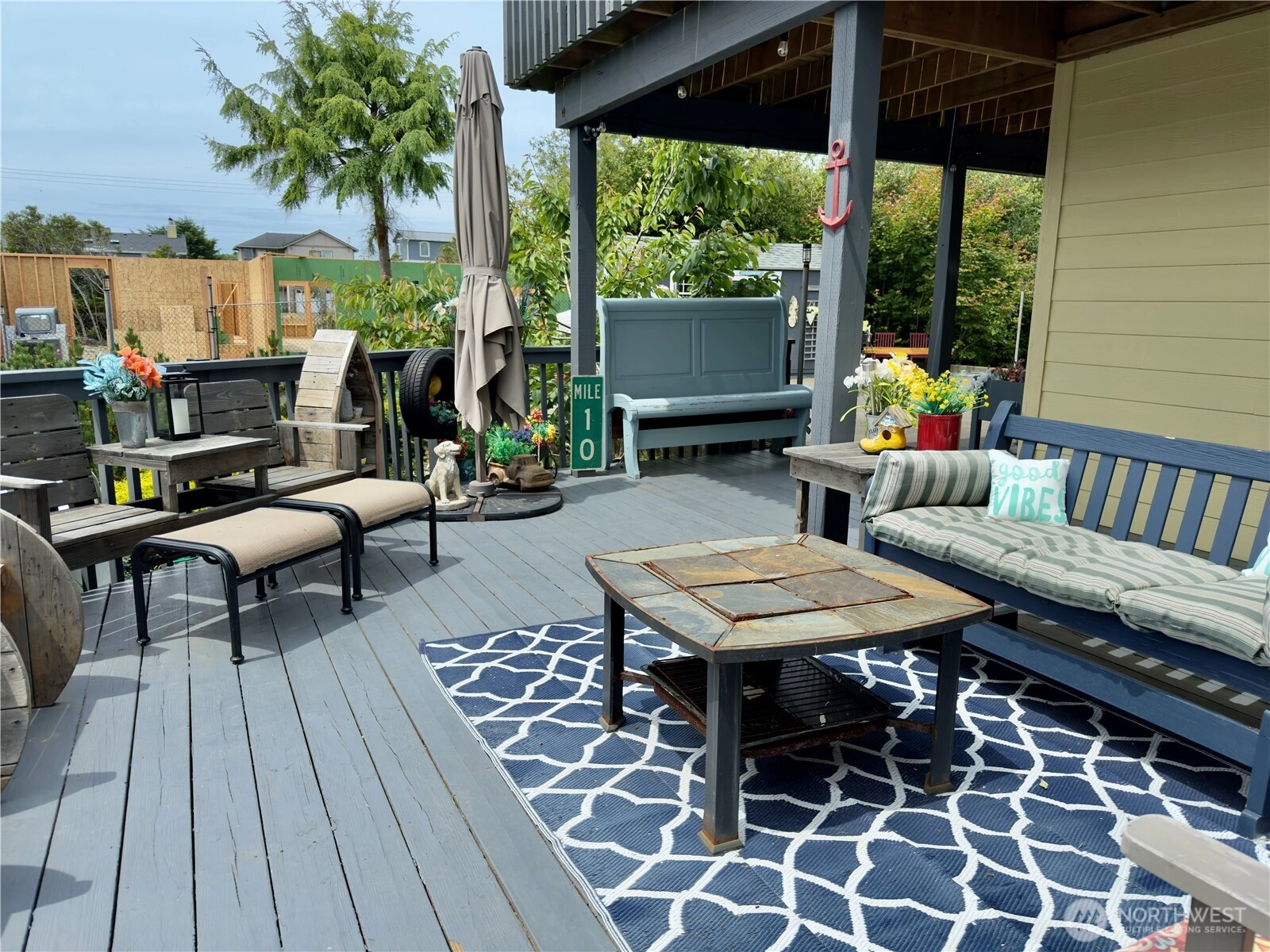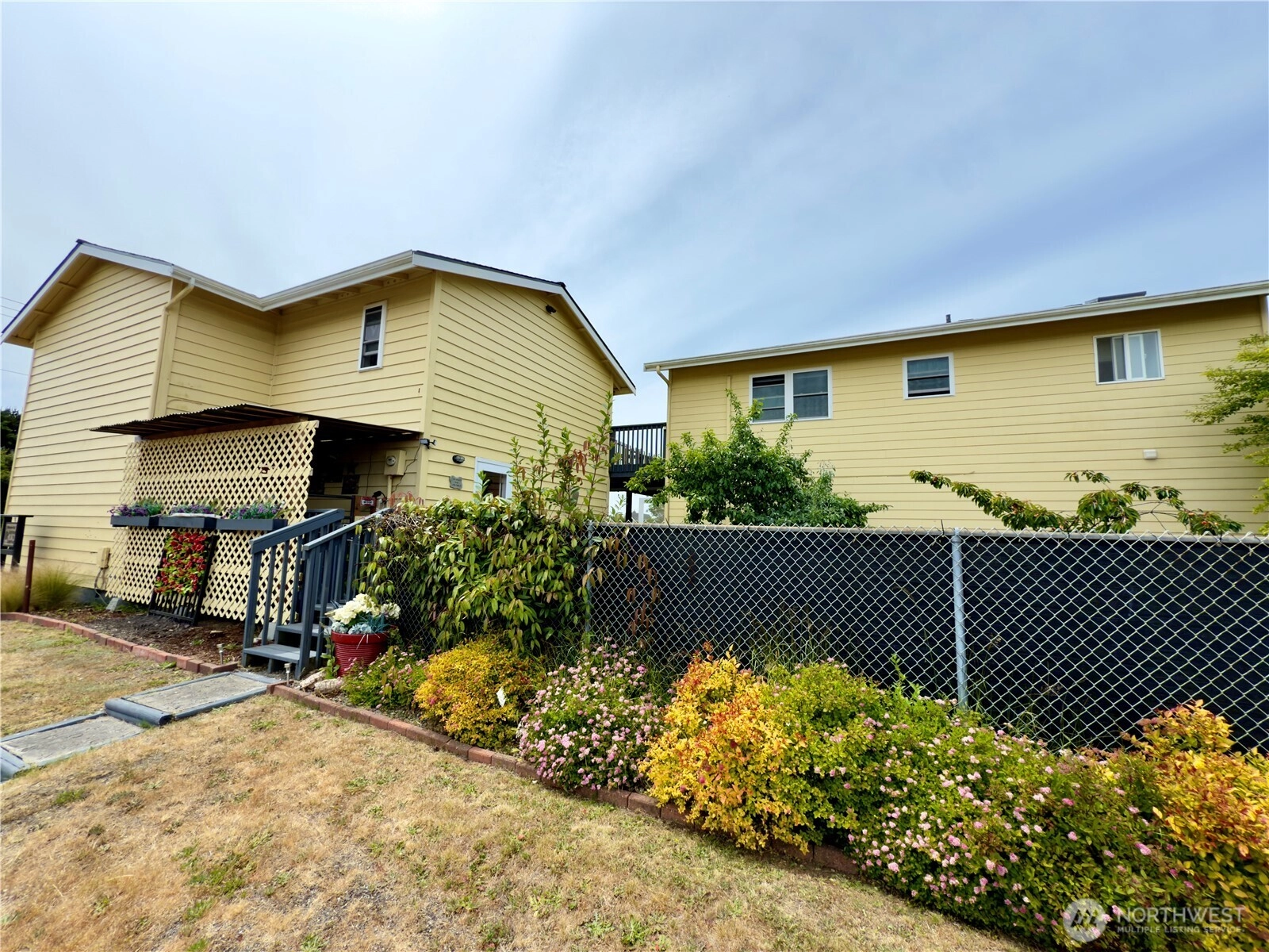Stunning Multi-Generational Beach Home w/ income Potential! This beautifully designed home features a wall of windows that fills the main living space with natural light. The main floor includes a primary suite, while the upper level offers a second living area, bedroom & full bath. detached garage/ living area includes a ¾ bath, bedroom, & shared laundry space. Upstairs there is a generous 1 bedroom apartment, perfect for guests/multi-generational living or a income-producing rental, fully fenced. Just a short walk to the beach, A perfect opportunity to live in the main home & offer guests their own private space or rent out for extra income!