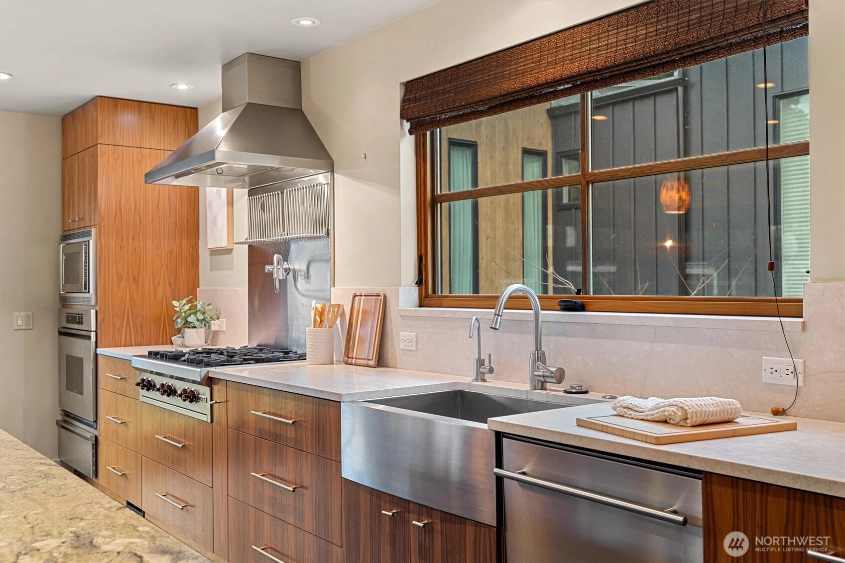 Showcasing over $500K in upgrades, this renovated 1947 bungalow melds its architectural heritage while delivering modern luxury. Open living spaces flow seamlessly into a chef's kitchen featuring designer finishes, marble and granite countertops, maple and walnut veneer cabinetry, a Wolf gas range and Sub-Zero appliances. Refinished hardwood floors complement an array of modern comforts, including a newer gas furnace, tankless water heater, and central AC. The versatile floor plan offers 3 bedrooms and 1 bath on the main level, plus a lower level with an additional bedroom, laundry room, and an unfinished space with plumbing in place—ideal for a future bathroom or expanded living area. The fully fenced backyard features updated landscaping and a stunning Brazilian Ipe deck—an inviting extension of the home’s living space. Perfectly suited for multigenerational living, hosting guests, generating rental income, or a refined work-from-home lifestyle. Ideally located just minutes from the light rail, Green Lake, downtown Seattle, shopping, and dining—making everyday living and commuting effortless.