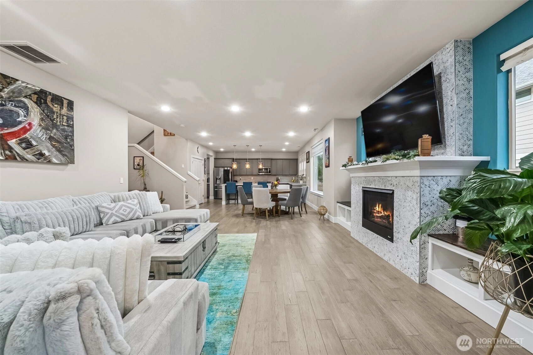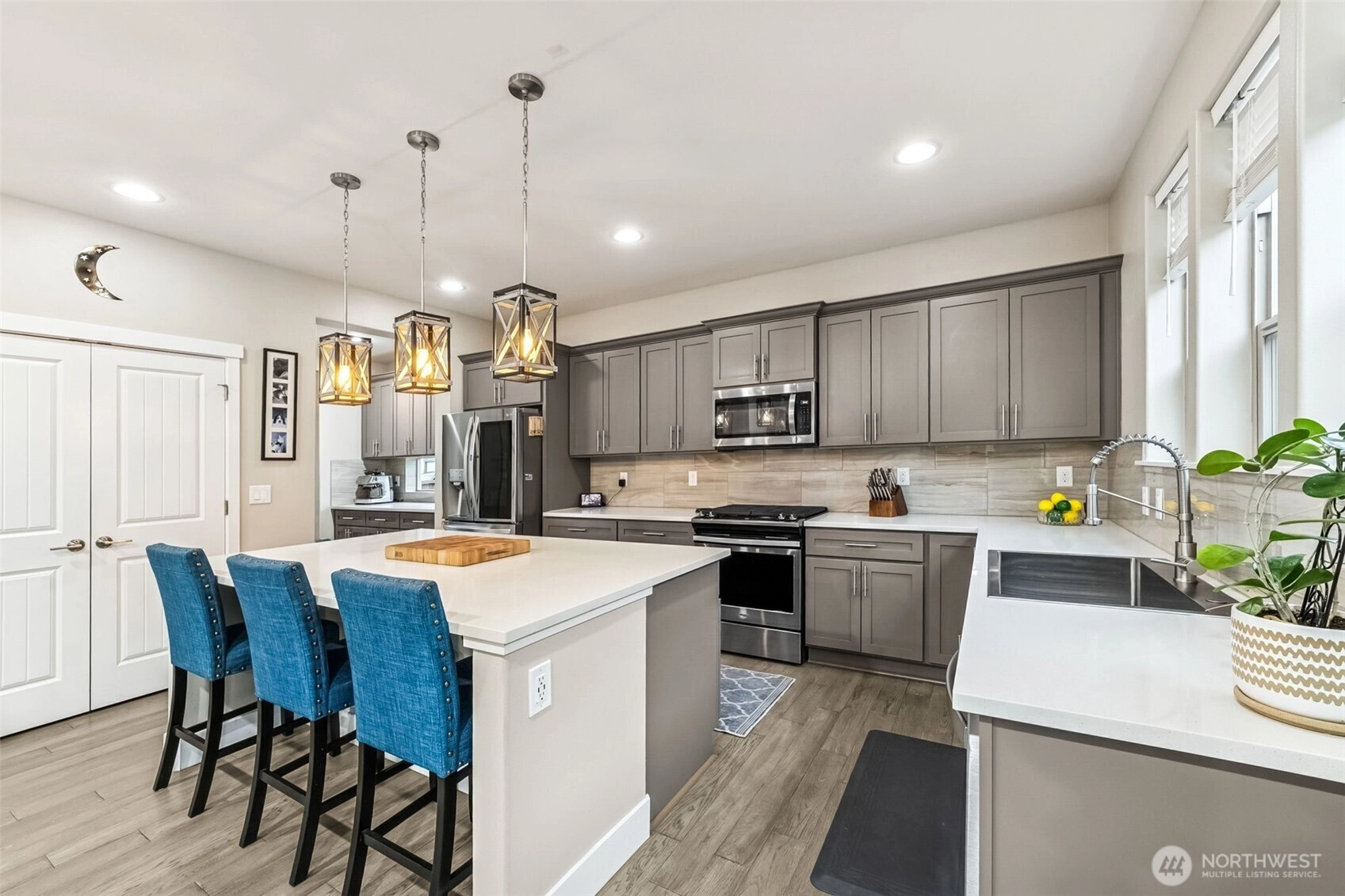 Move in ready Brookstone resale in Tehaleh with amazing views of Mt Rainier on a corner lot! Stunning kitchen with quartz counters, butler's pantry, gas range & 2 pantries. Main floor flows from room to room with ease, featuring a dedicated office/ den with french doors, formal dining room (or flex room), as well as the great room open to the kitchen, informal dining & covered back patio and back yard. A gorgeous custom tile fireplace graces the great room and another gas fireplace keeps the covered patio nice & warm on cooler days. Upstairs you'll find all 4 bedrooms and 3 full baths (1 jack n' jill and one continental), as well as large loft and laundry room. You'll love the large Primary Suite with 5 piece bath and 2 closets! Walking distance to several trailheads and the dog park as well as the neighborhood coffee and bar. Sumner/Bonney Lake schools. Don't let this one get away!