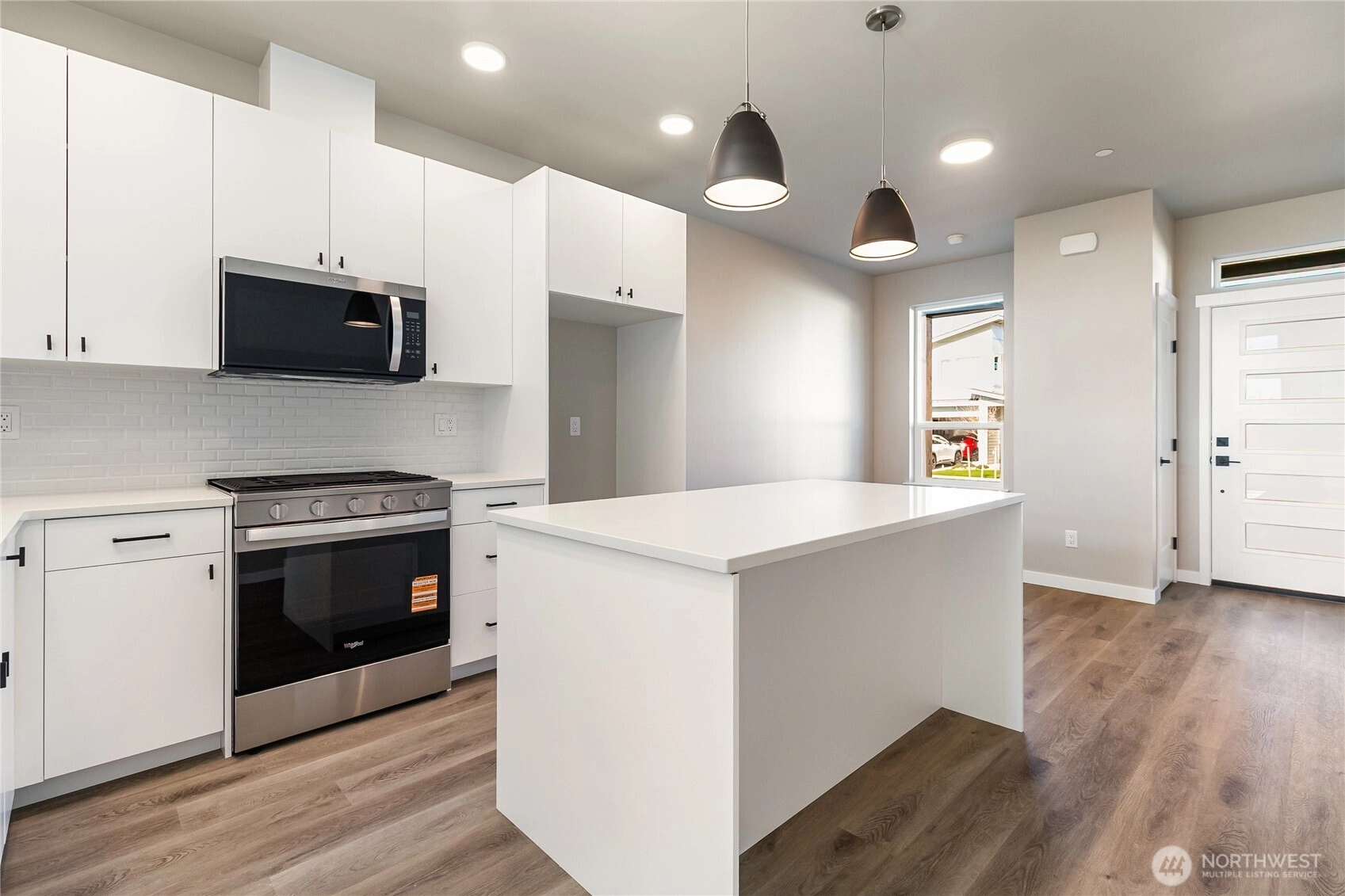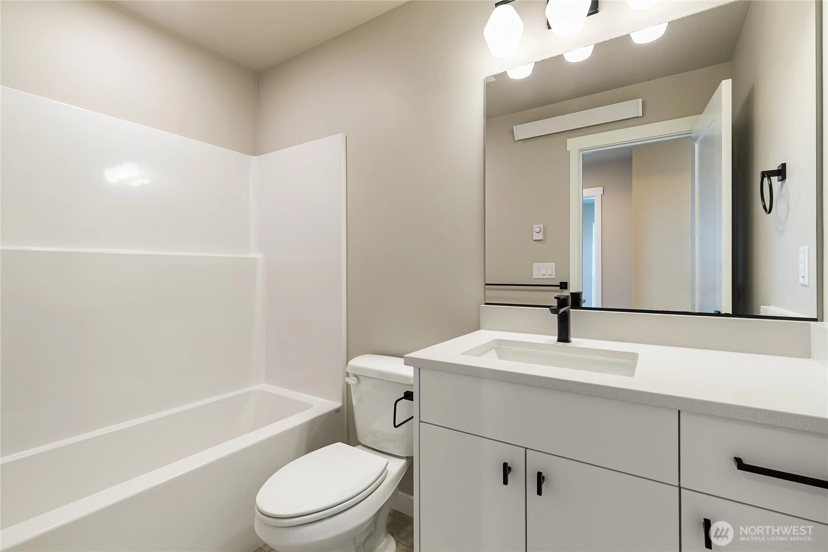 Welcome to Northview 2 in Cordata, Bellingham's premier solar home community! This stunning 2-story modern farmhouse design features an open and spacious floorplan, a custom kitchen with sleek quartz countertops, and a primary suite with an ensuite boasting a double sink and walk-in closet. Designed with sustainability in mind, enjoy efficient mini-split heat pumps with A/C, a partially fenced backyard, and EV charger prewiring. Light-filled interiors enhance the modern design. This beautiful 3-bedroom home backs up to a greenbelt for added privacy. Your dream home awaits—secure yours today!