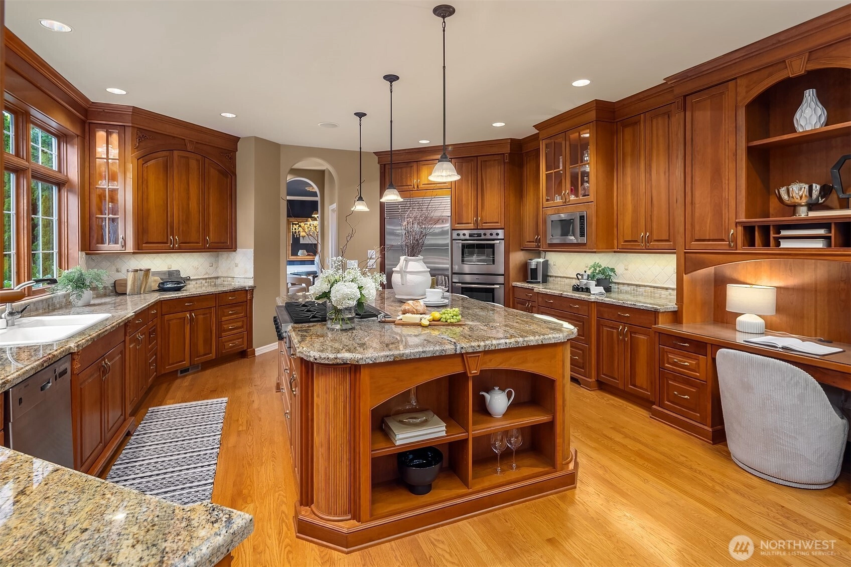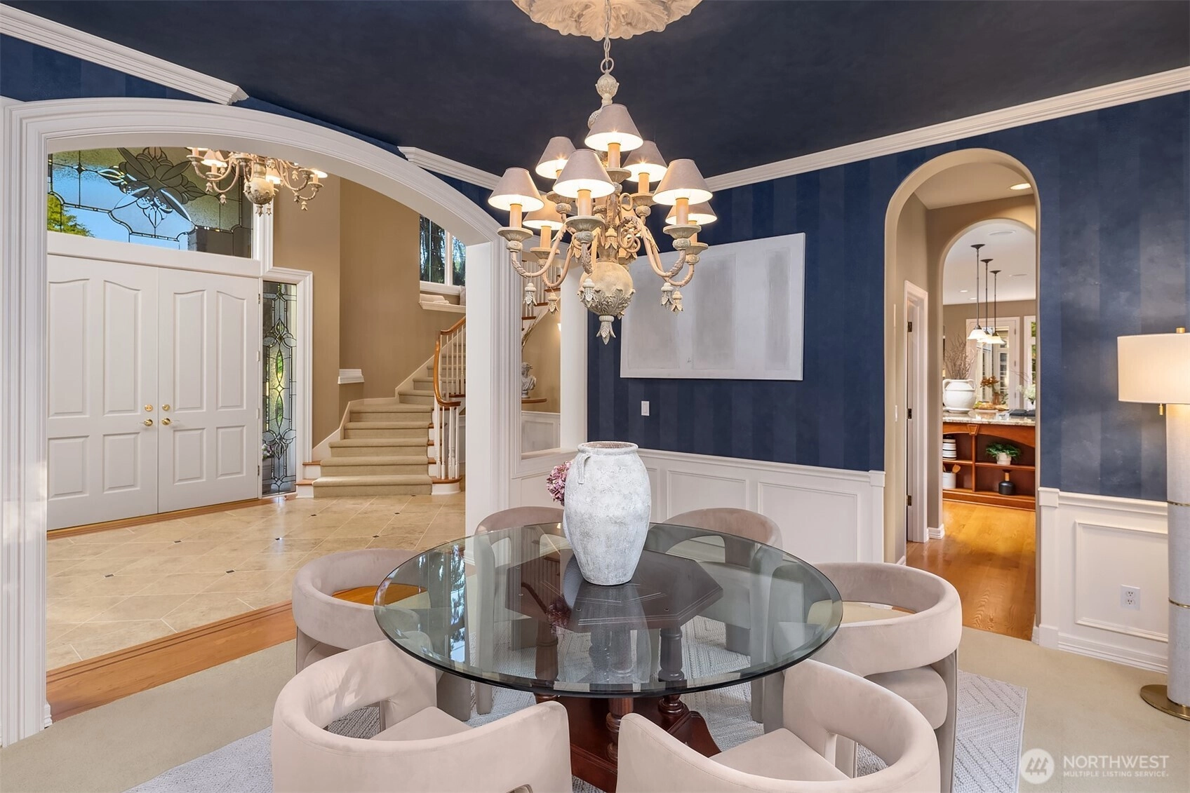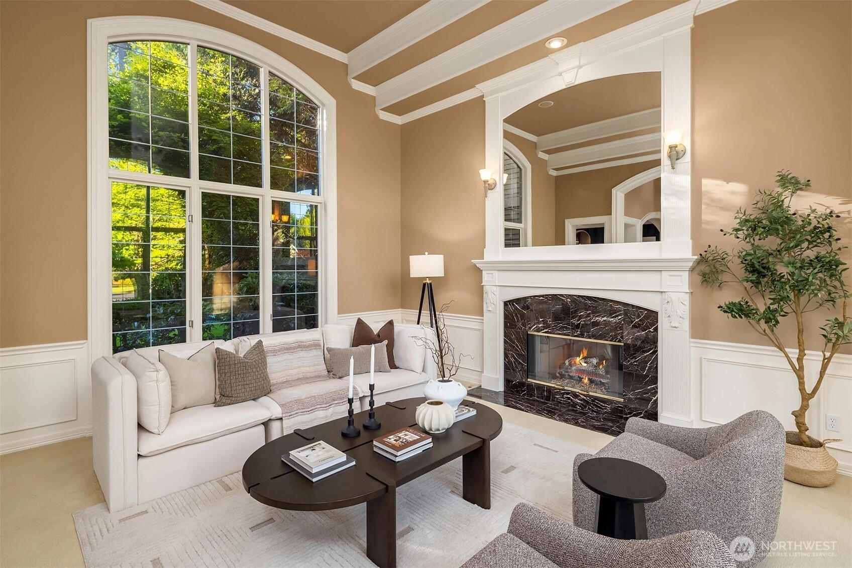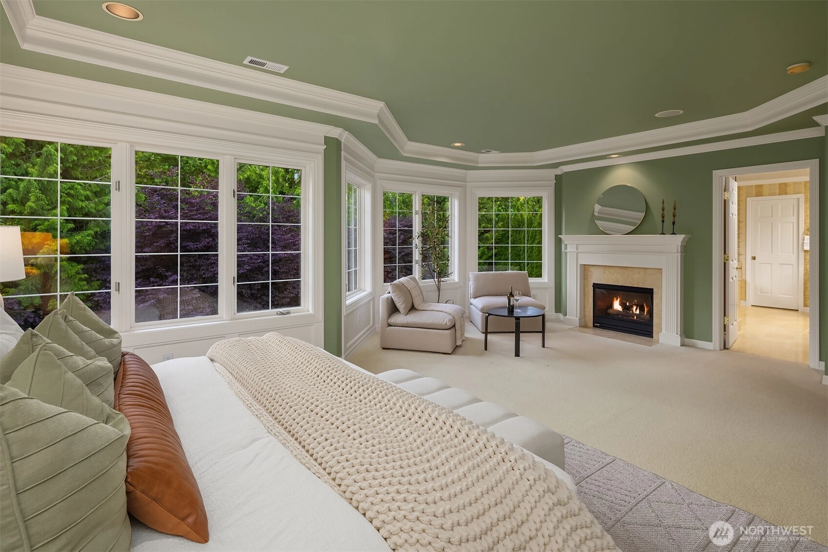 Situated in a secure gated community on a lush, tree-lined setting, this immaculate Steven D. Smith built estate blends elegance with refined modern living. One owner, mint condition, and hitting the market for the very first time. This home is a STUNNER. A grand entry welcomes you with soaring ceilings and expansive windows bathed in natural light. The living room is anchored by a stunning fireplace, while the chef’s kitchen impresses with luxury appliances, A/C, an oversized island, and a butler’s bar. The primary suite features its own fireplace and sitting area, plus a true spa-like bath with jetted tub. A handsome study with built-in cabinetry, a flex room on the main floor (ideal as a 5th bedroom), and a bonus room upstairs offer space and versatility for any lifestyle. Manicured landscaping and serene outdoor spaces complete this retreat — set in one of the Eastside’s most coveted enclaves, just minutes to Microsoft, SpaceX, and the heart of Eastside tech. First time on market. Brand new 50-year Presidential roof. Private, gated, and impeccably maintained inside and out. This is it.