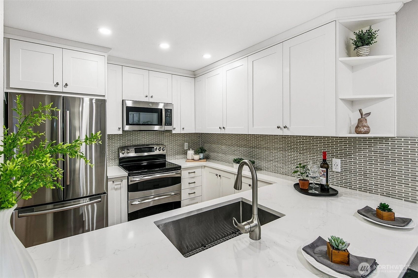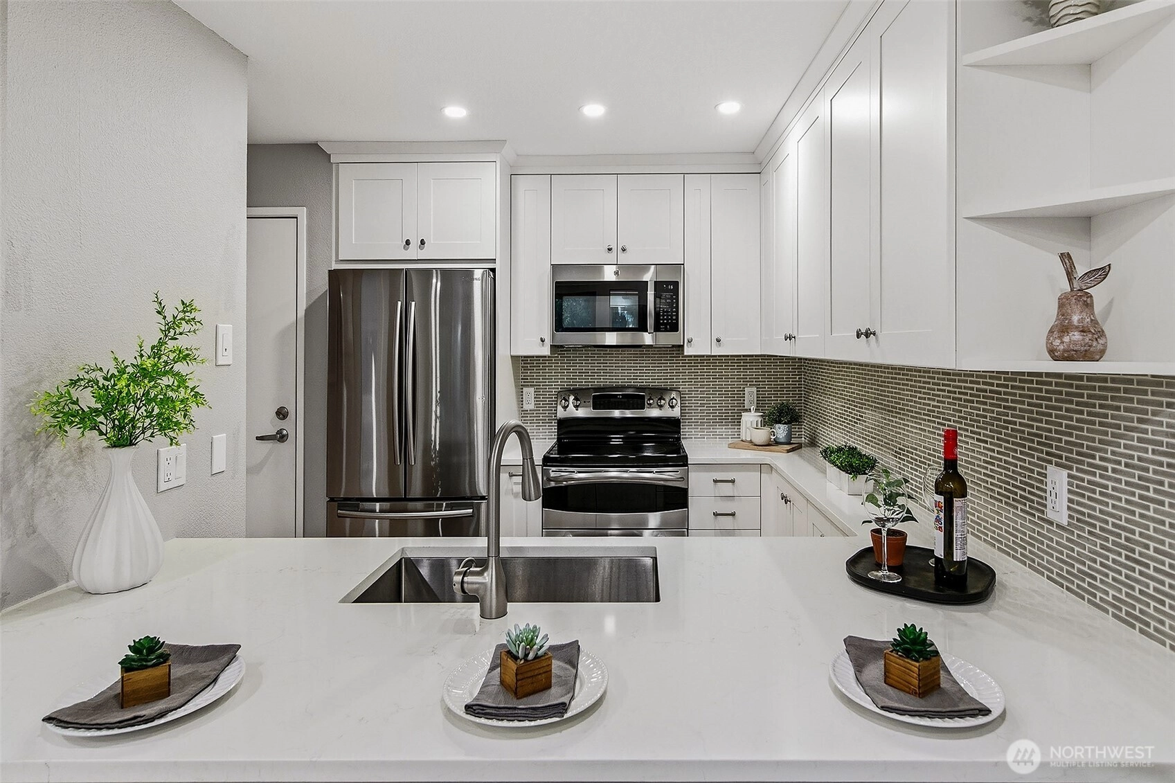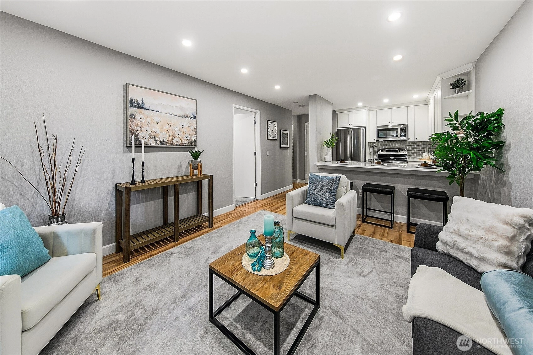 This beautifully updated condo offers the perfect blend of modern style and urban convenience. With a Walk Score of 93, enjoy unbeatable access to the best restaurants, bars, Seattle Center, Met Market, Space Needle and Climate Pledge. Inside, you’ll love the sleek kitchen with quartz countertops, updated bath, and recessed lighting throughout. The unit features easy access to the front door and elevator, plus a private patio ideal for relaxing or entertaining. Onsite amenities include an outdoor BBQ area, bike storage, additional storage, EV charging, workout room and a media lounge with outdoor dining spaces. Pet-friendly and perfectly located — this home delivers comfort, convenience, and the best of city living!
