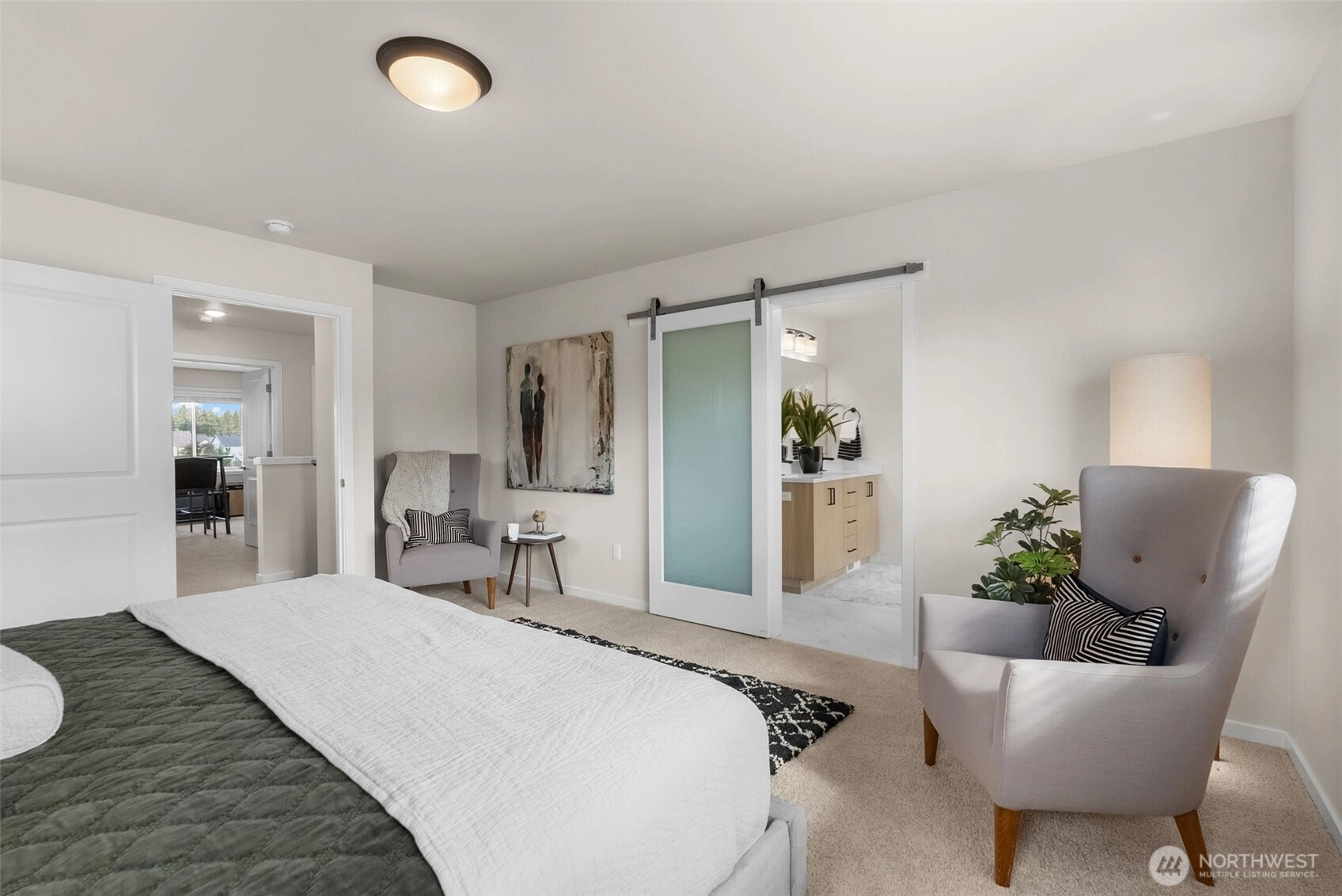 Welcome to Lot 8 at The Preserve, showcasing the spacious Cedar plan with 5 bedrooms and 3.5 baths. A standout feature is the main-floor mini suite with its own private bath, offering ideal flexibility for guests, multi-generational living, or a dedicated workspace. The gourmet kitchen impresses with quartz countertops, full-height subway tile backsplash, stainless steel appliances, and custom soft-close cabinetry. Engineered plank flooring spans the main level, complemented by site-painted millwork and an inviting upstairs primary suite. Outdoor living shines with a covered rear patio designed for year-round entertaining, overlooking a fully landscaped, fenced yard complete with irrigation for easy lawn maintenance. Practical conveniences include blinds, washer, dryer, refrigerator, and A/C, with the HOA maintaining the front yard for a low-maintenance lifestyle.