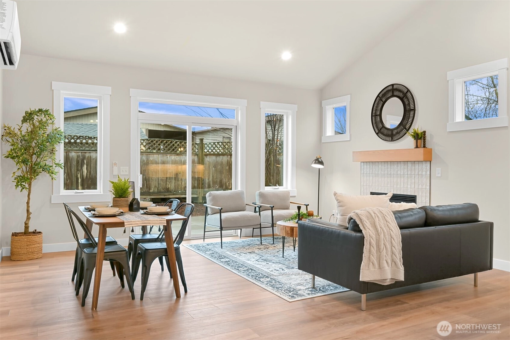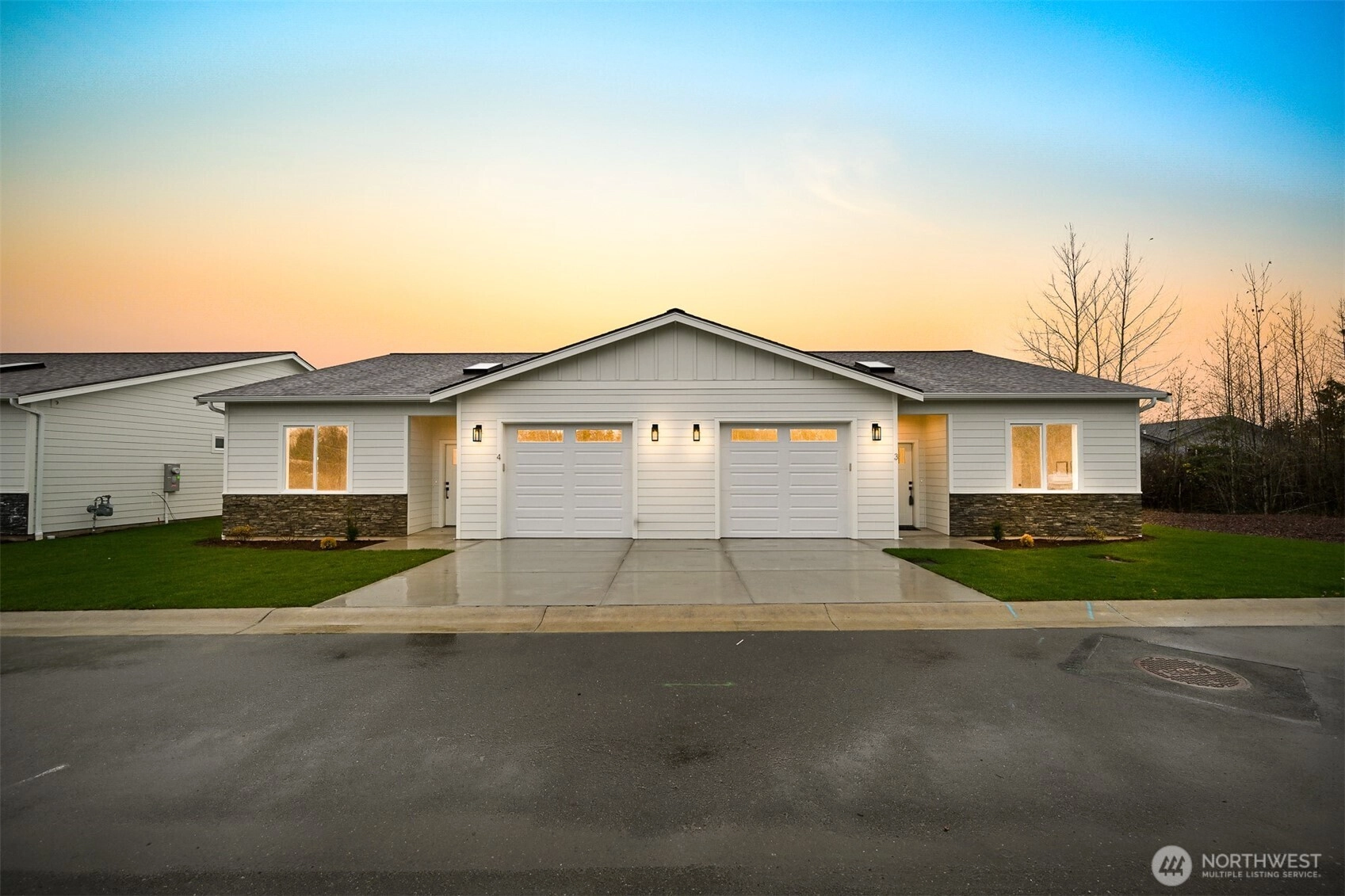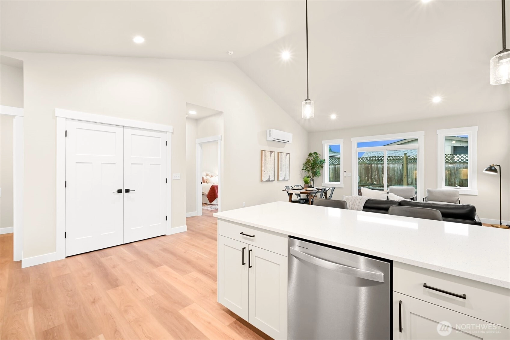 King Mountain Brand New 55+ living! Single-level luxury with absolutely ZERO steps, situated at the end of a dead-end street. Intelligent design captures the essence of true Northwest architecture with a modern flair. Generously sized windows & vaulted great room ceilings create a light & airy atmosphere. Magnificent chef's kitchen fully loaded with quartz counter tops, stainless appliances, soft close drawers & under cabinet lighting. Spacious vaulted primary bedroom & a spa-like ensuite. Enjoy your own backyard with a patio & privacy fence, plus the convenience of an attached garage—all in a serene, quiet location, in a gated secure neighborhood. Efficient heating & air conditioning. 55+ neighborhood. Oversized 1 car garage with a lot of storage capacity & pre-wired for EV charger.