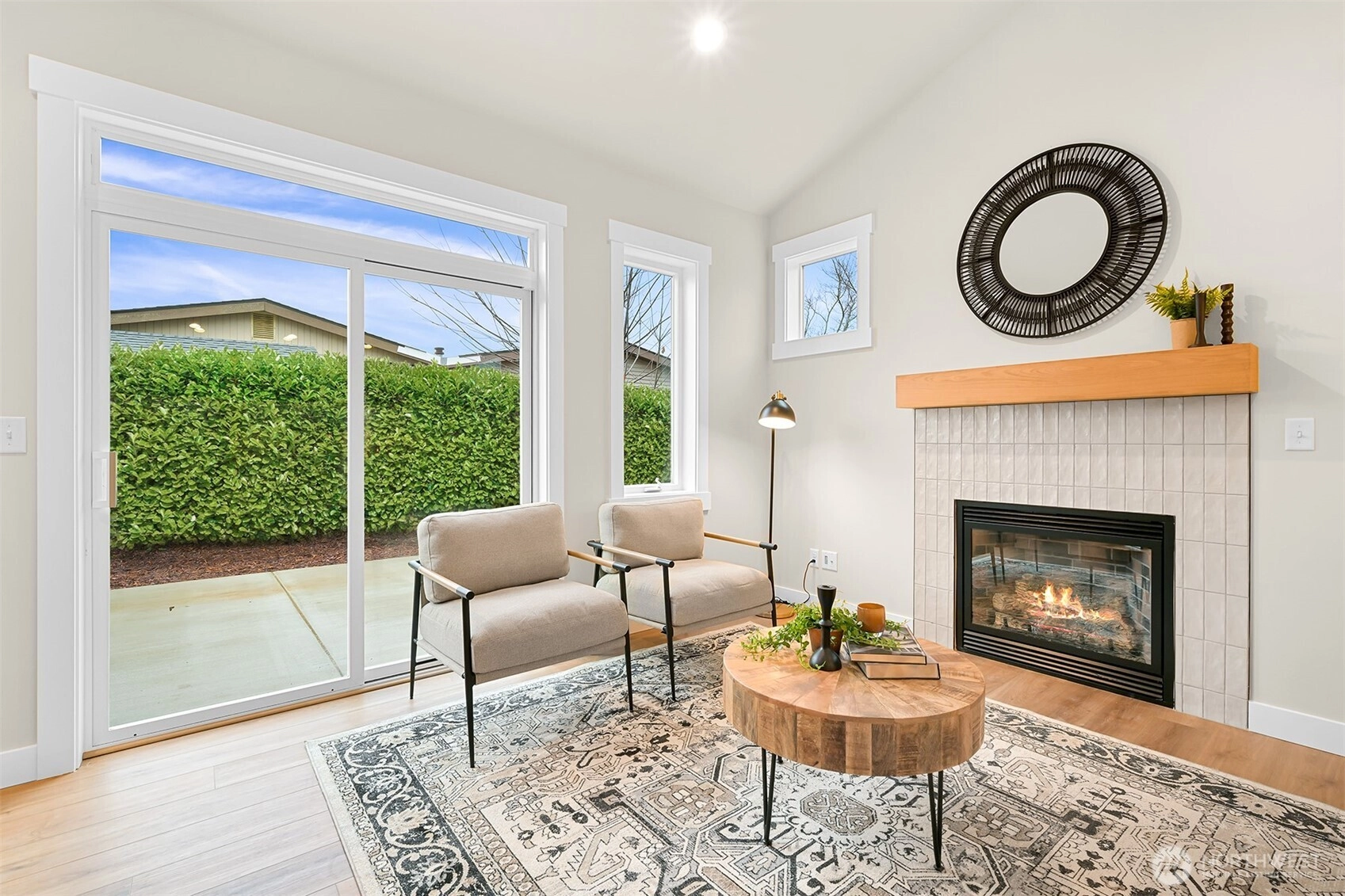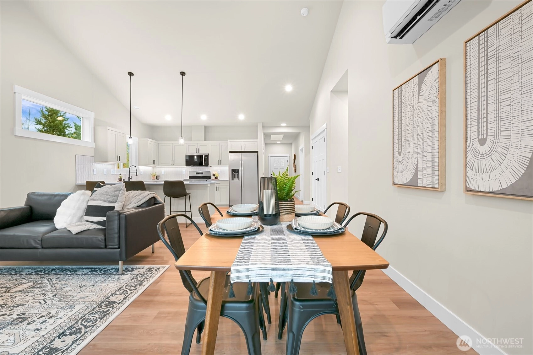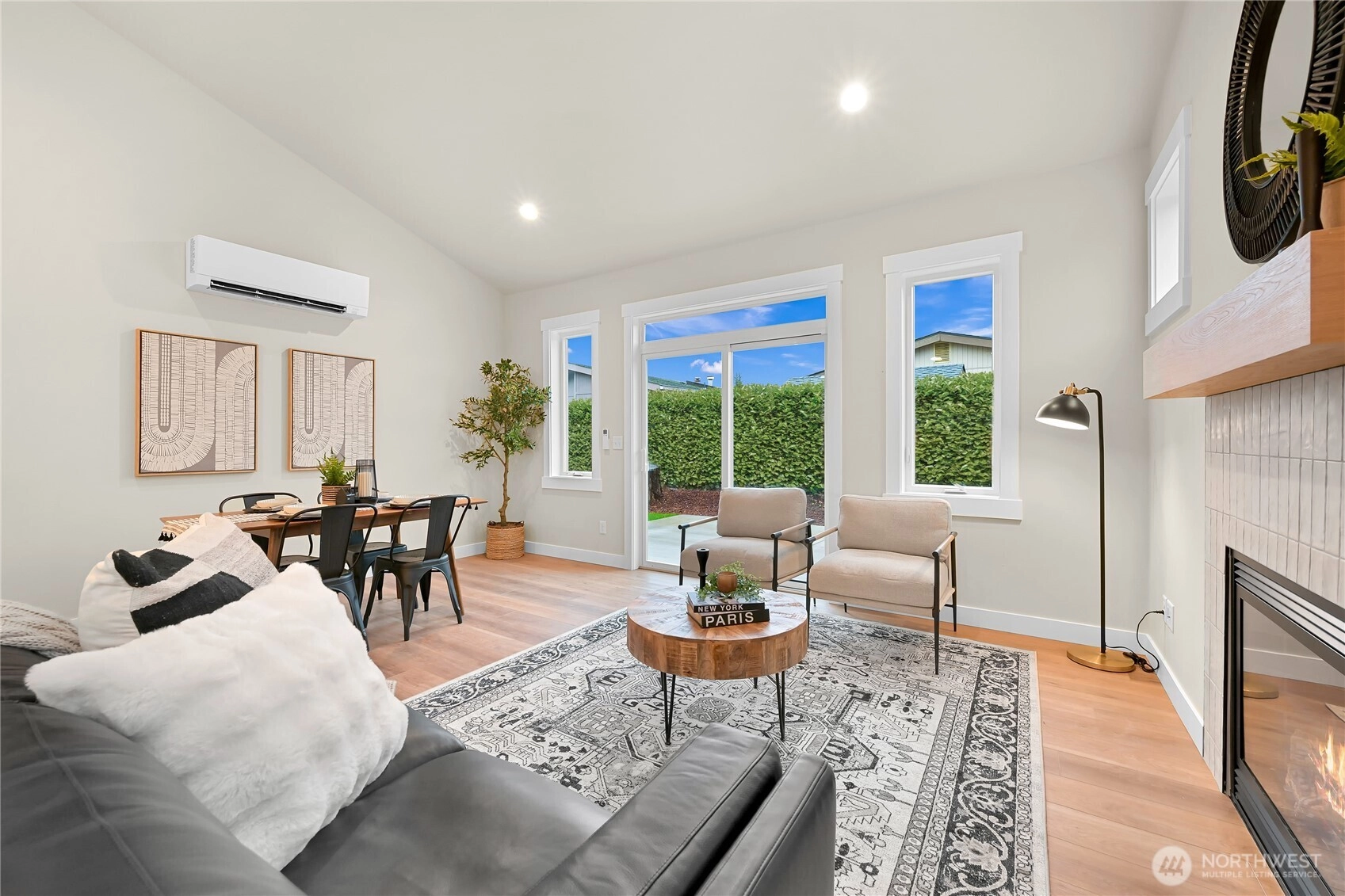 King Mountain Brand New 55+ living! Single-level luxury with absolutely ZERO steps, situated at the end of a dead-end street. Intelligent design captures the essence of true Northwest architecture with a modern flair. Generously sized windows & vaulted great room ceilings create a light & airy atmosphere. Magnificent chef's kitchen fully loaded with quartz counter tops, stainless appliances, soft close drawers & under cabinet lighting. Spacious vaulted primary bedroom & a spa-like ensuite. Enjoy your own backyard with a patio & privacy fence, plus the convenience of an attached garage—all in a serene, quiet location, in a gated secure neighborhood. Efficient heating & air conditioning. 55+ neighborhood. Oversized 1 car garage with a lot of storage capacity & pre-wired for EV charger.