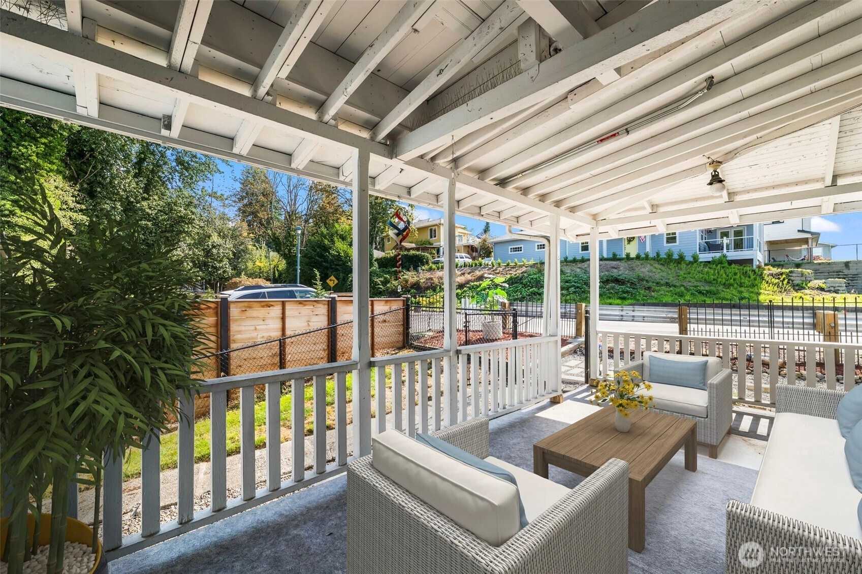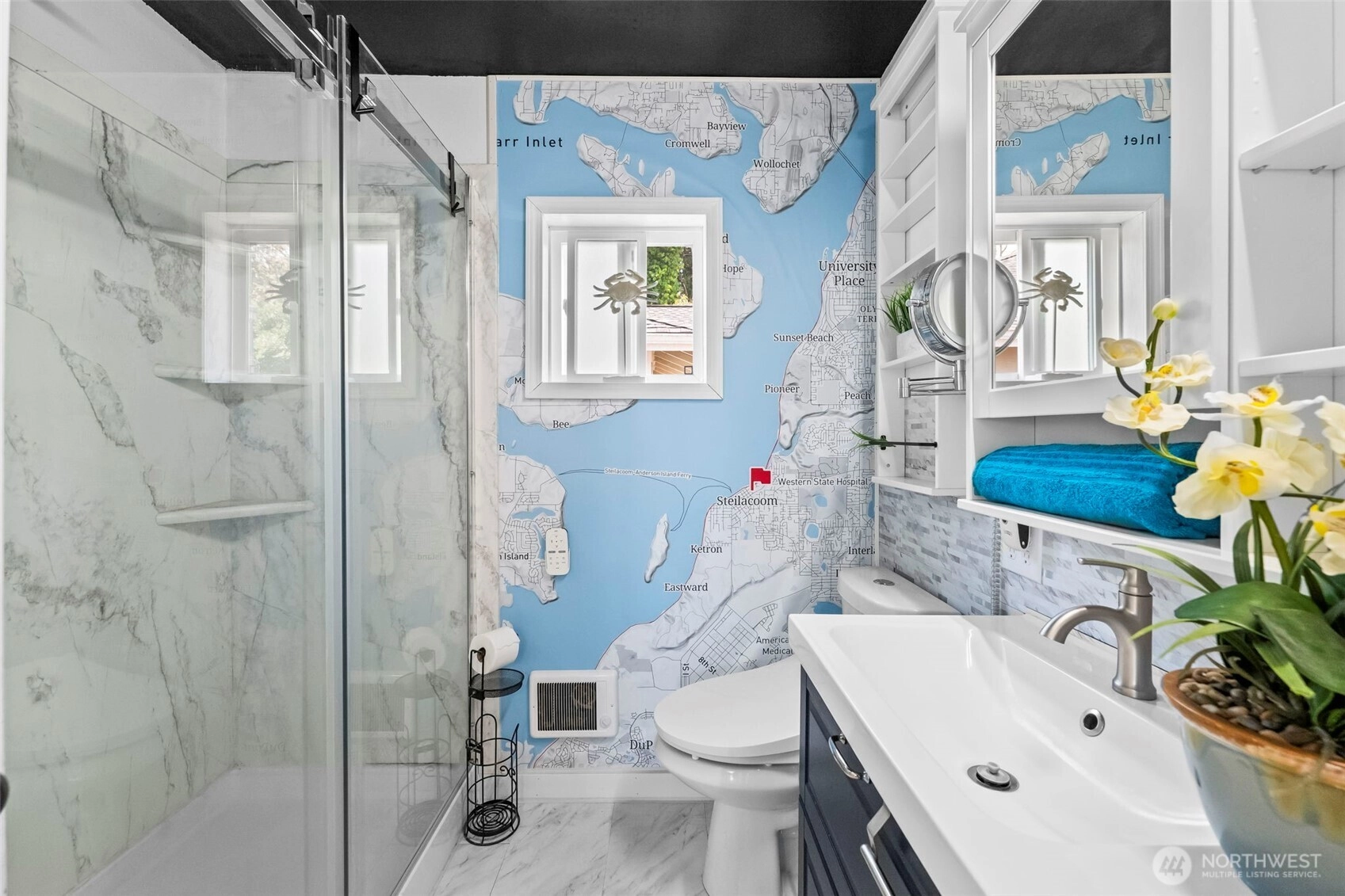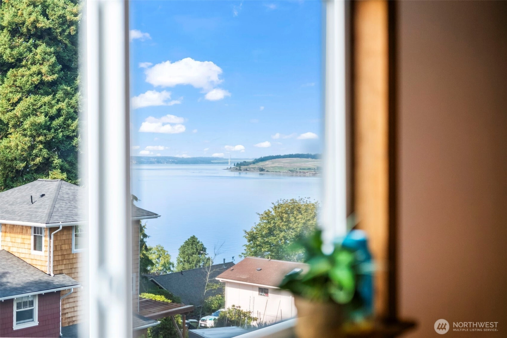 Discover timeless charm and modern efficiency in this iconic 1880s Victorian located in the Steilacoom Historical District. This beautifully updated three-level home offers full water views from nearly every room, capturing sweeping vistas of the Puget Sound, Olympic Mountains, and Chambers Bay. A rare main-floor bedroom adds flexibility and convenience, while thoughtful upgrades throughout help you save on utility costs, including solar panels, ductless heating and cooling, a tankless water heater, and a new 30-year roof. Extensive improvements also include updated plumbing, electrical, windows, appliances, EV charging, and a generator transfer switch, blending peace of mind with modern comfort. The finished basement ADU with separate entrance, kitchenette, full bath, and washer/dryer provides excellent potential for multigenerational living or rental income. Step outside to two expansive decks and a patio, perfect for entertaining, relaxing, or enjoying Fourth of July fireworks and vibrant town events—all just steps from charming downtown Steilacoom. The fully fenced property offers five parking spaces, and unbeatable walkability to Sunnyside Beach, the ferry terminal, farmers market, parks, and local shops, with easy access to I-5 and JBLM. This classic Old Steilacoom home seamlessly blends historic character, modern updates, income potential, and breathtaking views—an exceptional opportunity in one of the South Sound’s most beloved communities.