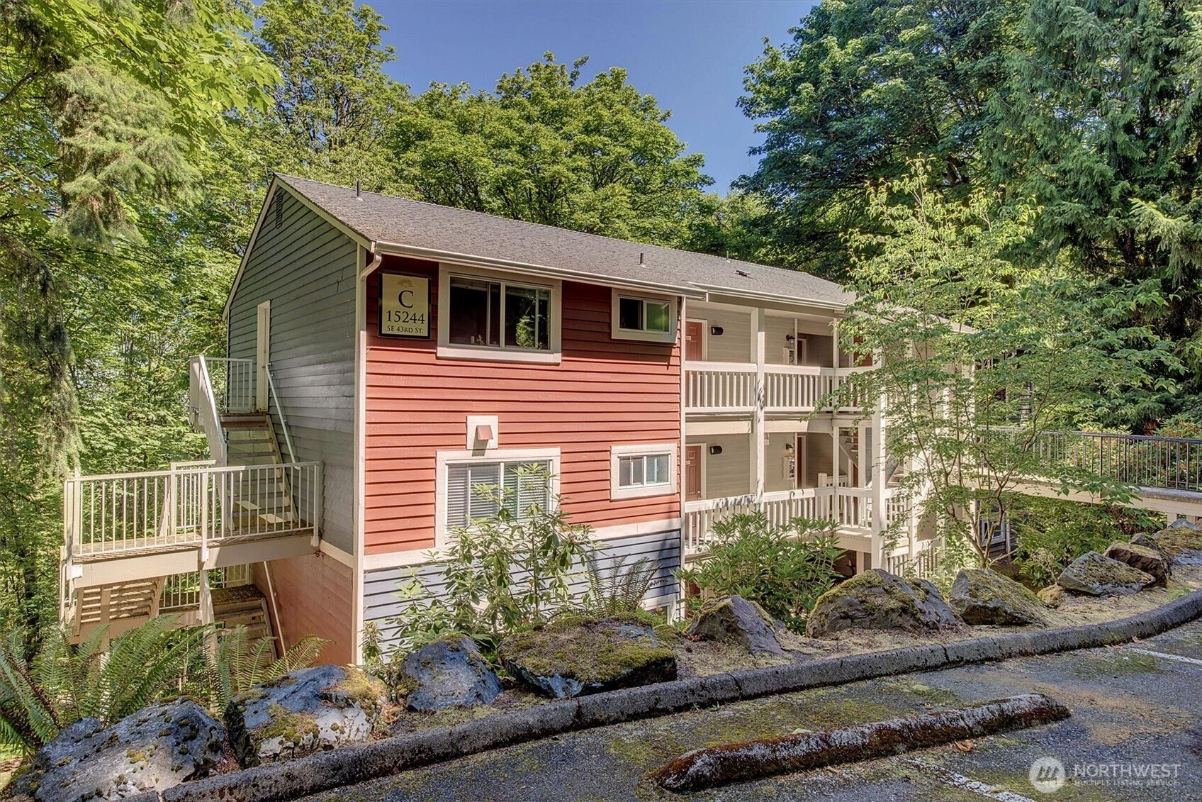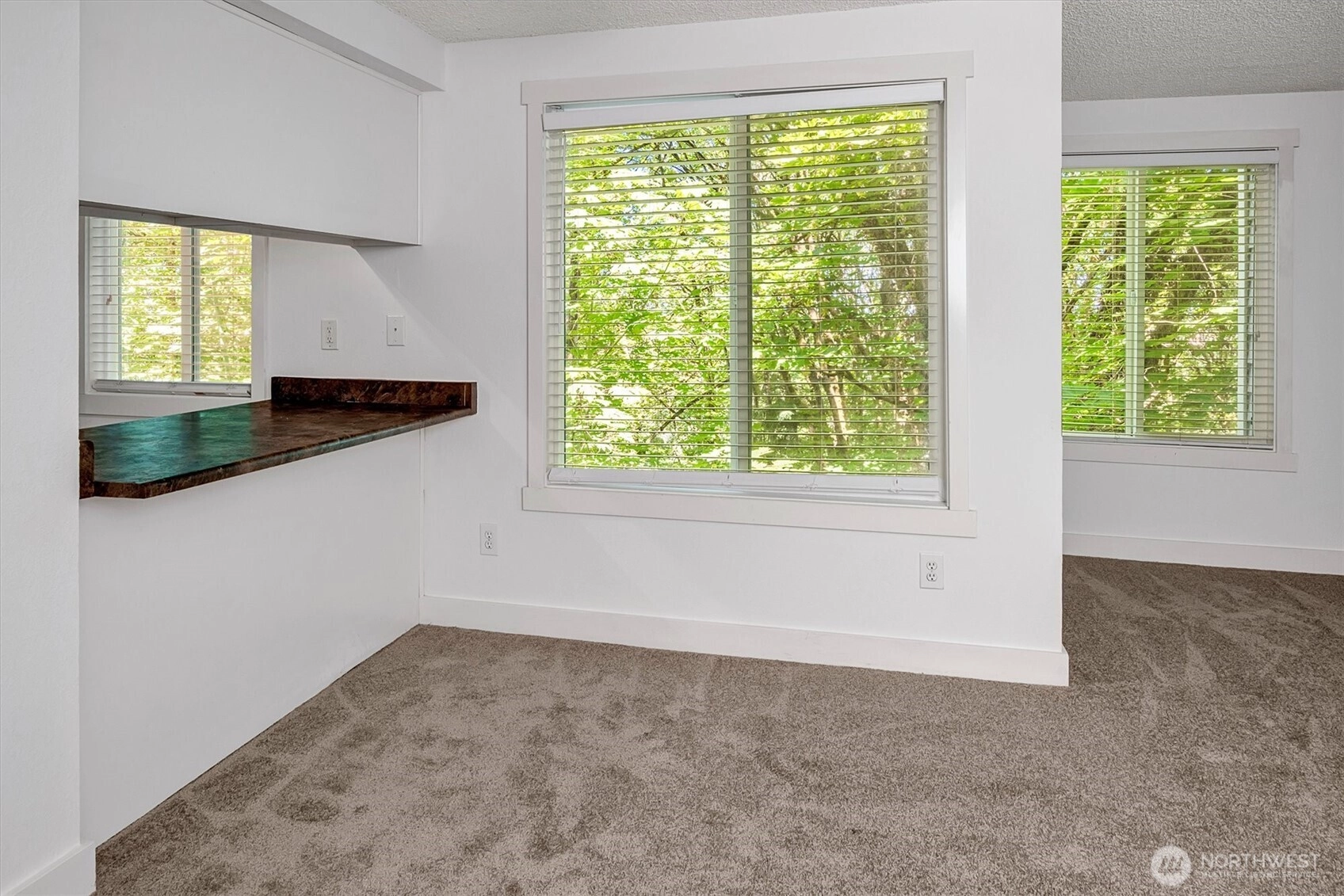 Serene and stylish corner-unit 2 bedroom/2 bath condo in a prime Bellevue location assigned to Newport Senior High! Recently refreshed with new appliances, carpet, and fresh paint, this inviting home offers comfort and convenience in equal measure. Enjoy cozy evenings by the wood-burning fireplace or unwind on your private balcony overlooking the peaceful surroundings. Easy parking and a quiet setting make daily living a breeze. Located near Factoria, Bellevue College, Downtown Bellevue, Amazon, and T-Mobile, and zoned for top-rated Bellevue schools including Newport Senior High. No rental cap—an excellent opportunity for both homeowners and investors! Virtually staged for inspiration.