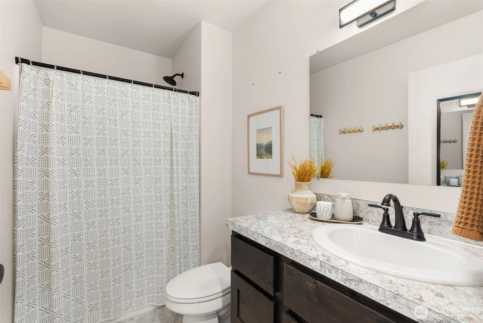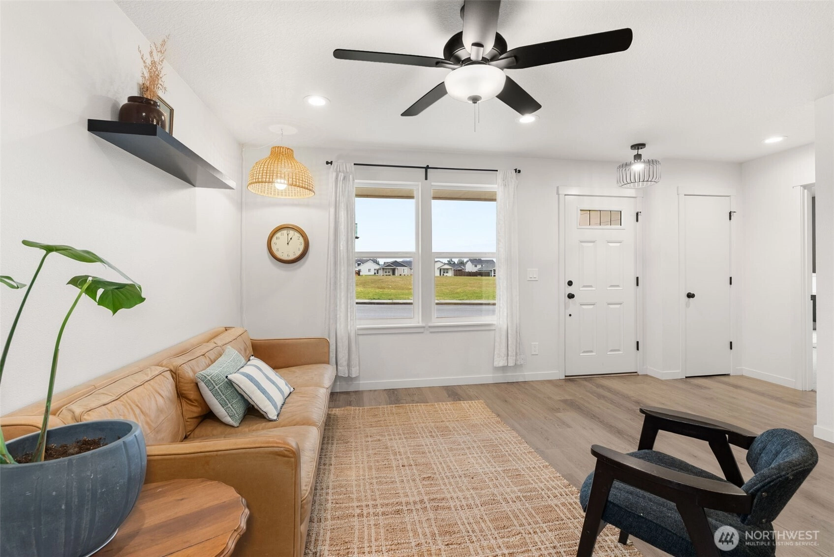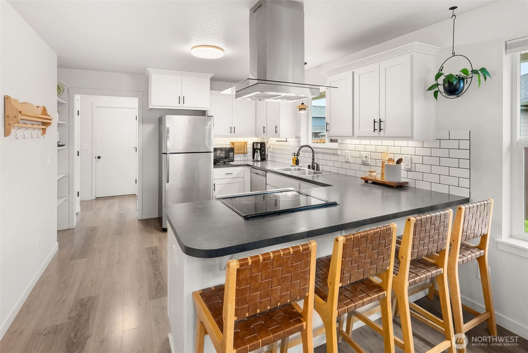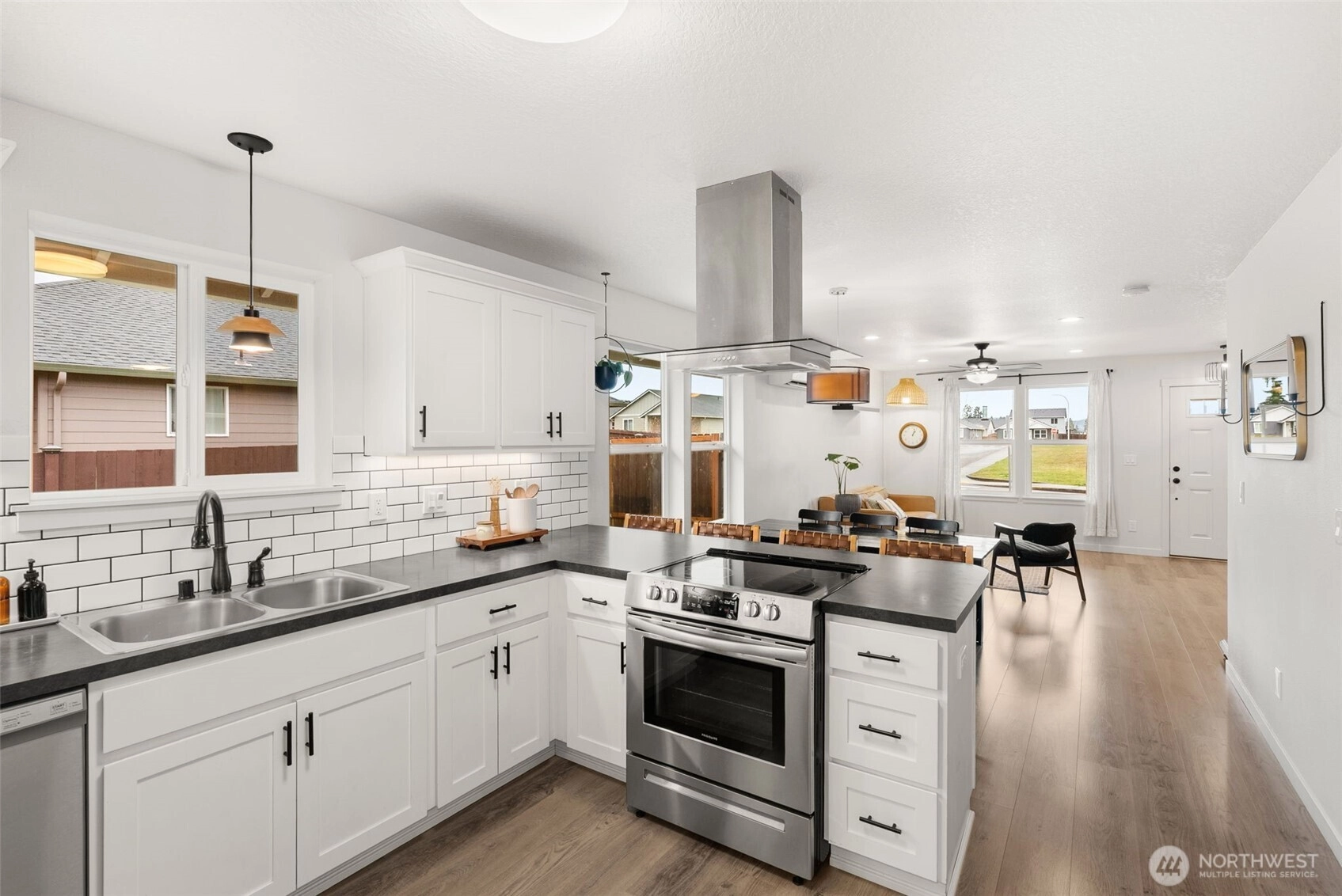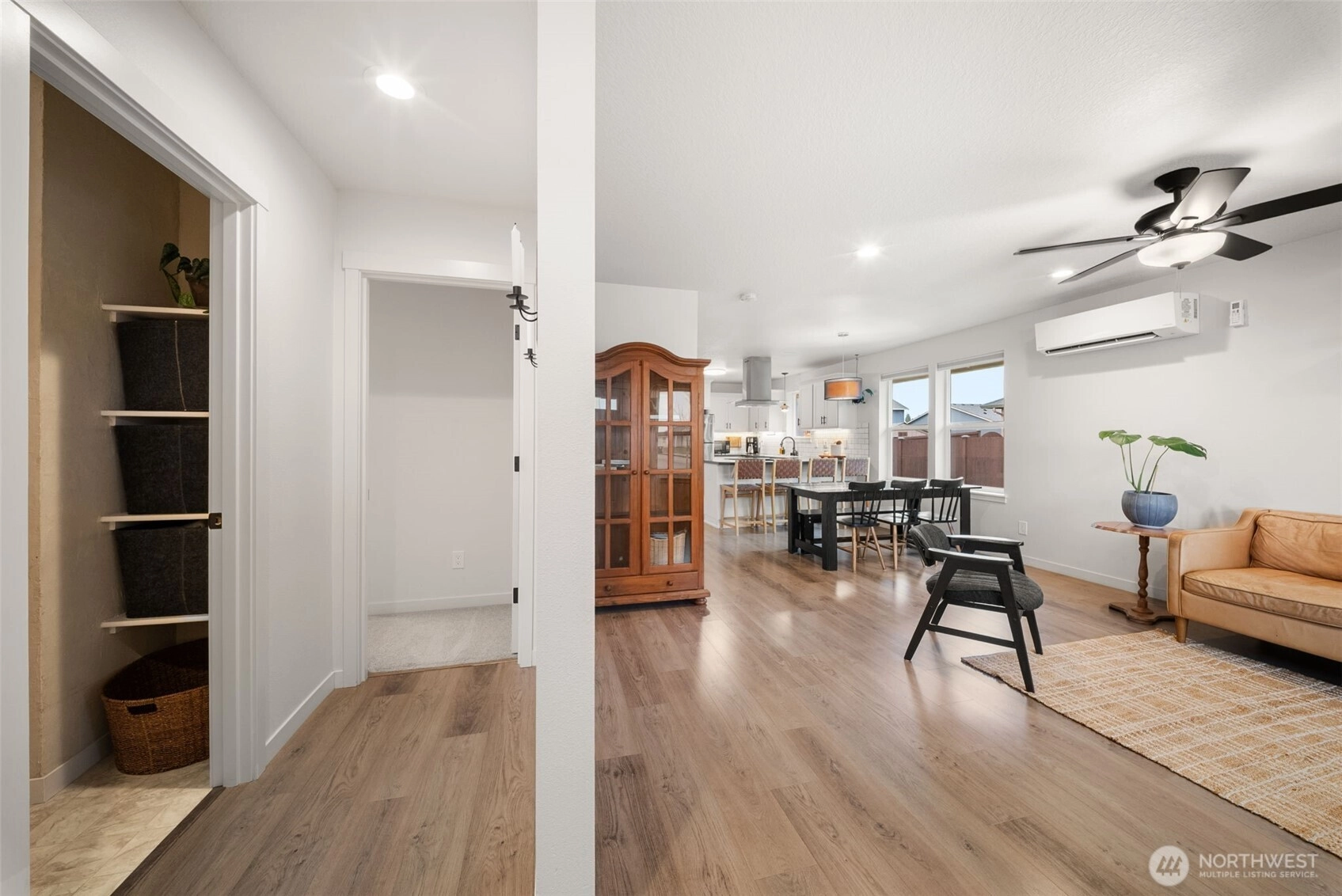 Welcome to this well-maintained 3-bedroom, 2-bath home in desirable Grand Prairie Estates! Offering over 1,200 sq ft of comfortable living space, this home features an open floor plan that feels bright and welcoming. The kitchen is thoughtfully designed with stainless steel appliances, tile backsplash, ample cabinet space, and an eat-at bar—perfect for casual meals or entertaining. Stay comfortable year-round with an energy-efficient heat pump mini-split system providing both heating and cooling. Step outside to a fully fenced yard, ideal for pets, play, or relaxing outdoors. Enjoy the convenience of being directly across the street from a park and just 5 minutes from I-5, making commuting a breeze. A great blend of comfort, efficiency, and location—this home is move-in ready and waiting for you!
