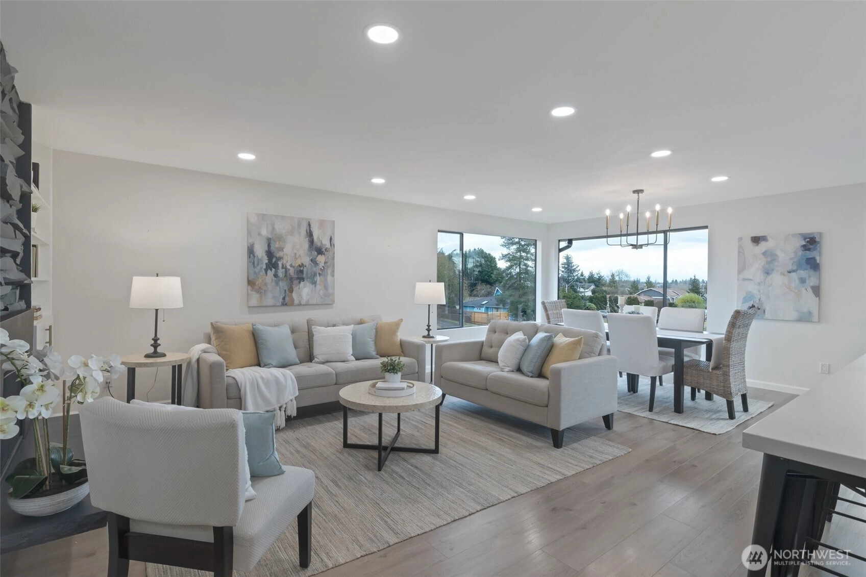 A rare find and must see - a 3255 sqf newly remodeled two story home, with around $90k newly invested to the house, including with a brand new 50-year roof and additional structural supports on a .29 acres lot. Located on a quiet cul-de-sac in an ideally located area of Lynnwood. A 5-minute or less drive can take you to Costco, I-5, highway 99, groceries, restaurants, and Alderwood mall. This large home boasts a view of the cascades, gas fireplace, and open floor plan, as well as 5 spacious bedrooms and 3 full baths. The primary bedroom has walk-in closet, luxurious bathroom, and also attached with spacious sunroom that leads to the backyard. The lower-level bonus room provides a great flex space as well as a large closet for extra storage. Step outside to the deck and enjoy an expansive yard and more NW outdoor living. The two-car garage includes built-in cabinets and EV charging. There is plenty of parking with a wide extended driveway that can fit 4-6 cars and/or possible RV parking.