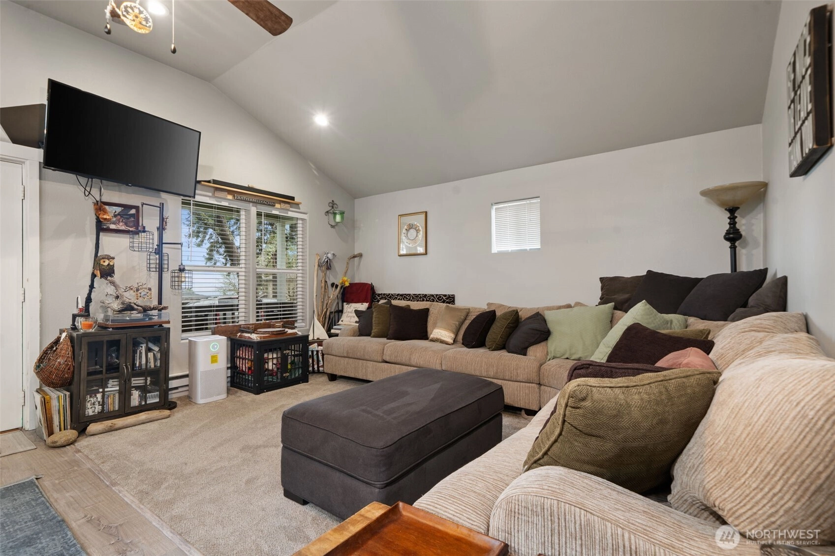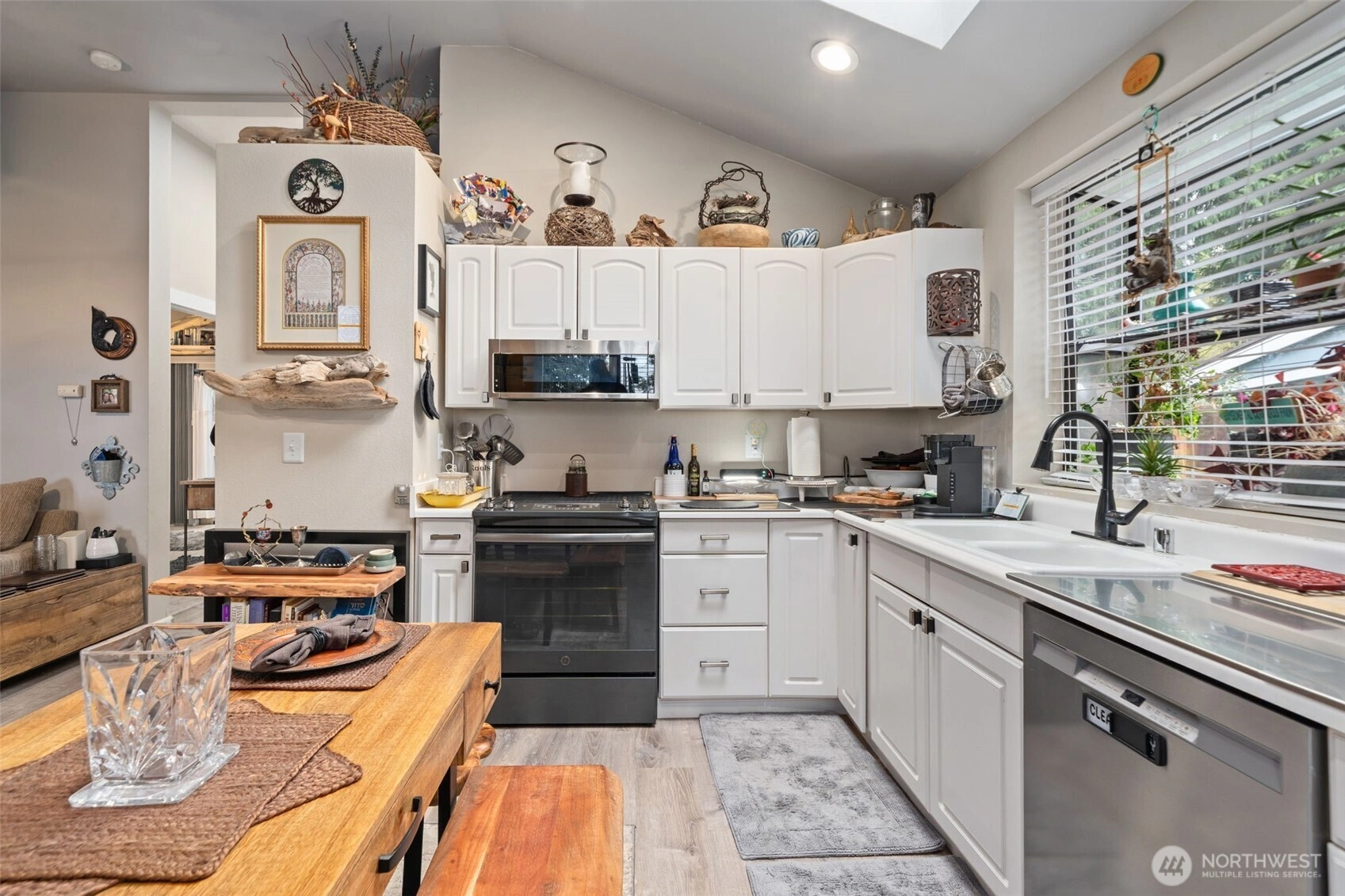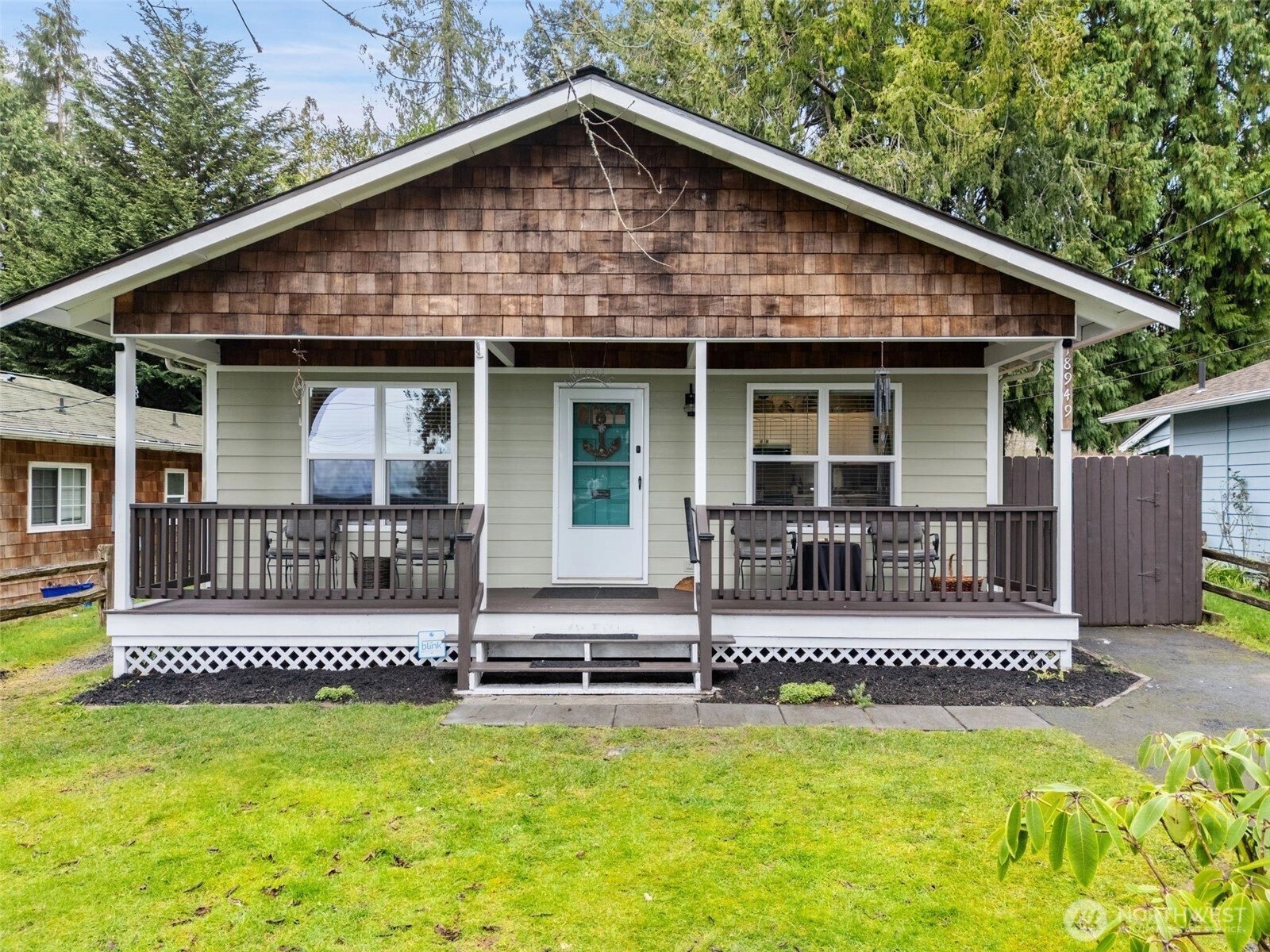 Charming one story home with view of the Sound. Open floor plan, vaulted ceilings, ample kitchen storage, large covered front porch for relaxing. The property includes 400+ sq ft studio that is completely insulated, lighted and heated. This is perfect for game room or home office, the artist or musician. Solar panels on south side of home. New hot water heater tank. New appliances, new paint outside. Conveniently located near Bainbridge Island and Kingston Ferries.