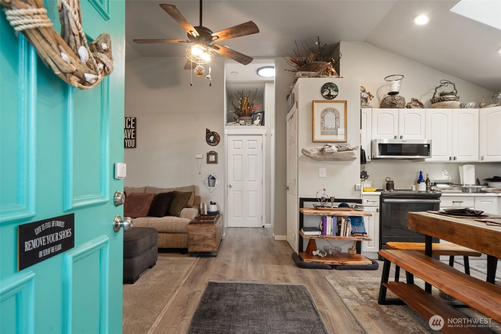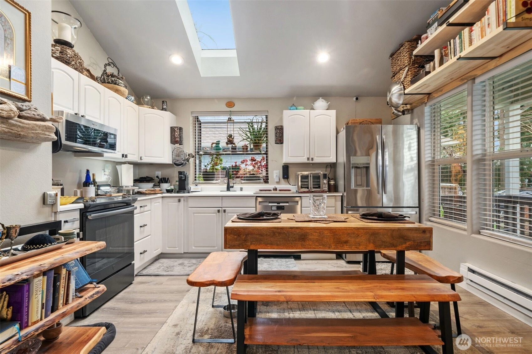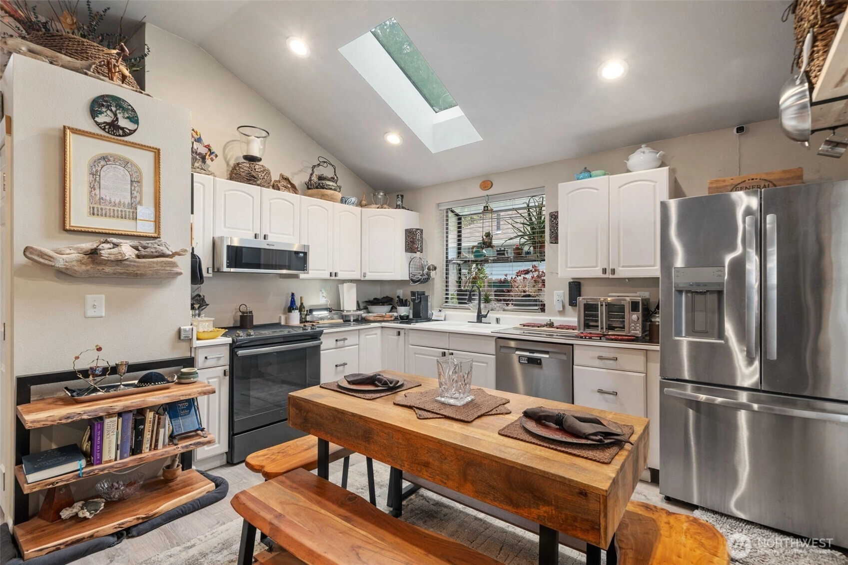 Charming one story home with view of the Sound. Open floor plan, vaulted ceilings, ample kitchen storage, large covered front porch for relaxing. The property includes 400+ sq ft studio that is completely insulated, lighted and heated. This is perfect for game room or home office, the artist or musician. Solar panels on south side of home. New hot water heater tank. New appliances, new paint outside. Conveniently located near Bainbridge Island and Kingston Ferries.