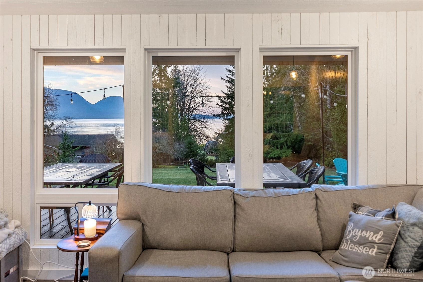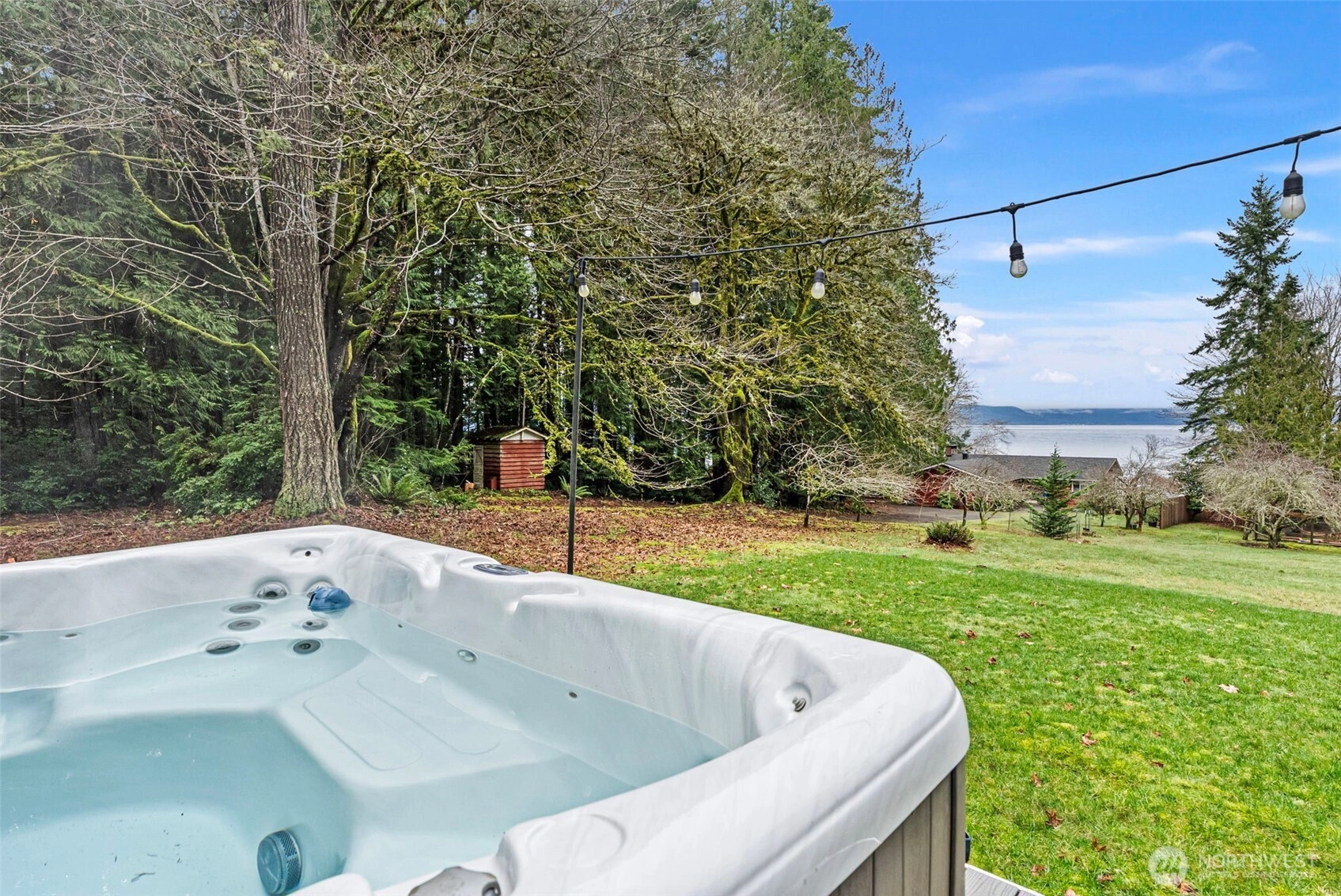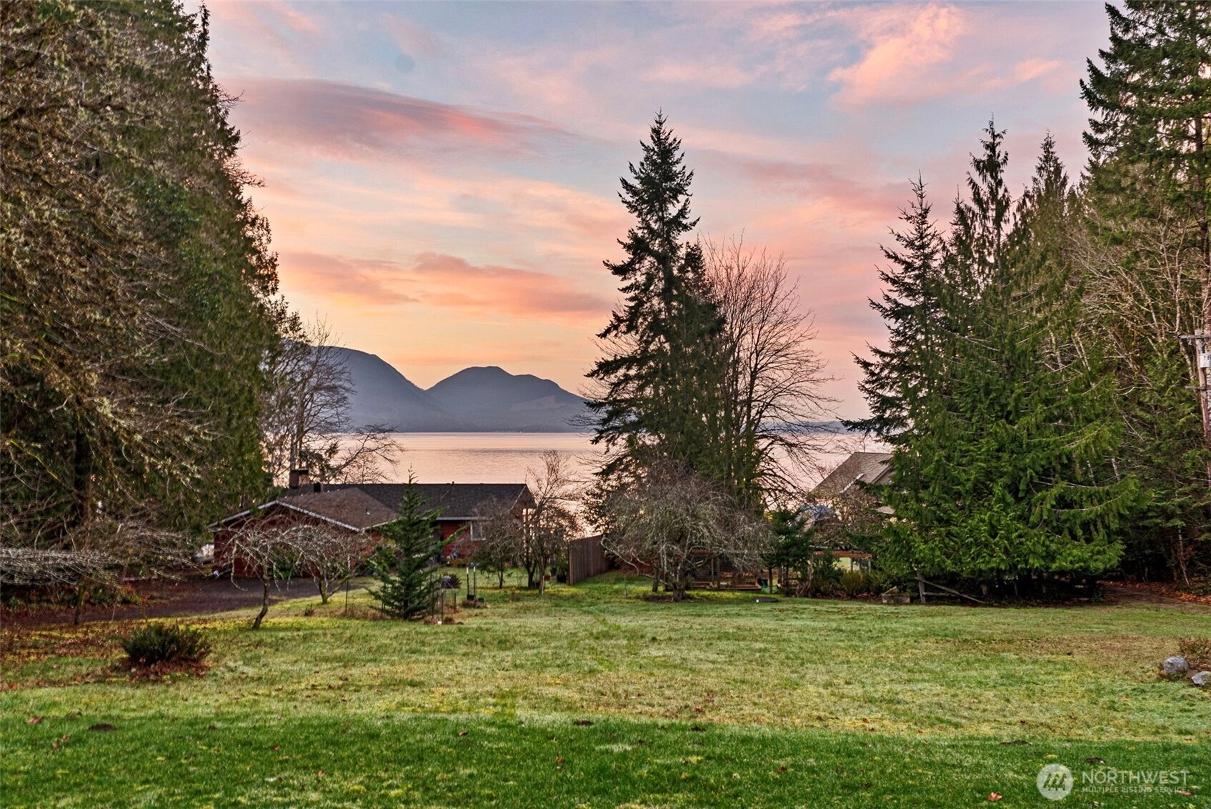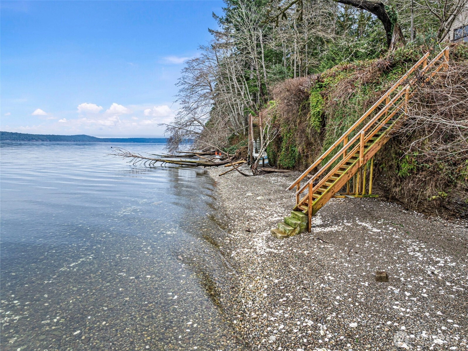 Rare waterfront opportunity offering an increasingly hard-to-find combination of level acreage, single-level living, and private beach access. Come check out this thoughtfully maintained 3 bed/1.5 bath rambler on a level .7-acre setting with sweeping Hood Canal and mountain views—where quiet mornings, beach walks, and sunset evenings feel timeless. Enjoy 12 ft of deeded private beachfront with tideland rights, accessed via a rare flag-shaped parcel with a private beach corridor and recently repaired private stairs. Backing to Scenic Beach State Park for permanent open space and trail access. Thoughtfully maintained with numerous updates, including a brand-new HVAC system, 50-year roof (2014), wood-burning fireplace, hot tub, 2-car garage plus covered carport, enclosed gardens, firepit and generous grounds for ample parking, ideal for gatherings, games, and making lasting memories.