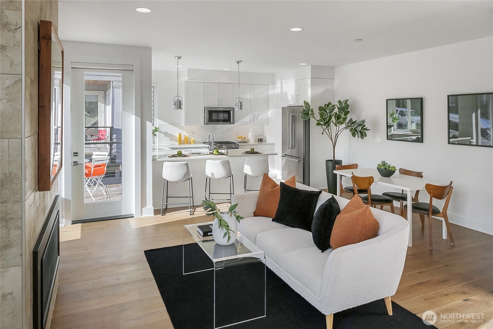 Sophisticated downtown Kirkland townhome in the sought-after City 12 community, offering refined, low-maintenance, lock-and-leave living in a premier location. Built in 2018 and meticulously maintained by the original owner, this 2-bedroom, 2.25-bath residence is filled with natural light on every level, giving the home a bright, polished feel throughout the day. The well-designed main living level features clean architectural lines and contemporary finishes, with a balcony off the kitchen—ideal for morning coffee or dining al fresco. Hunter Douglas motorized window blinds add everyday convenience and a refined aesthetic. The primary suite includes a well-appointed bath and generous closet space. Energy-efficient mini-split systems provide year-round comfort and flexibility. Attached two-car garage. HOA dues are notably competitive compared to other downtown Kirkland townhomes, supporting long-term value. Ideal for buyers who value efficiency, simplicity, and ease—whether commuting, traveling, or enjoying weekends away. Conveniently located near Kirkland Urban, the Google Campus, nearby beaches, dining, shopping, and the amenities of downtown Kirkland—an exceptional turnkey opportunity in one of the Eastside’s most competitive markets.