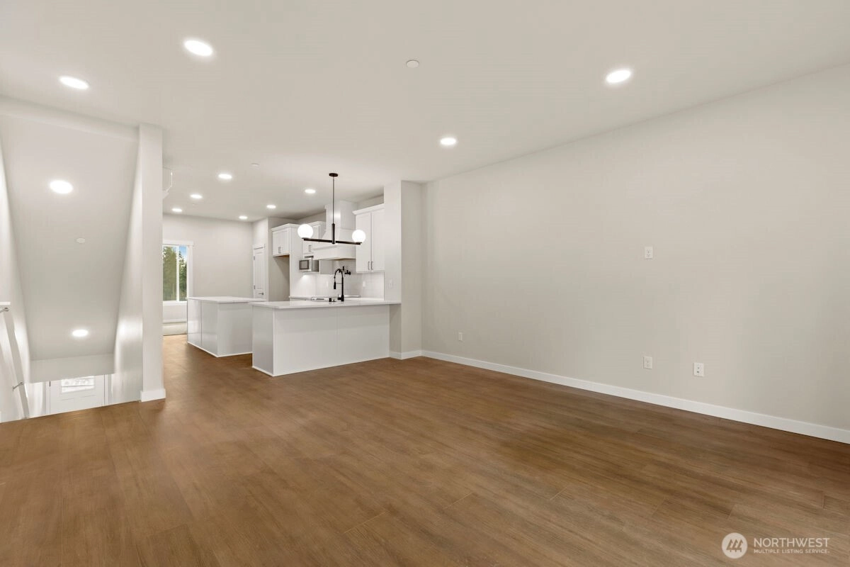 Welcome to Harmony Village, where modern design meets everyday comfort. This new construction interior townhome, featuring the Atlanta floorplan that offers 1735 sqft of living space with stylish finishes throughout. The open-concept main level is anchored by a stunning kitchen showcasing quartz slab countertops, a statement tile backsplash, and stainless steel appliances. Home chefs will appreciate the gourmet hood vent and convenient pot-filler, adding both function and flair. Gorgeous laminate hardwood flooring flows seamlessly through the living areas, creating a warm and contemporary feel. Designed with efficiency in mind, the home is equipped with ductless mini-split systems for personalized climate control, complemented by supplemental electric wall heat. A high-efficiency heat pump water heater ensures energy savings without sacrificing performance. Well-appointed bedrooms and bathrooms provide comfortable retreats, while the intelligent layout maximizes usable square footage for modern living. Every detail reflects quality craftsmanship and low-maintenance living—perfect for today’s lifestyle. Builder is currently offering a 4.99% fixed interest rate at no cost to the buyer when financing through the builder’s preferred lender, making this an exceptional opportunity to own brand-new construction with long-term affordability. Located within the vibrant Harmony Village community, this townhome blends smart design, energy efficiency, and upscale finishes into a home.