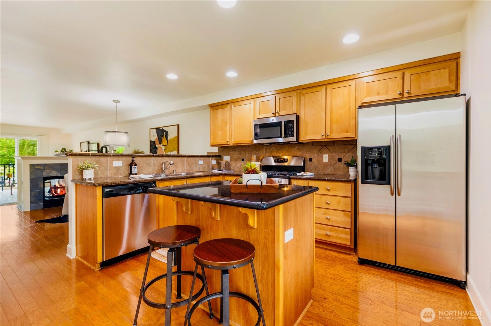 Welcome home to Sylvan Ridge in West Seattle! This San Francisco style townhome has been refreshed with new carpets and paint, offering an open living space including a designated dining area and cozy dual sided gas fireplace. Kitchen features SS appliances, island with extra storage and bar top seating. The two top floor bedrooms are spacious and light filled with vaulted ceilings, plenty of closet space and equipped with their own full bathrooms. Flexible bonus nook on top floor can function as a work station, workout or comfy reading space. Tandem 2 car garage plus large driveway allows for ample parking, plenty of storage, or even an option for a future 3rd bedroom or den addition. Low HOA dues cover roof, exterior paint, grounds maintenance, irrigation and community insurance policy. Centrally situated in the High Point neighborhood and minutes from the Morgan and Alaska Junctions, Lincoln Park, WS bridge and freeways.
