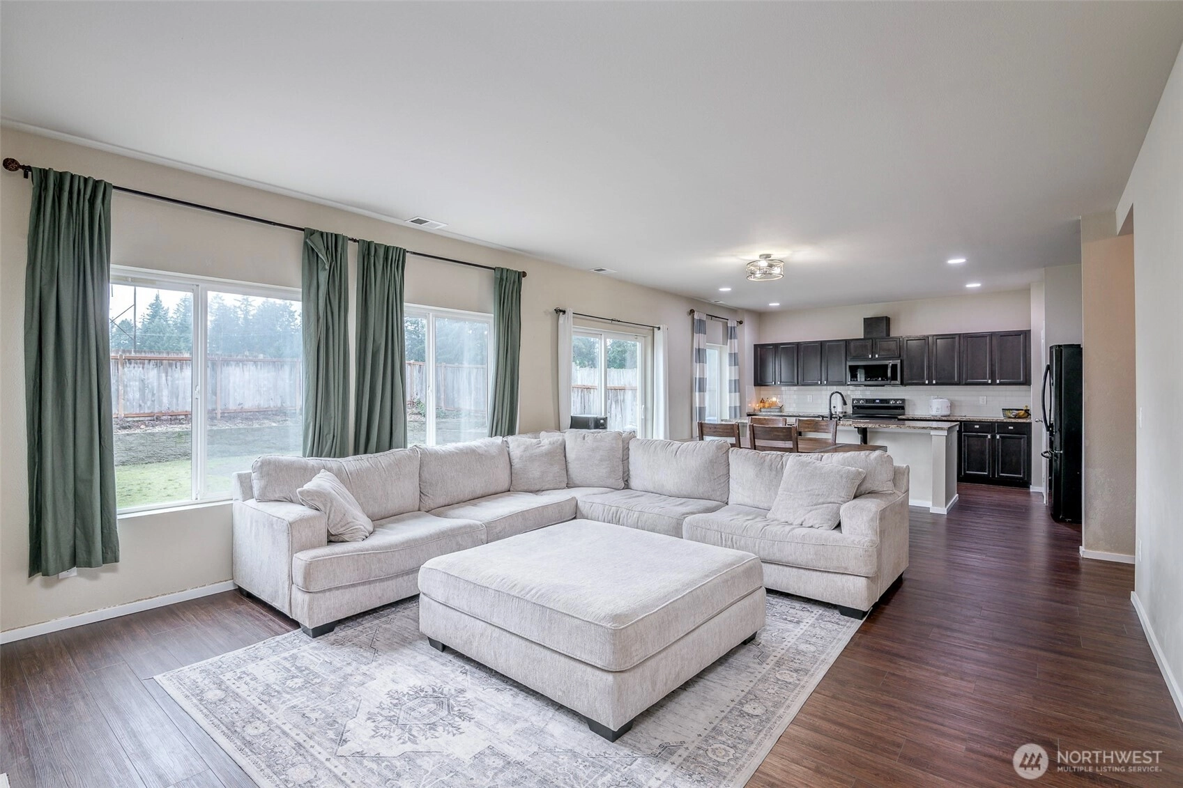 Well-designed newer construction, offered by the original owners. Built in 2016, this approximately 2,500 SqFt home sits on a 8,000 SqFt lot at the end of a quiet cul-de-sac with no neighbors to the east. Large 790 SqFt three-car garage, plus an oversized driveway provide plenty of room for parking, storage, or toys. The main floor features a functional open-concept layout connecting the living room, dining area, and kitchen—ideal for everyday living and gatherings. A true bedroom on the main level is a standout feature, perfect for guests, a home office, or multi-generational living, along with a convenient half bath. Upstairs, the spacious primary suite includes vaulted ceilings, a full five-piece ensuite bath, and an impressively large walk-in closet. Three additional bedrooms, a full bathroom, and a dedicated laundry room complete the upper level. AC Mini Splits added post construction on both levels. The fully fenced backyard includes a retaining wall, a large concrete patio, and pre-installed brackets for a future patio cover—ready for someone to make it their own. Location is a major highlight: tucked away with no through traffic, yet just minutes from Canyon Road and Military Road for easy commuting. Shopping, dining, and daily conveniences are close by, and Cross Park and the Naches Trail Preserve sit directly across the street, providing immediate access to outdoor space and walking trails. Solid home with great bones, a smart floor plan, and an excellent location!