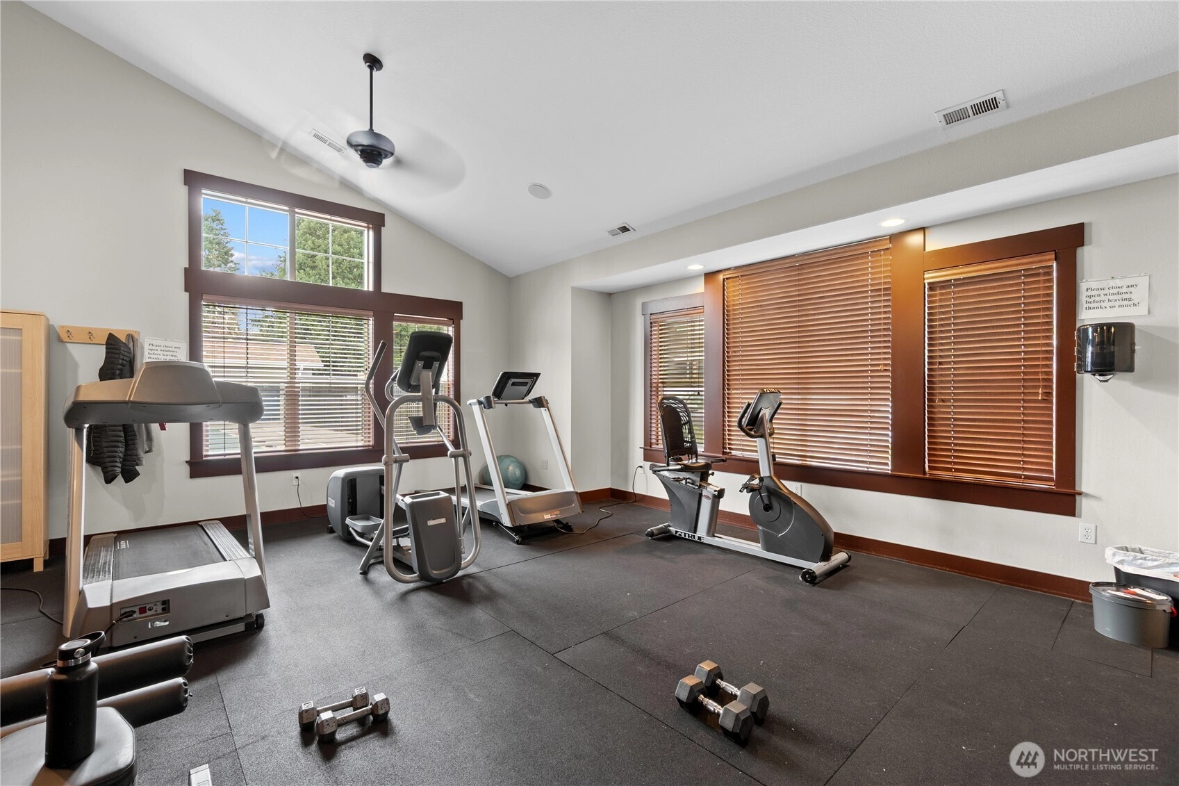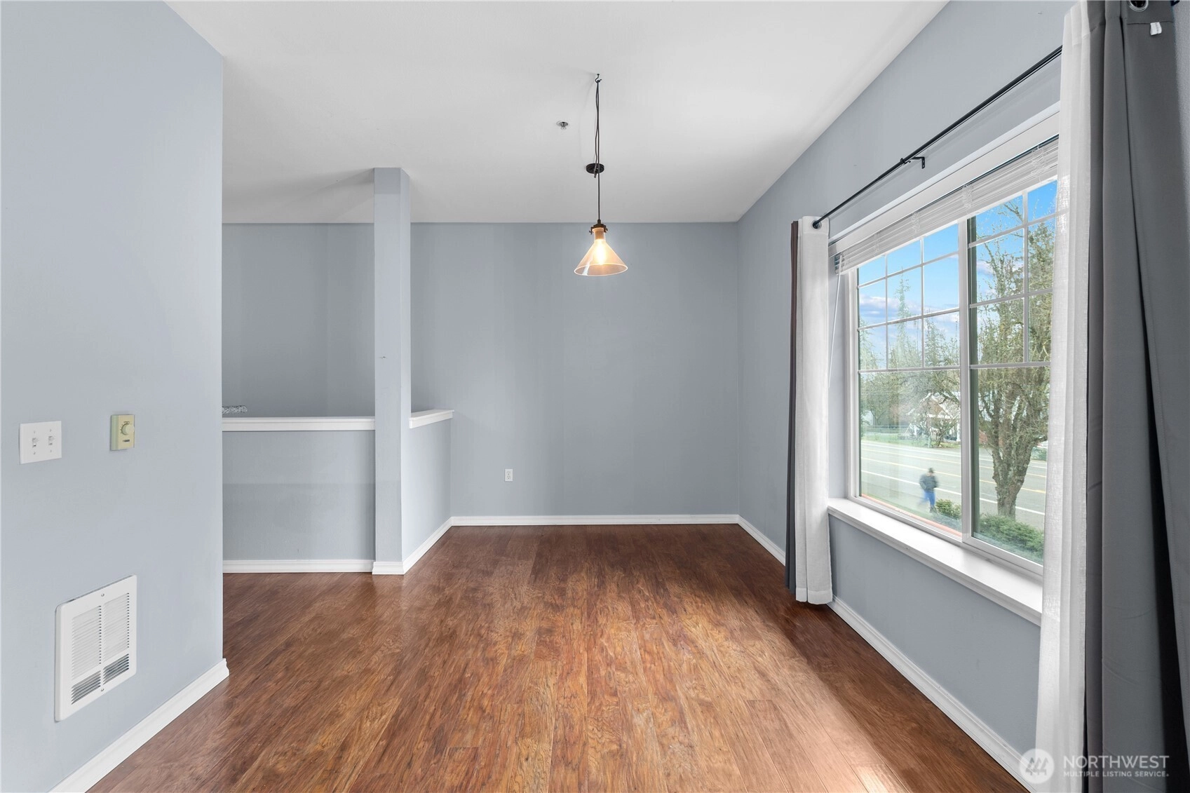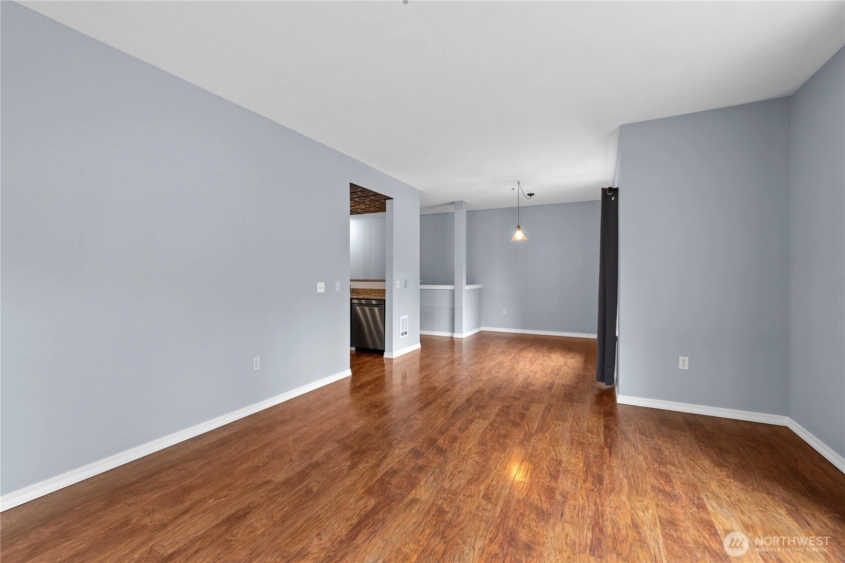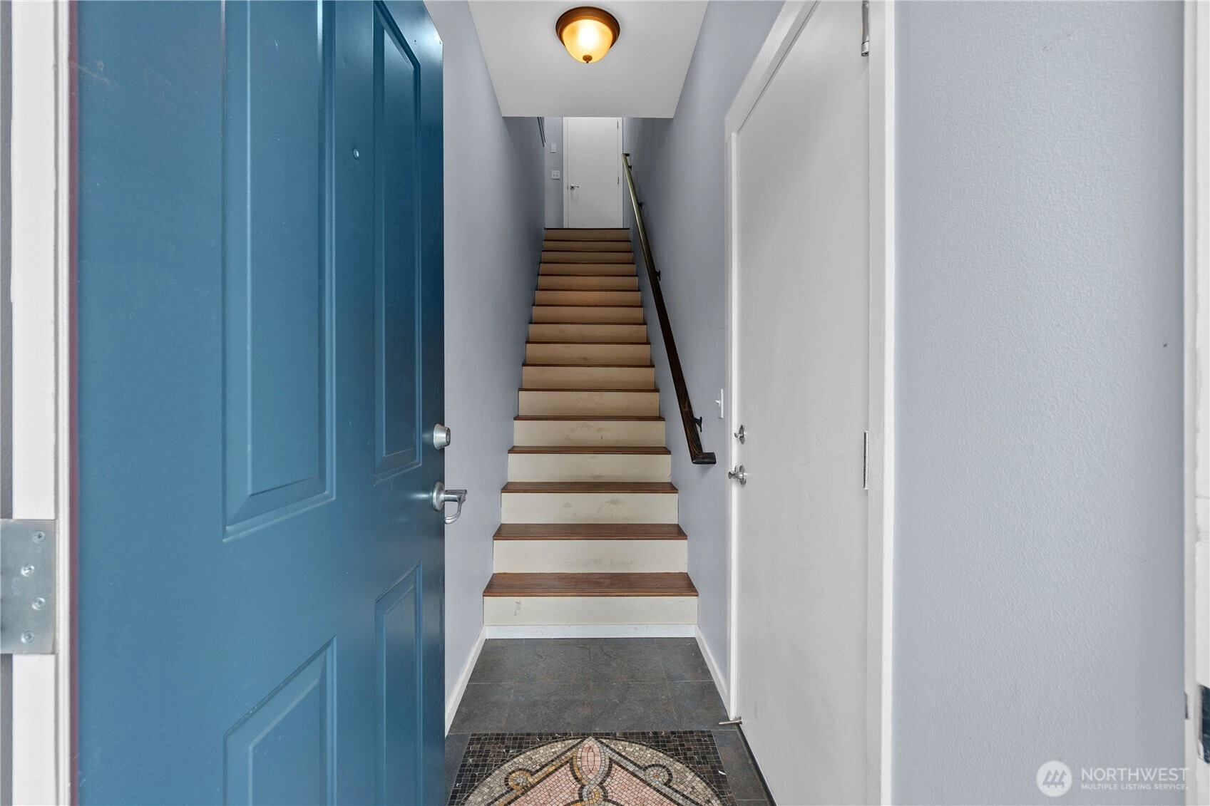 Bright upper-level 2-bedroom condo in Ellsworth on the Park! Spacious unit with tall ceilings and direct access to private garage below. A charming entry with designer mosaic tile leads upstairs to a warm, open layout accented by wood style floors. The kitchen features granite counters and a distinctive copper tiled ceiling. The living room’s gas fireplace creates a cozy atmosphere, and the covered deck is perfect for extended seasons. A rustic barn door adds a touch of personality and style while conveniently hiding the in-unit washer/dryer. The community clubhouse and pool sit conveniently just across from the building. Quick connections to both I-5 and I-205 from this stellar location.