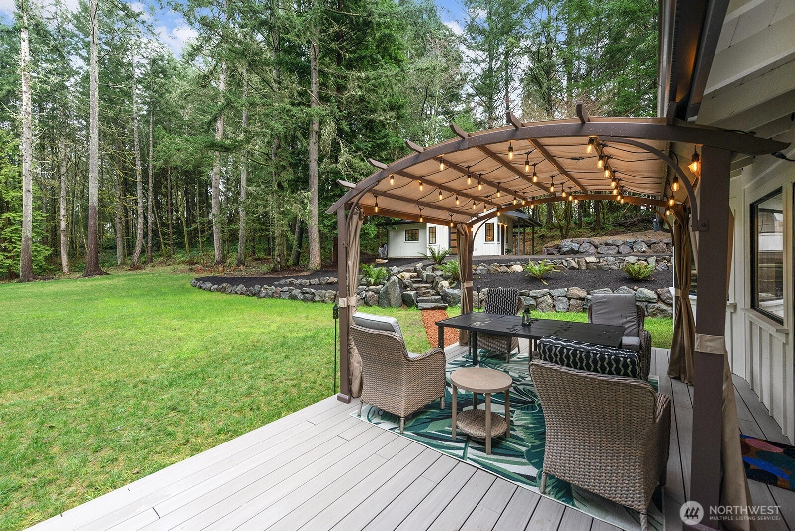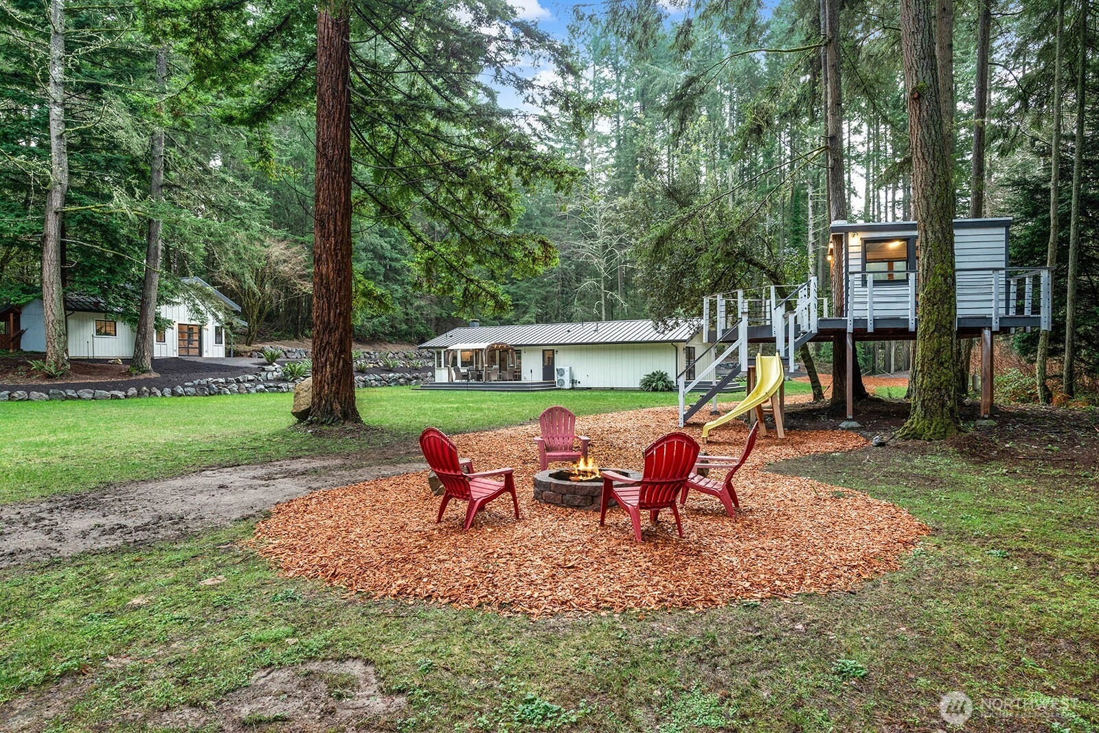 Tucked behind a private tree-lined drive, this turn-key, one-level home offers the rare combination of style, privacy and proximity that truly sets it apart. Set in the very heart of a shy five-acre, level parcel wrapped in towering firs and open to the sky, this mid-isle classic is just minutes from town and Lisabuela Beach Preserve Park. Completely renovated in 2024, the light-filled 3-bedroom, 2-bath home blends quality finishes with understated sophistication where crisp white interiors create a timeless backdrop for stylish design. Designed for all stages of life and seamless indoor/outdoor living, the home opens to two expansive Trex decks overlooking an impressive mix of manicured lawn and hardscape—perfect for entertaining under the Pergola or relaxing from the primary bedroom. The grounds invite breathing room to roam and explore while the treehouse beckons imagination and joy for all ages. Owners and guests alike will enjoy views of the expansive lawn from the glass-doored, accessory building which offers great flexibility and privacy as an office, studio or guest quarters—a perfect retreat for restoration while also offering expansion of the home’s versatility. Outdoor enthusiasts will appreciate nearby Paradise Ridge Equestrian Park and the Judd Creek Loop Trail, while daily Island life is enriched by four charming farm stands all within a half mile. Island living at its most peaceful and practical—where privacy, perfection, and connection to nature come home.