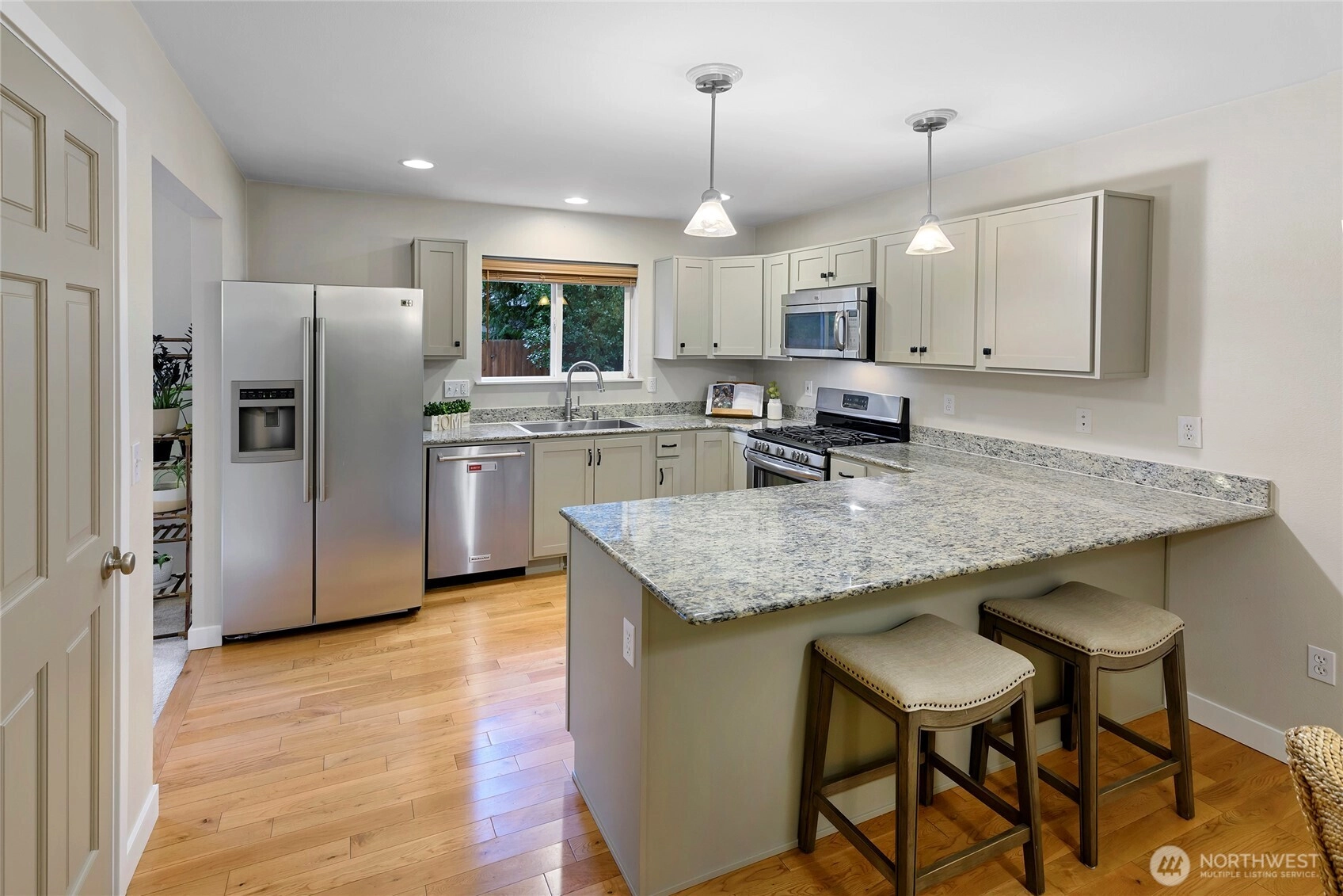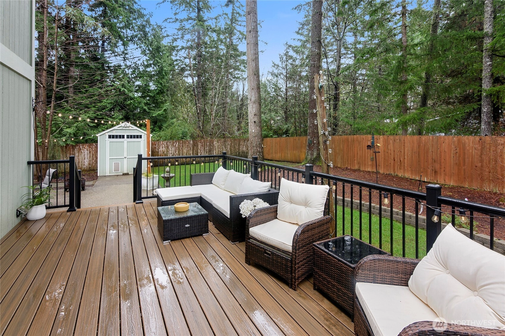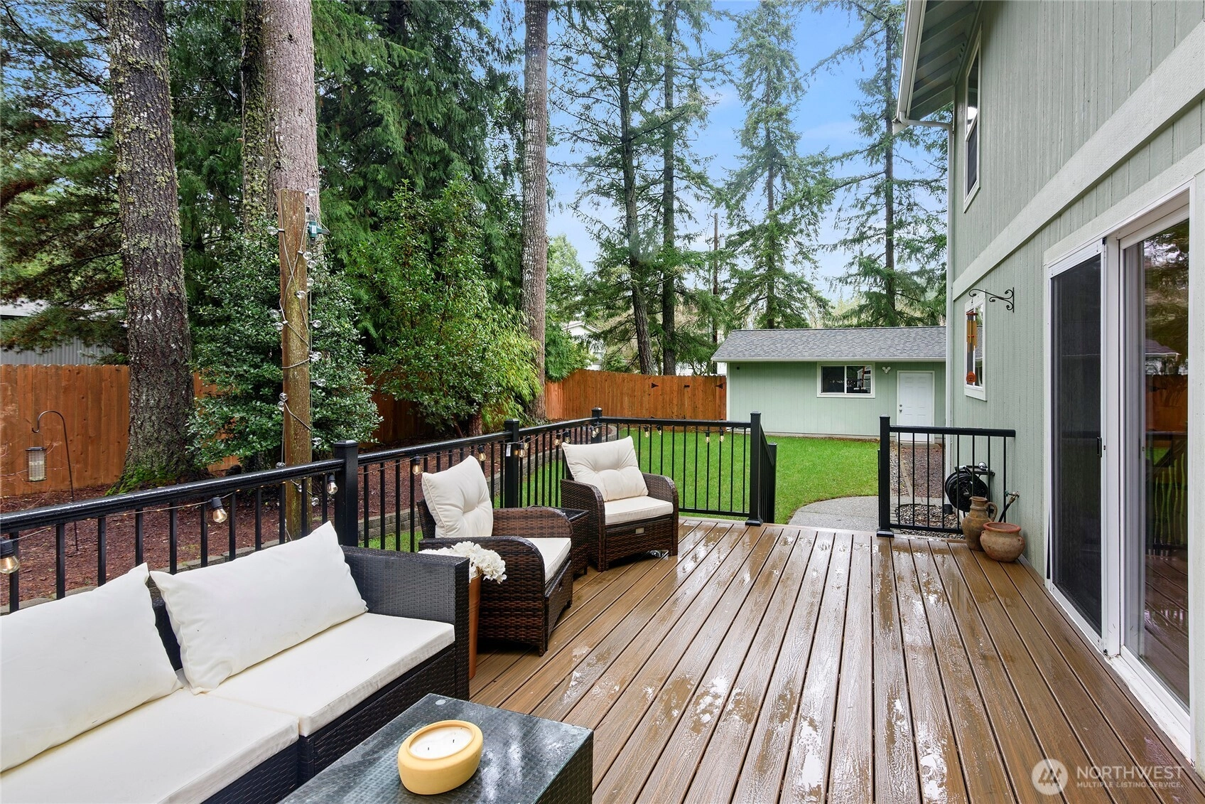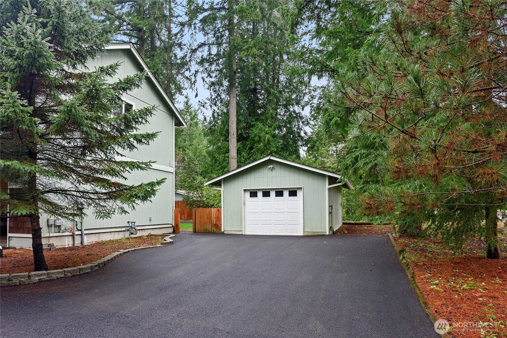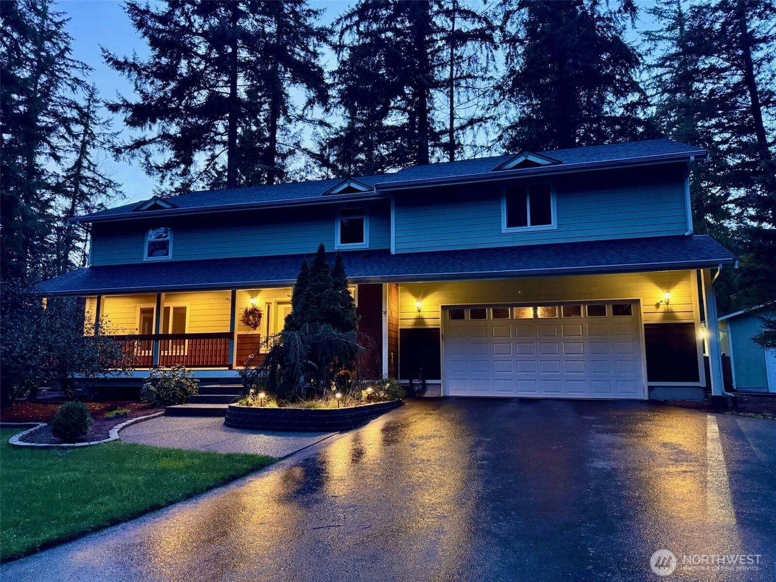 Welcome home to this remarkably well-maintained home set on a spacious 0.55-acre lot in Central Kitsap, offering a blend of privacy and convenience just minutes from schools, Bangor Navy base, shopping, restaurants and gas stations. Surrounded by mature trees and landscaping, the property provides a peaceful, country-like setting. A dual-entry driveway providing ample off-street parking and both attached and detached garages. The detached garage features shop lighting and additional workspace, while the fully fenced backyard offers multiple access points, RV power, and versatile areas for outdoor entertaining. A covered front porch leads into the entry and living room, highlighted by a gas fireplace and semi-open living and dining spaces ideal for gatherings. The kitchen includes slab granite countertops, beautiful custom cabinetry, maple flooring, and a generous eating area. The dining room opens to a newer composite deck with aluminum railings, dual stair access, and an adjacent patio for outdoor enjoyment. Upstairs features a primary bedroom with en suite bath, dual vanity, and soaking tub, along with ceiling fans, faux wood blinds, and fresh interior paint. A standout bonus room with vaulted ceilings provides flexible space suitable for a variety of uses. Numerous updates have been completed in recent years, enhancing comfort, functionality, and overall appeal. This is the home you've been waiting for!