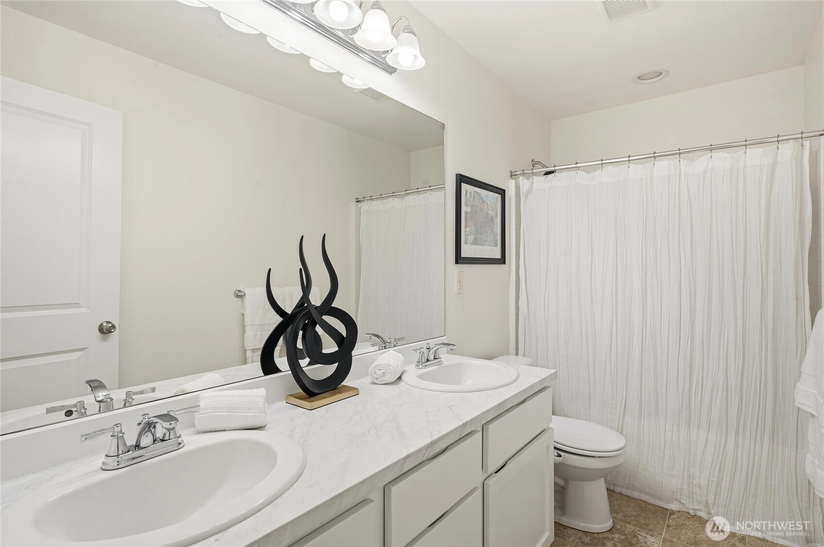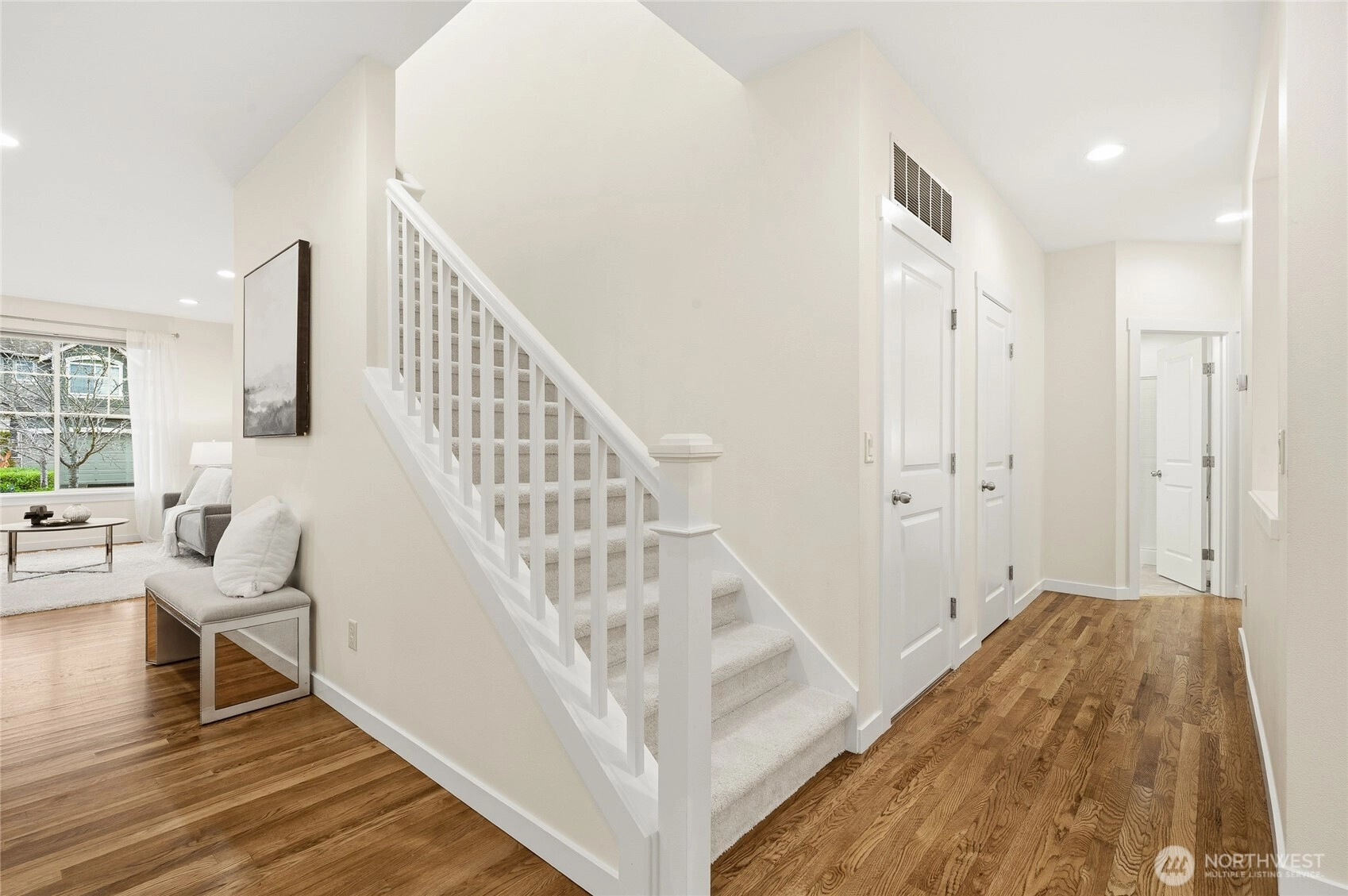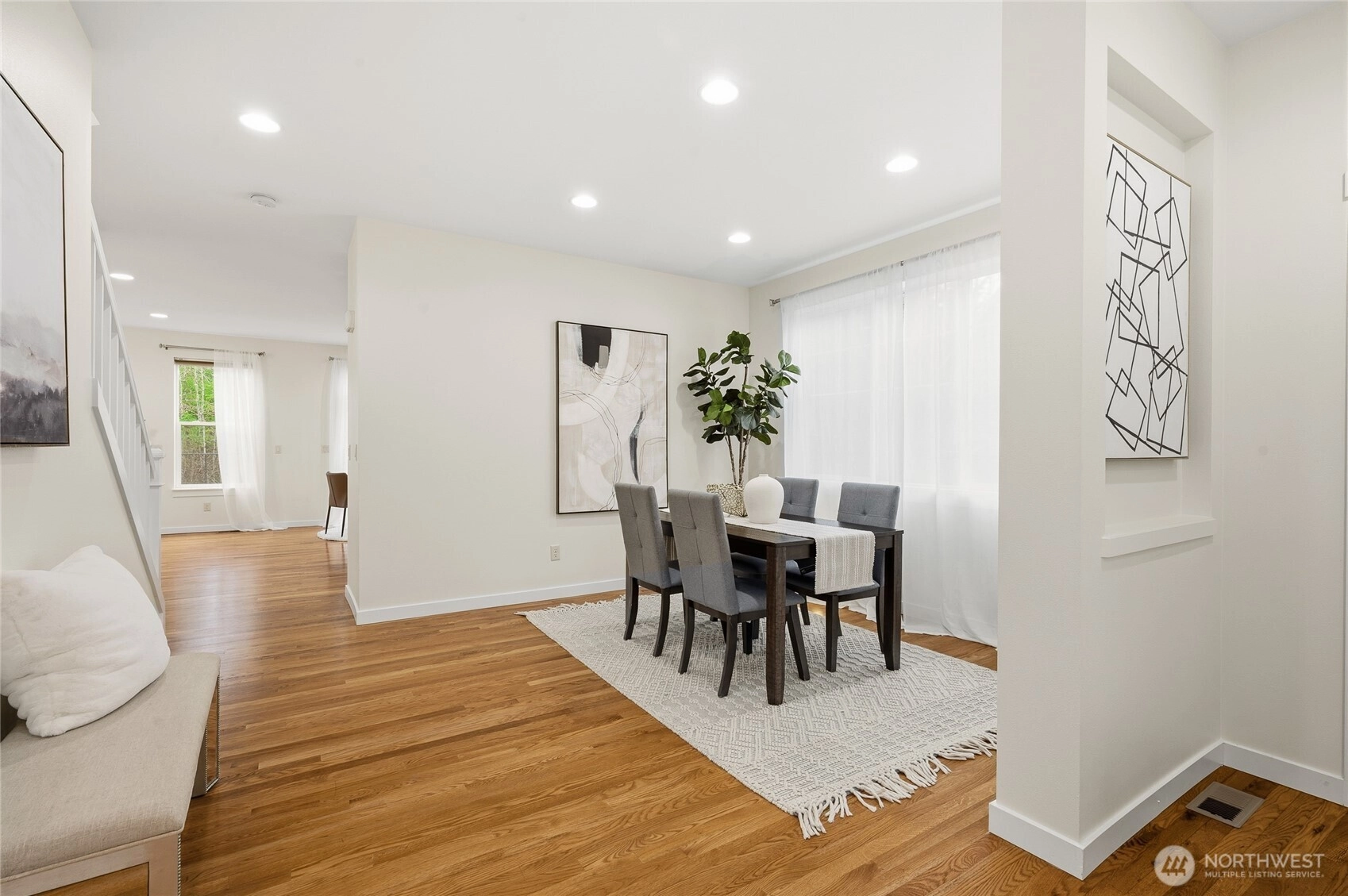 Space, Style & Community in Redmond Ridge East! Experience elevated living in this beautifully curated Murray Franklyn home, where timeless design meets modern comfort. With 5 bedrooms, 2.75 baths, and 2,856 sq ft, the thoughtful layout offers flexibility, including a desirable main-level bedroom with adjacent ¾ bath that is ideal for guests or multi-generational living. Rich hardwoods set the tone on the main floor, complemented by elegant formal living and dining rooms. The remodeled kitchen features a large center island, crisp white cabinetry, stainless steel appliances, a 5-burner gas range, and full-height backsplash, all flowing seamlessly into the inviting family room with a cozy gas fireplace. A generous covered wrap-around porch creates the perfect backdrop for morning coffee, or entertaining year-round. Upstairs, retreat to the oversized primary suite with spa-inspired bath, dual vanities, soaking tub, step-in shower, and huge walk-in closet. Additional bedrooms, each with walk-in closets, plus a spacious laundry room and versatile rec or media room complete the upper level. Enjoy modern conveniences and upgrades including brand new carpet, central A/C, EV charger, and a rare 3-car side-by-side garage. Step outside to a low maintenance fully fenced yard. Set within the Lake Washington School District and surrounded by parks, trails, sport courts, dog park, and vibrant community events, this home offers a truly polished Redmond Ridge lifestyle.