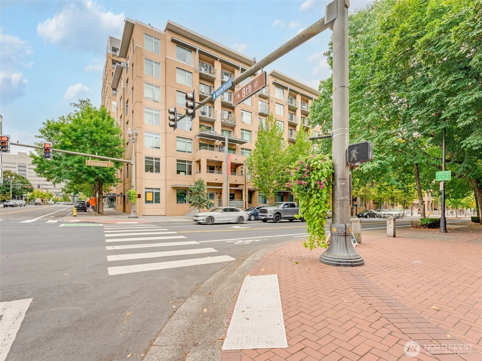 This beautifully upgraded 2-bed, 2-bath condo is ideally located in the heart of Vancouver, WA, just steps from the lively Terminal 1 development located on the Vancouver Waterfront, & across from Esther Short Park. Perfect urban retreat---lots of dining, shopping, & entertainment options. The kitchen has quartz countertops, new stainless steel appliances, & elegant LVP flooring. The living room & main bedroom open onto private balcony decks with courtyard views. The primary bathroom features modern subway tiles, while custom closet storage maximizes space. Natural light floods the condo, creating a bright & welcoming atmosphere. Convenient access to I-5 & WA-14 makes commuting a breeze.