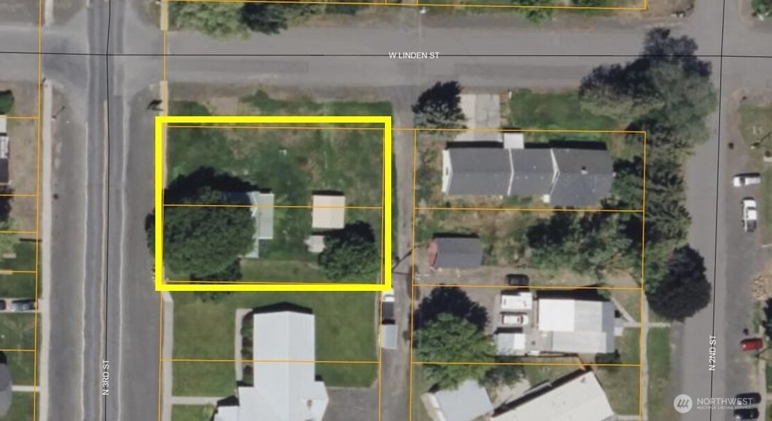 Fixer opportunity. This house has so much potential. Sitting on an oversized corner lot, the house offers 2 bedrooms, an open layout for the kitchen, dining and living area. Main level has one bedroom and full bathroom with an additional bedroom on the 2nd level. From the kitchen there is a generous sized laundry area leading to a covered back porch. The partial basement in accessed off the covered porch. The lot offers plenty of room to add a shop.