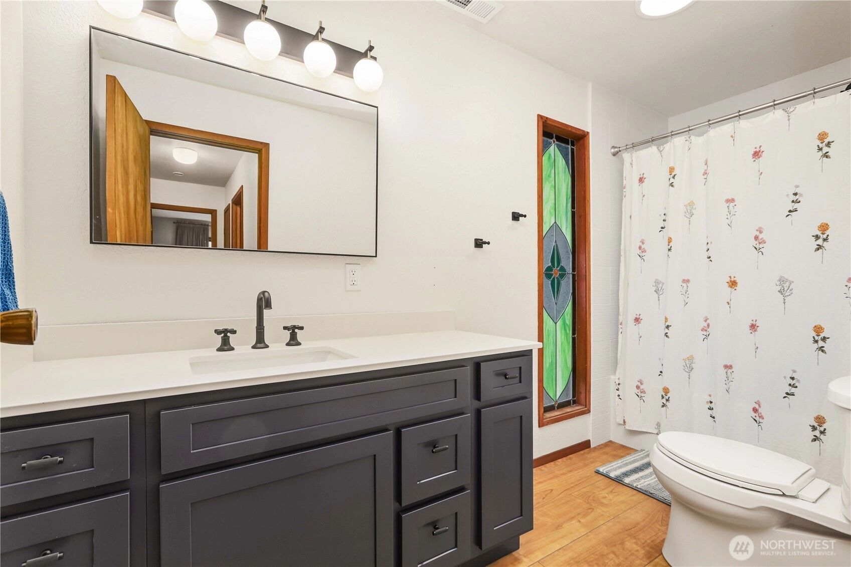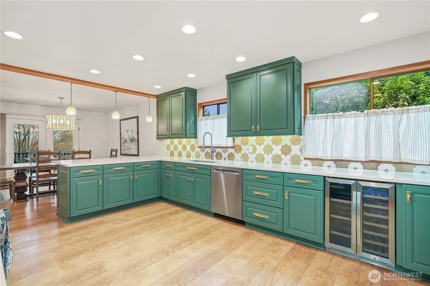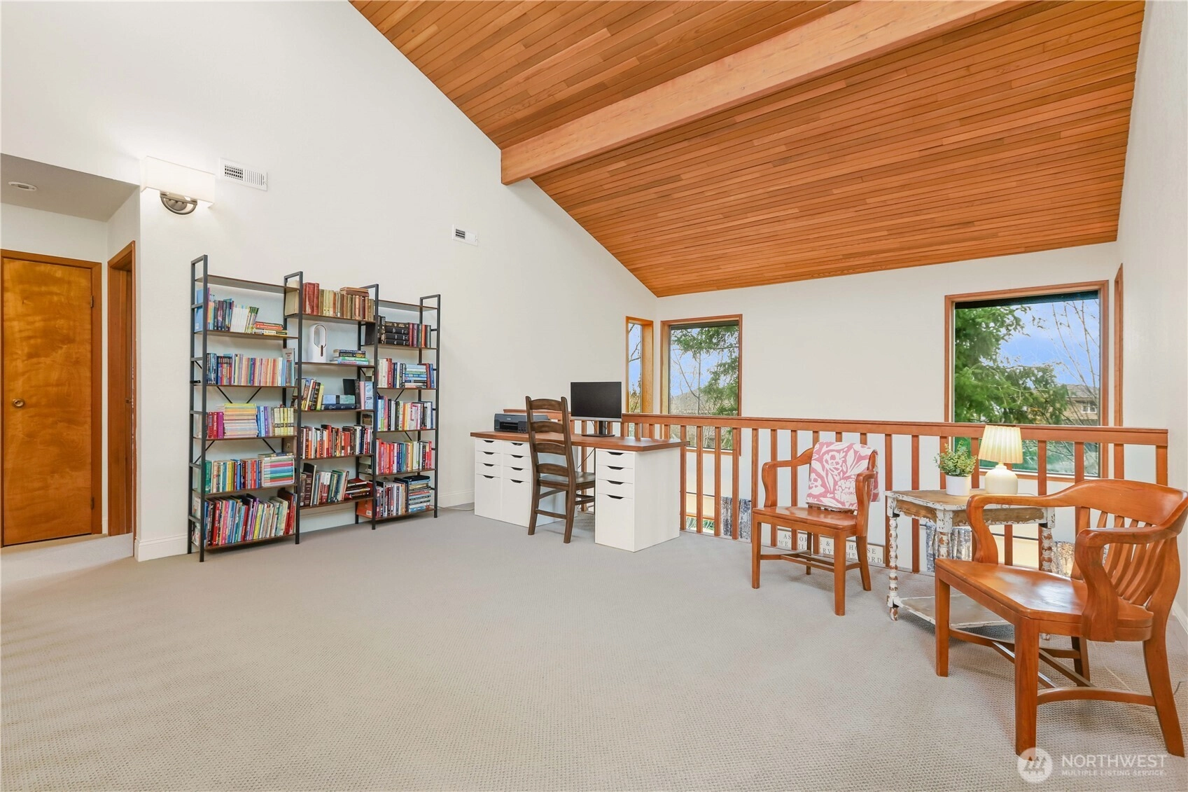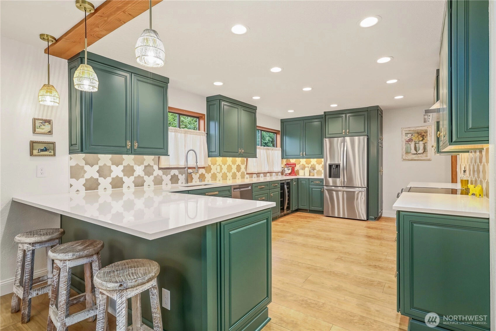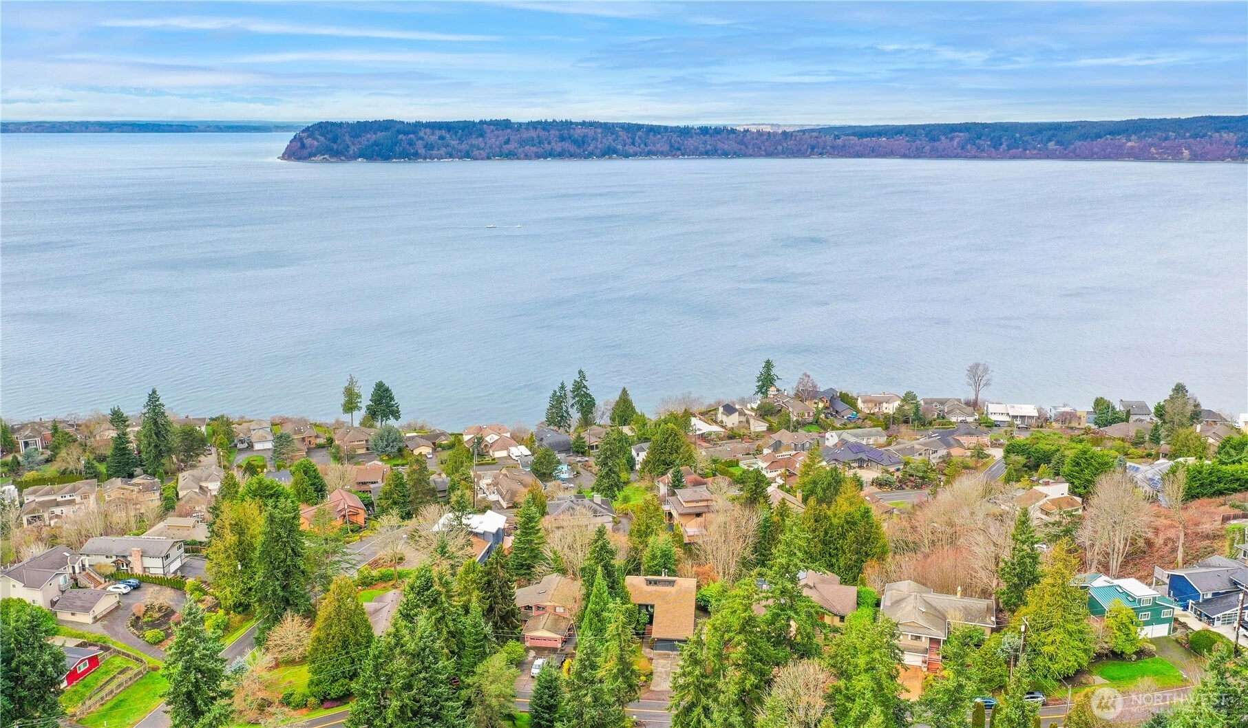 Architecturally distinctive and beautifully reimagined, this Harbour Pointe home blends Northwest character with modern comfort on a generous 1/3-acre lot in the desirable Chennault Beach neighborhood. Vaulted ceilings and expansive picture windows create volume and flood the home with natural light. The fully remodeled kitchen is both stylish and functional with a walk-in pantry, custom cabinetry, quartz countertops, stainless steel appliances, and wine fridge. The main-level primary suite offers convenience and includes two closets and an updated bath with double vanity, quartz countertops and a tiled walk-in shower with frameless glass door. French doors off the dining room open to a wraparound deck—perfect for entertaining and relaxing. Upstairs, a loft overlooks the living room, accompanied by two large bedrooms featuring private decks, a third bedroom with walk-in closet, an updated full bath, and a convenient laundry room. The daylight basement expands the living space with a large rec room, an additional bedroom, a den, 3/4 bath, and workshop. Enjoy partial water views and stay cool in summer thanks to shade from mature trees and the basement design. A rare combination of architectural charm, modern upgrades, comfort and an exceptional Harbour Pointe location - this home truly stands apart.