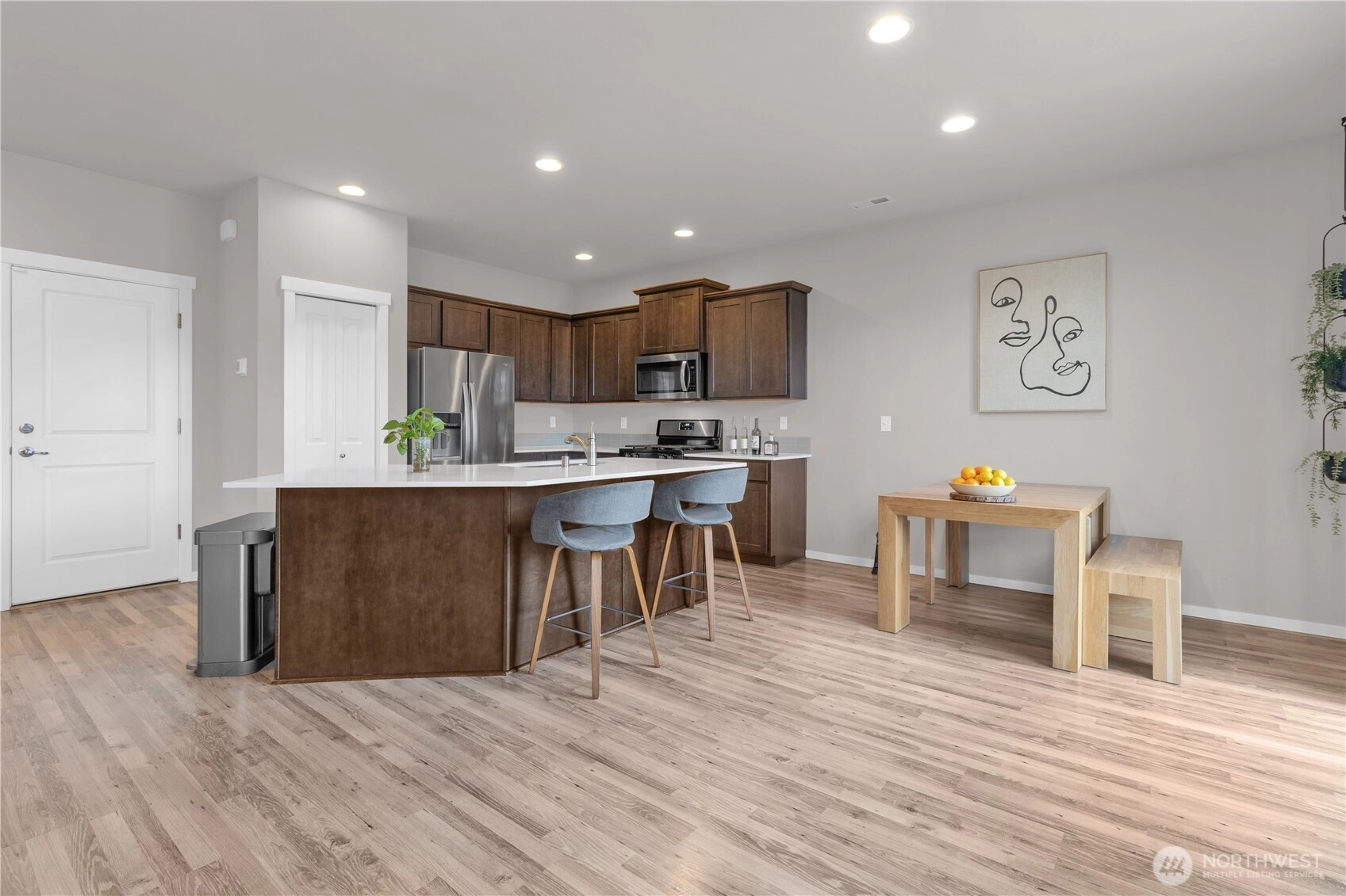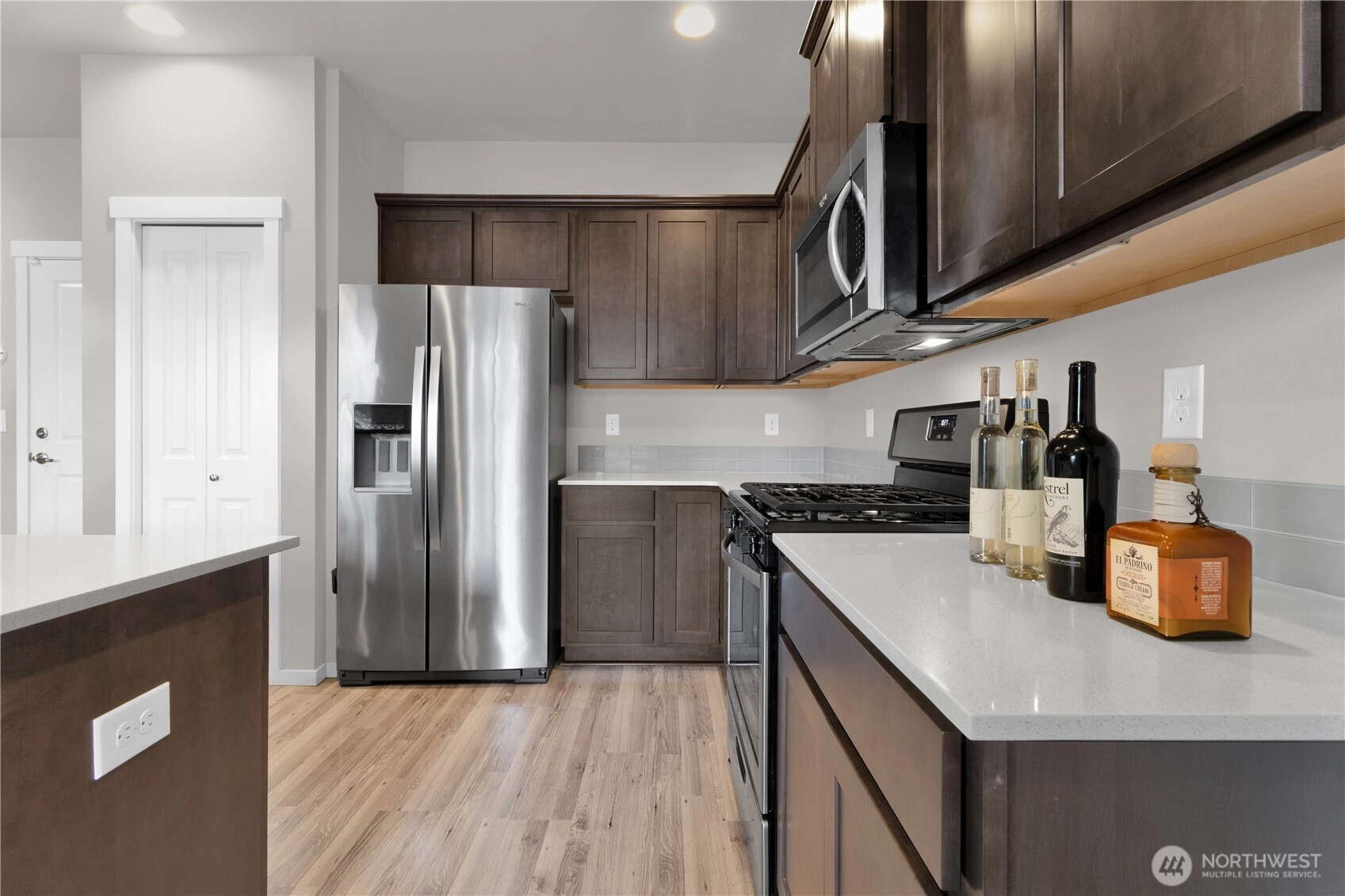 Gorgeous ONE-OWNER DR. Horton Hampton Model on coveted corner lot in the amazing Gateway development in Hawk's Prairie! Only a job relocation makes this beautiful home available. Close to I-5 and all the shopping & restaurants, 15 min to JBLM! Close to the community park & athletic court, this home has all the amenities you are looking for. From the Heat Pump to keep you comfortable year-round, to the gas fireplace with floating shelves to keep you cozy on cooler nights, to the brand new irrigation/sprinkler system, finished garage with epoxy floors & gas tankless water heater to the included Costco Pergola out back, wow! Open concept great room leads to your dream kitchen with matching SS appliances, gas stove/cooktop, quartz countertops, large island and soft-close doors and drawers. Upstairs you will find a loft/office space, your utility room with included washer & dryer, and all bedroom including your spacious Primary Suite with 5pc ensuite bath. Solar panels, installed in 2023 and just professionally cleaned yield $40/mo. summer PSE bills! Bluetooth controlled smart lighting, night LED lights, extended driveway, fenced stained & refreshed backyard with HUGE Patio in '24 - this home has been lovingly cared for and is ready for you! Ask your broker to see it today.