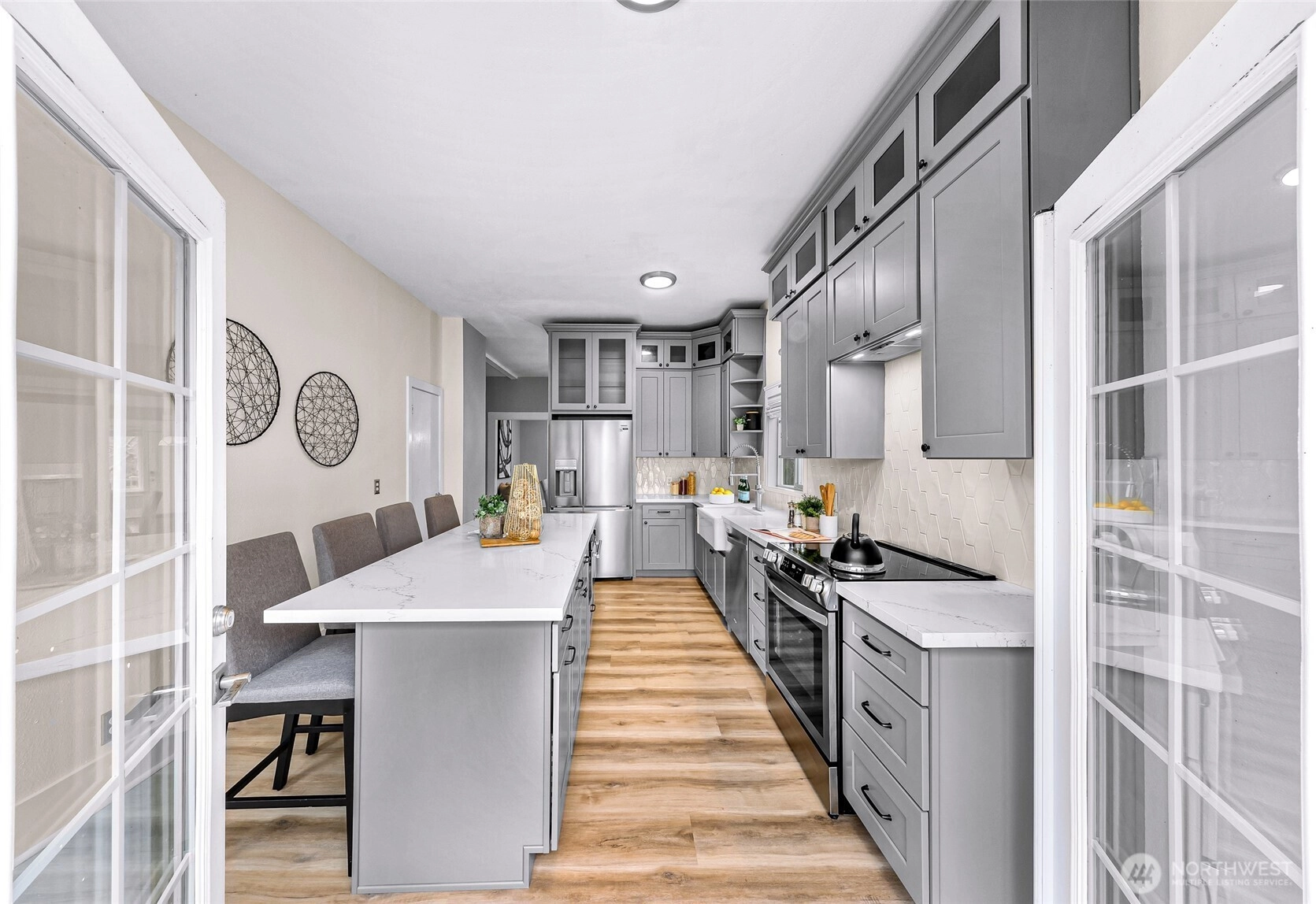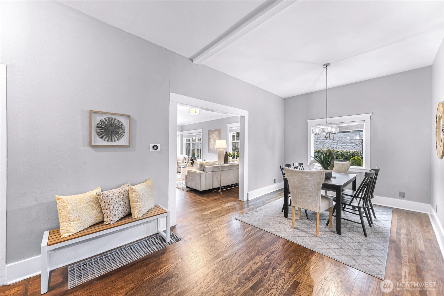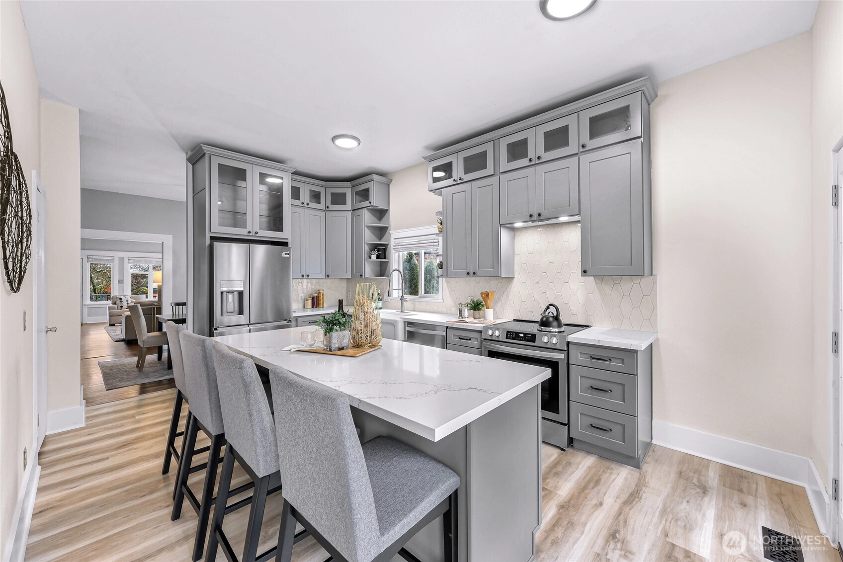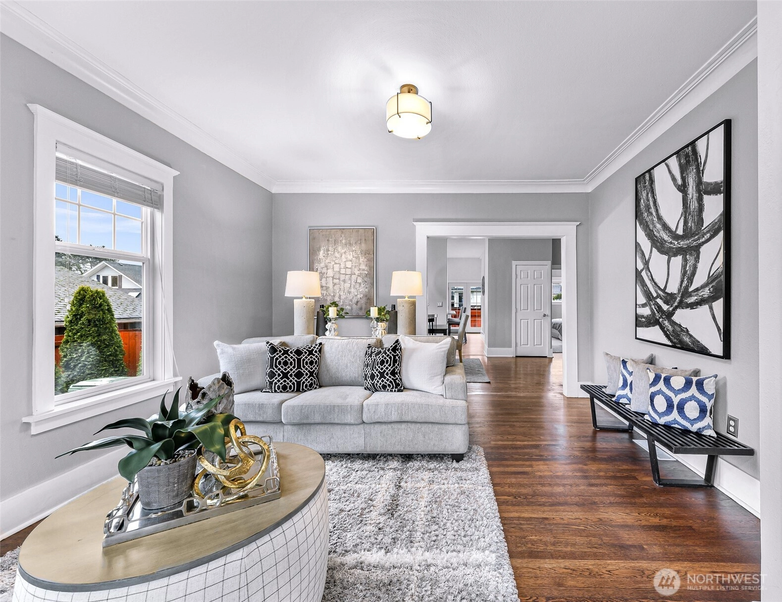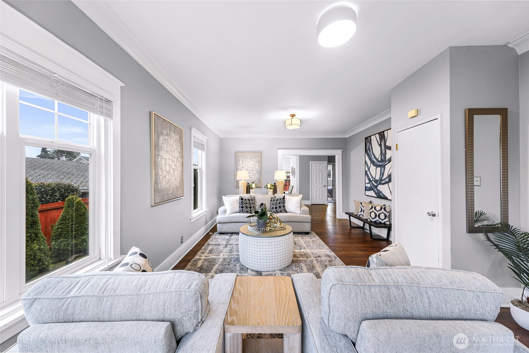 Come live in the home of your dreams! This 4 bed/2 bath stately Craftsman has all the original charm but with all the modern updates! The main floor features 10' ceilings, crown molding, hardwood floors and a beautiful remodeled kitchen. Upstairs offers a 900+ sq. ft primary bedroom with new windows, walk-in closet & updated bath with double-sink vanity. Also upstairs is a large open bonus room that could be used for multiple purposes. Recent upgrades include a newer roof with 50 year warranty, new siding, electric heat pump with central A/C, updated kitchen with designer cabinets, quartz counters, stainless appliances & LVP flooring. Enjoy abundant natural light from energy-efficient windows, ample storage with unfinished basement and backyard shed, plus expanded composite material deck. Fully fenced yard, quiet street, blocks from Lake Washington, parks, marina, cafes & grocery store. Large driveway w/ tandem parking & ample off-street space.