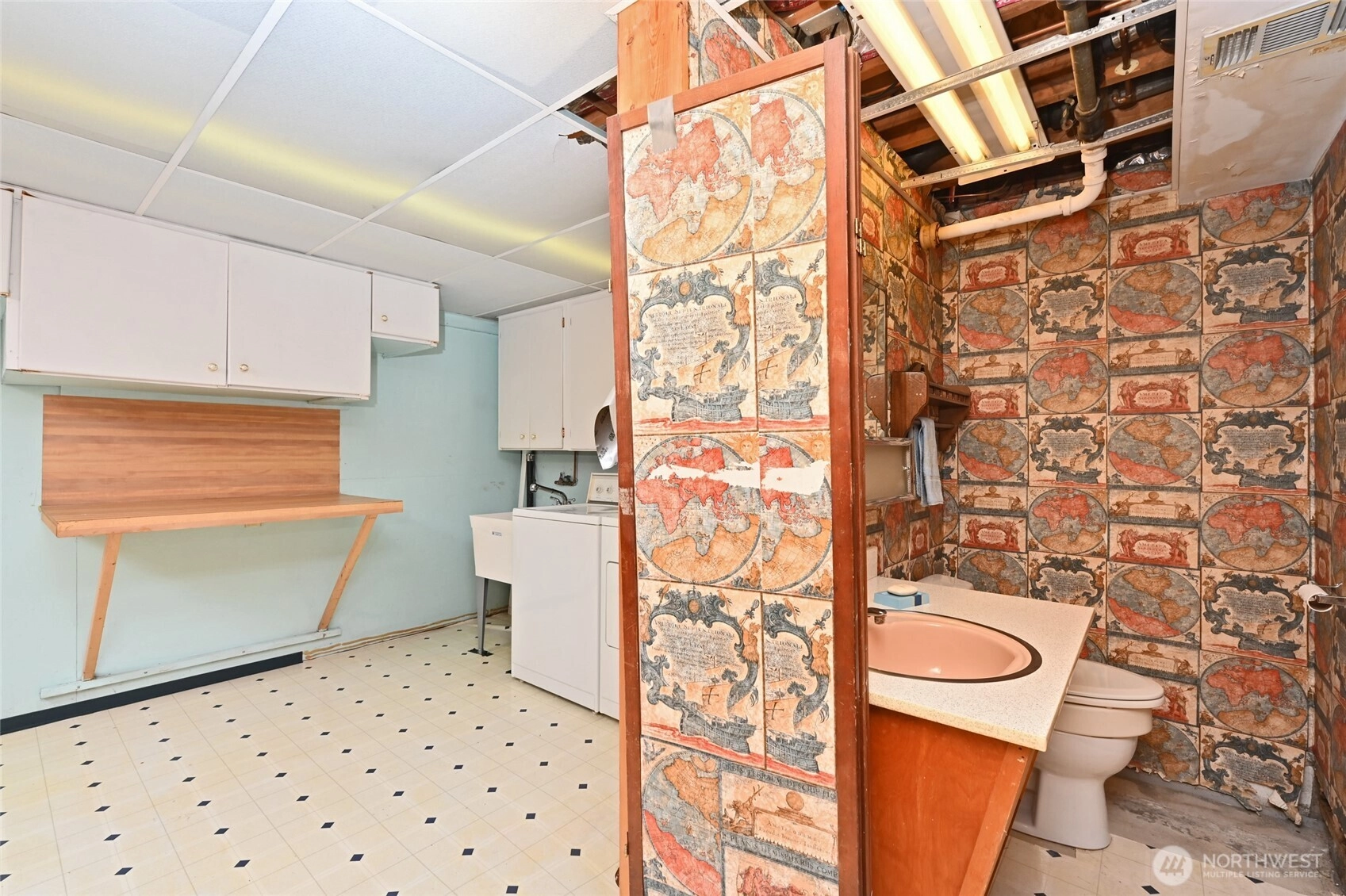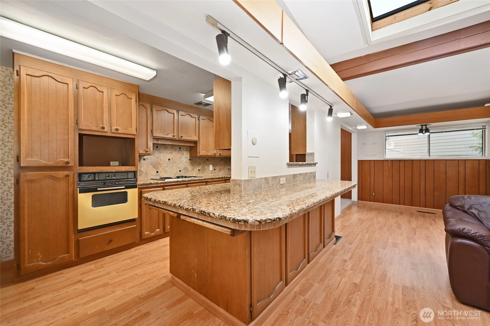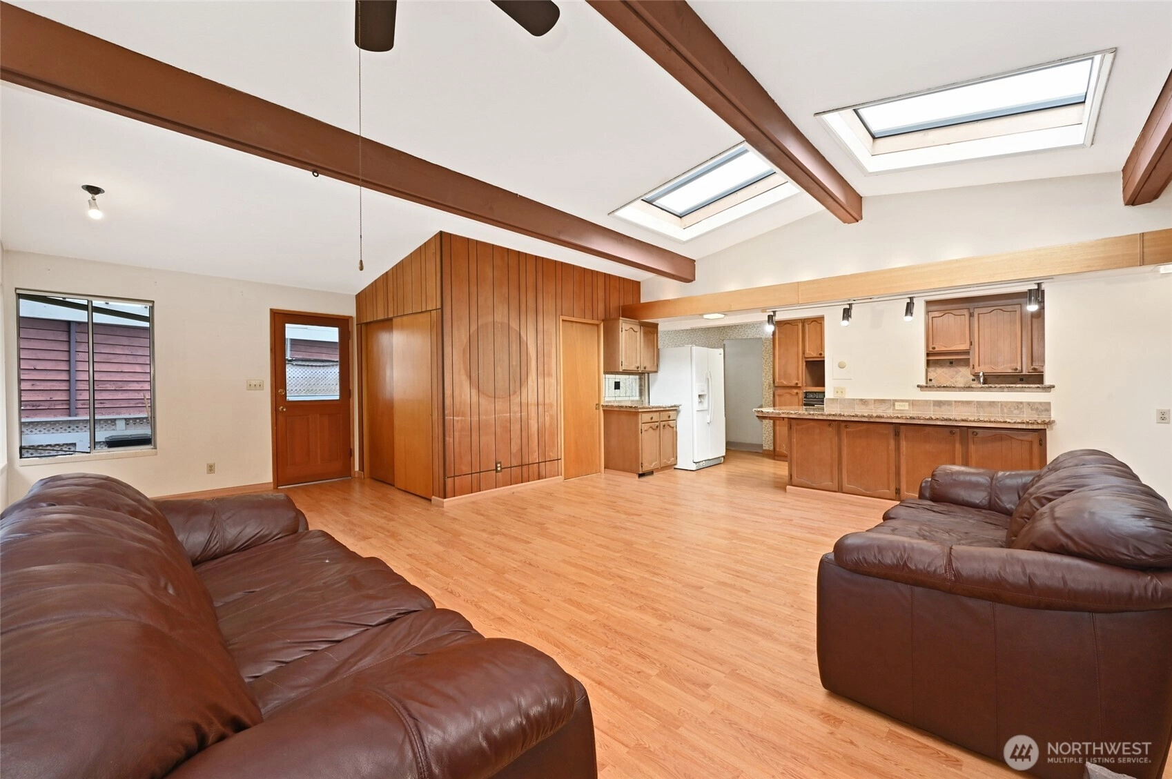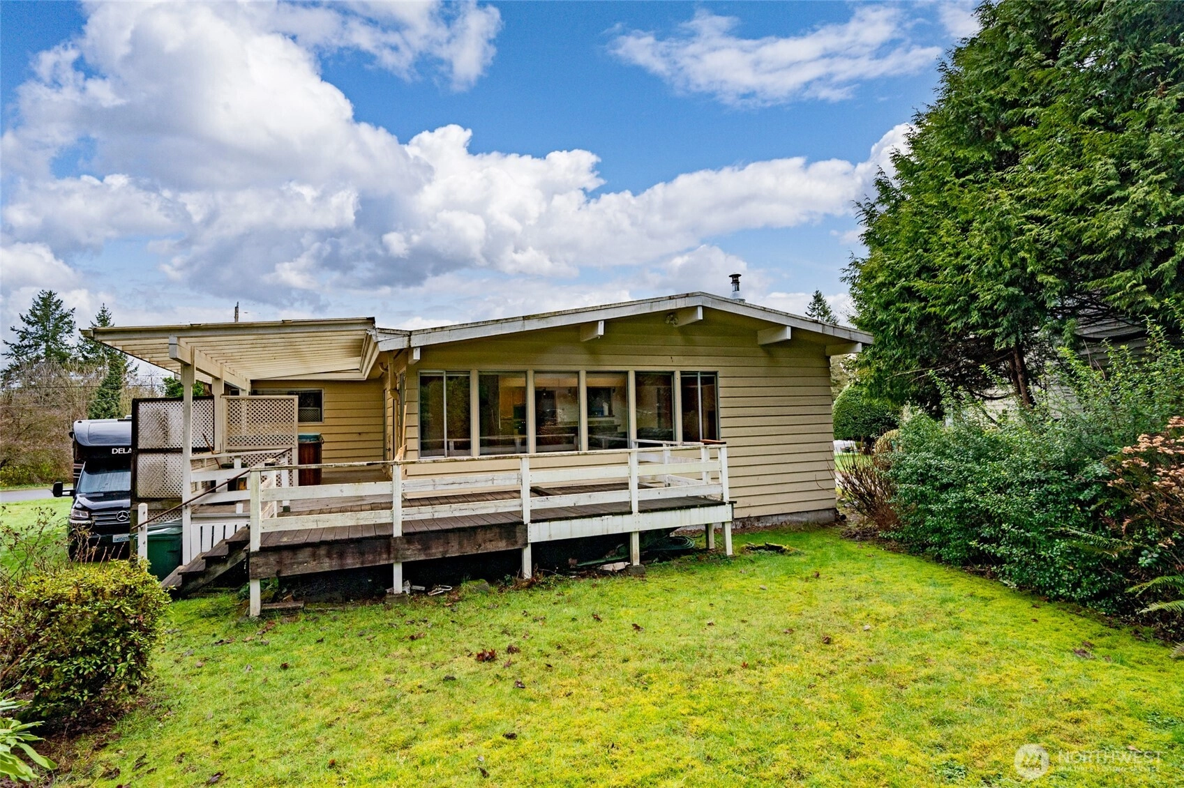 Investor opportunity! Charming mid-century estate home in Olympic Hills neighborhood offering space, character, and endless potential for your personal updates and vision. This 3-bedroom, 2.25-bath features 2,980 total sq ft (2,410 finished) with light-filled living areas and classic architectural details throughout. Bright living spaces feature large windows, warm wood accents, hardwood floors under the upper-level carpet, and a cozy wood-burning fireplace. A functional kitchen that flows into a huge family room with skylights, creating a light-filled space for everyday living and entertaining. Downstairs you’ll find the large rec room - ideal for a media room, hobbies, or multi-generational living, along with ample storage and unfinished space for future expansion. Recent improvements include newer sewer line (2008), copper plumbing, electric heat pump, and waterproofed basement. Enjoy year-round outdoor living on the covered deck and a spacious yard perfect for entertaining or gardening. Extra-long driveway with RV parking. Convenient location with easy access to I-5, parks, and neighborhood amenities. Sold as-is with incredible upside potential.
