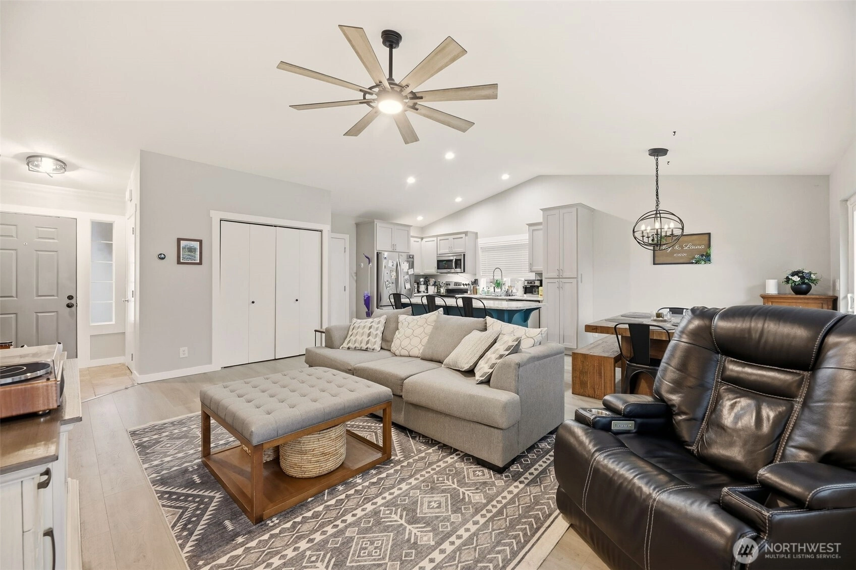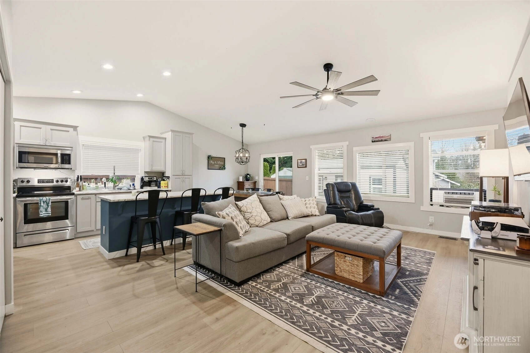 Beautifully updated 3-bed, 2-bath rambler in desirable South Lake Stevens. This light-filled home features vaulted ceilings, a refreshed kitchen with island and stainless steel appliances, newer flooring, updated bath vanity, double-pane windows, and newer roof, furnace, and water heater. Enjoy territorial and peek-a-boo mountain views from the spacious entertainer’s deck surrounded by mature landscaping. The finished backyard studio offers flexible space for a home office, creative retreat, or bonus hangout. Corner lot with fruit trees and an attached garage. Conveniently located near Costco, Hwy 9, shopping, dining, and medical services. Move-in ready and perfectly positioned for everyday comfort and ease.