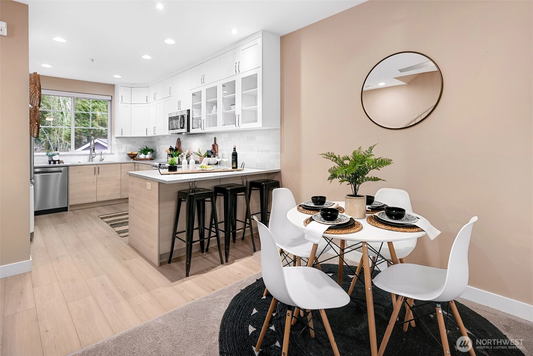 Perfectly positioned between Bothell and Woodinville, this thoughtfully updated townhome offers effortless access to I-405 and SR-522, making daily commuting a breeze. Enjoy the best of the area, from Bothell’s local favorites to Woodinville’s renowned wineries, with shopping and everyday conveniences minutes away in Totem Lake. Nearby Lake Washington beaches and parks provide endless opportunities for outdoor enjoyment. Inside, the home welcomes you with an updated kitchen featuring soft-close cabinetry, quartz countertops, stainless steel appliances, and a custom pantry system designed for easy organization. The open living and dining area is ideal for hosting and entertaining, while a main-floor powder bath adds everyday convenience. Upstairs, the spacious primary suite impresses with vaulted ceilings, a relaxing ensuite, and a custom closet system. A second bedroom offers flexibility for guests or a home office, complete with its own private ensuite and walk-in closet. This townhome also boasts dedicated parking, a two-car tandem garage, ample guest parking, and access to a well-maintained community clubhouse, pool, gym, and playground.